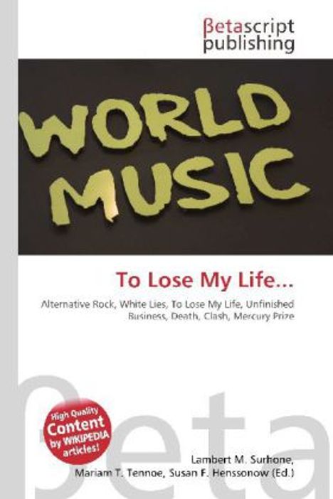 Please note that the content of this book primarily consists of articles available from Wikipedia or other free sources online. To Lose My Life... (also known by extended title of To Lose My Life Or Lose My Love, or shortened as To Lose My Life) is the debut album by the British alternative rock band White Lies. It was released on 19 January 2009. It follows the release of the title track, "To Lose My Life", one week earlier. It includes former singles "Unfinished Business" and "Death". Clash commented that "2009 is theirs for the taking, if they''re up to the task", adding that it could be a contender for the annual Mercury Prize. "From the Stars" appeared as iTunes''s "Single of the Week" on 30 December 2008. The album was released in the United States on 17 March 2009.