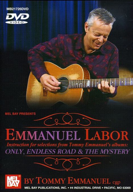 Emmanuel Labor provides a personal, one-on-one setting in which not only music aficionados can enjoy performances of some of Tommys best-loved tunes, but also offers guitar players instruction by one of the worlds best. Tommy Emmanuel, fingerstyle master and performer, shares his personal insight and technique to sixteen tunes. Pieces shown include cuts from his albums Only, Endless Road and The Mystery. As a bonus feature on the DVD a few sections are slowed down, with no compromise in pitch or video, to better see the exact execution that Tommy uses. DVD length: 166 minutes.
