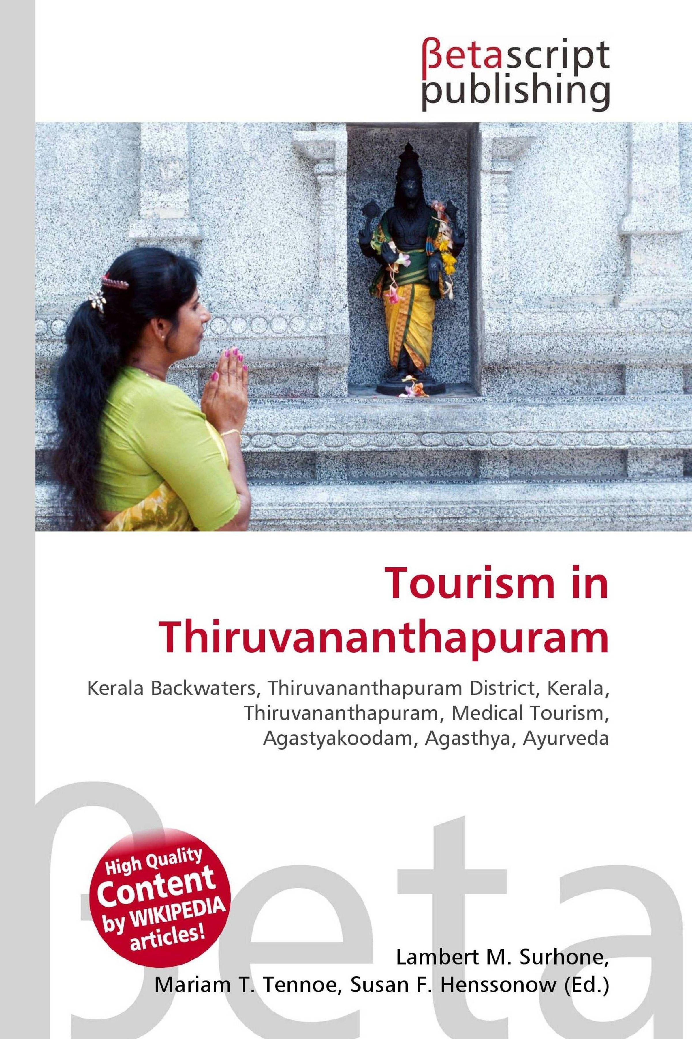 Please note that the content of this book primarily consists of articles available from Wikipedia or other free sources online. Thiruvananthapuram (Trivandrum) district (Kerala, India), holds a number of tourist spots. The entire tourism package of the state such as hill stations, back waters, beaches, lagoons, and wild life sanctuaries are present in Thiruvananthapuram district, reflects the beauty of the state Kerala. Foreign tourists flock to Thiruvananthapuram, a destination for chartered flights to India for Medical tourism, as there are more than hundred recognised Ayurveda centres in and around the city. This is primarily due to Ayurveda's popularity in foreign countries. Medical tourism is further promoted by modern medicine hospitals in the city. Recuperation facilities are available at five star beach resorts and hill stations nearby.