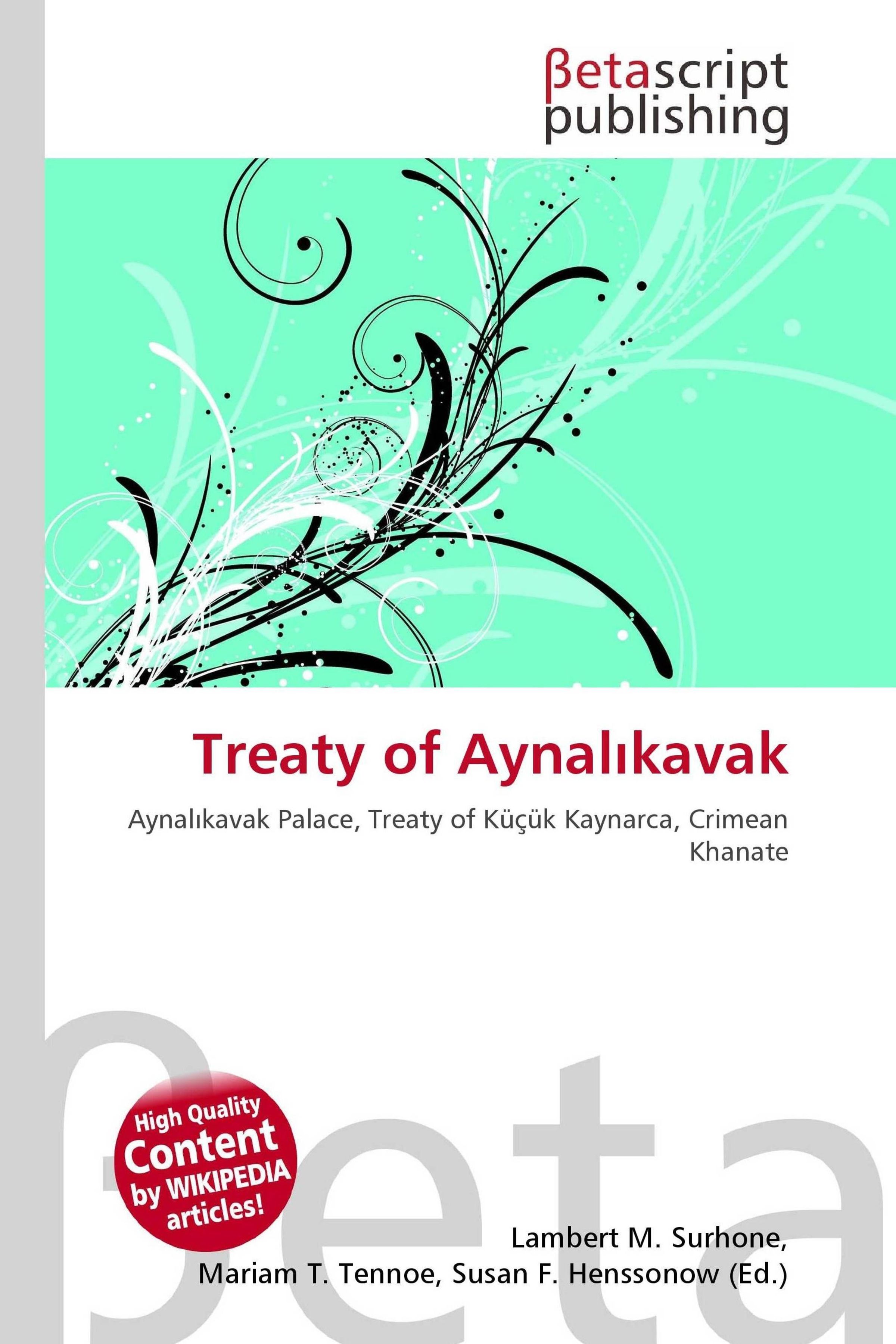 Please note that the content of this book primarily consists of articles available from Wikipedia or other free sources online. Treaty of Aynalkavak was a treaty between Ottoman Turkey and Russian Empire signed on March 10, 1779. The formal name is Aynalkavak bond of arbitration ( Turkish: Aynalkavak tahkimnamesi). Aynalkavak is a palace in stanbul where the treaty was signed. By the treaty of Küçükkaynarca in 1774 Ottoman Empire had lost Crimean Khanate which was an Ottoman dependency since 1478. But Crimean khan Devlet Giray (Devlet IV) appealed Ottoman porte for a renewed dependency, which was clearly impossible under the terms of Küçükkaynarca. Russians heard about his plans and forced him to abdicate. The next khan ahin Giray was a Russian puppet. Ottomans on the other hand, decleared that Russian intervention in Crimea was against the terms of the treaty and prepared for a war.