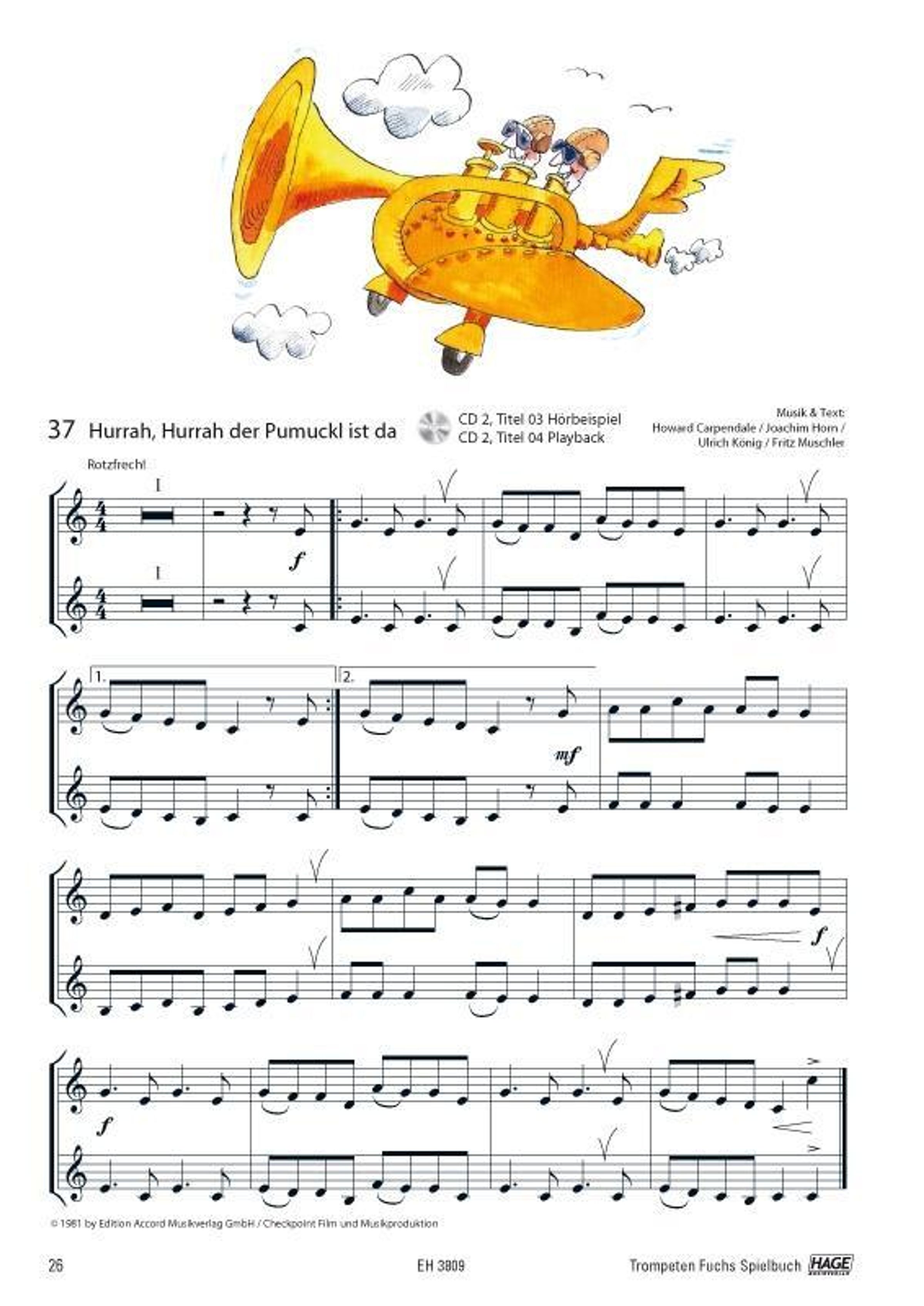 • Das geniale und spaßige Spielbuch mit 75 beliebten Spielstücken. Zum Umgang mit den CDs: Die Stücke liegen entweder in Duett- bzw. Trio-Form oder als Playback mit Bandbegleitung vor. Die Band-Playbacks liegen jeweils in zwei Versionen vor: Einmal mit Trompete (gespielt von Stefan Dünser) und einmal ohne. So kannst Du Dir das Stück zuerst anhören und danach die Solo-Trompete selbst übernehmen.