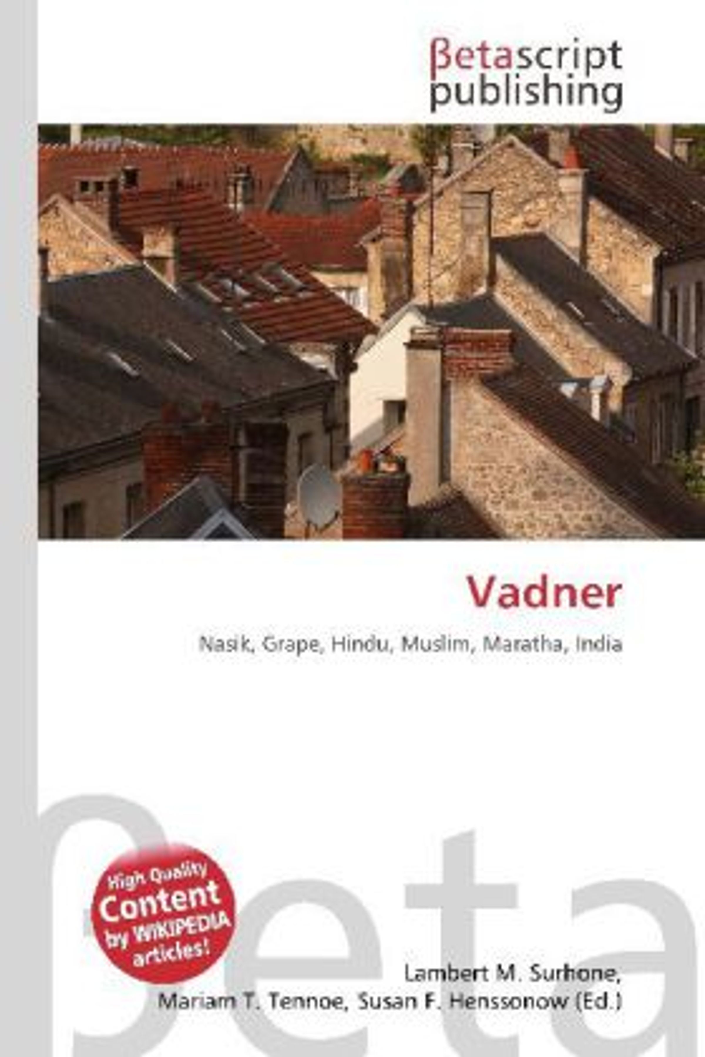 Please note that the content of this book primarily consists of articles available from Wikipedia or other free sources online. Vadner is a town of about 30, 000 people in Nasik district. It is situated in Maharashtra state of Indian Republic. Vadner is famous for its grapes. The town is predominantly an agrarian one - with ~80% of its population engaged in agriculture and related activities. The remaining 20% are in supporting activities like services, transport, retail and so on. Vadner is a fairly rich town. Much of these riches are attributable to the grape farming. This has led to a general flourishing of other related trades as well notably transport.