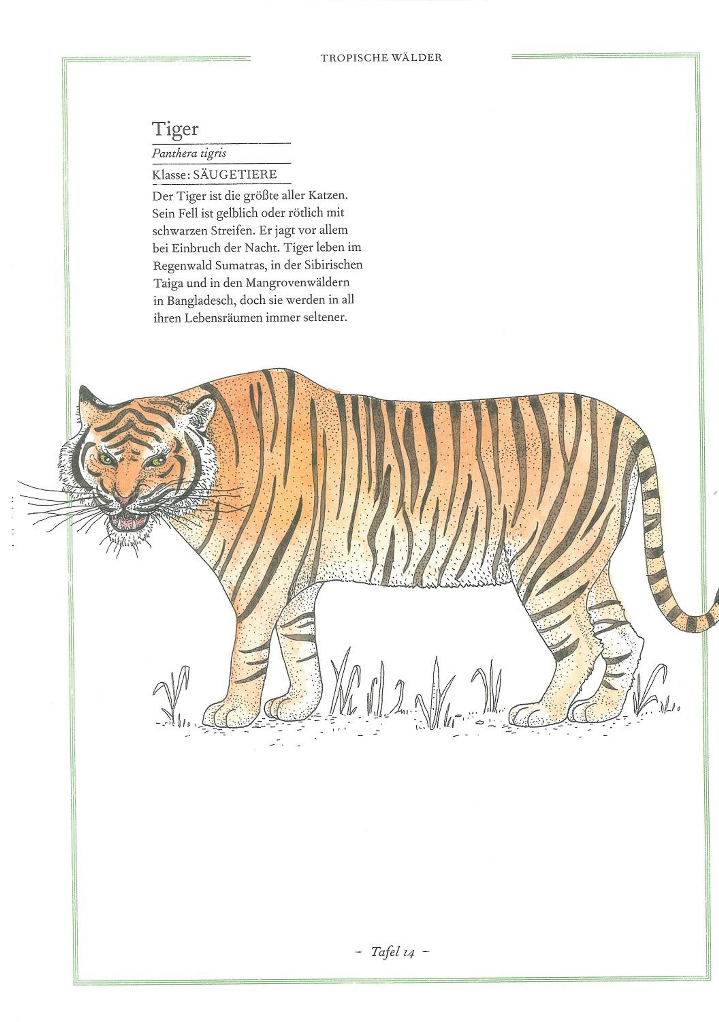 Dieses Buch ist ein klassisches Tierbestimmungsbuch im besten Sinn: Geordnet nach ihren Lebensräumen begegnen uns darin 100 tolle Tiere, die Kinder besonders begeistern - von Eisbär und Pinguin aus den Polarregionen dieser Erde über farbenprächtige Vertreter wie Tukan und Tiger aus den tropischen Wäldern bis zu heimischen Tieren wie Katze, Igel und Murmeltier. Die kurzen Texte vermitteln erstes zoologisches Grundwissen und nehmen Kinder und ihr Interesse an den Tieren ernst. All die 100 tollen Tiere treten uns auf den Seiten entgegen, als seien sie lebendig. Das ist der Künstlerin Emmanuelle Tchoukriel zu verdanken. Ihre mit Aquarellfarben und schwarzer Tusche gestalteten Illustrationen haben den Charme historischer Farbtafeln in unsere Zeit übersetzt. Sie machen Käfer, Katze, Krokodil zu einem echten Liebhaberbuch - für Kinder und deren Eltern.