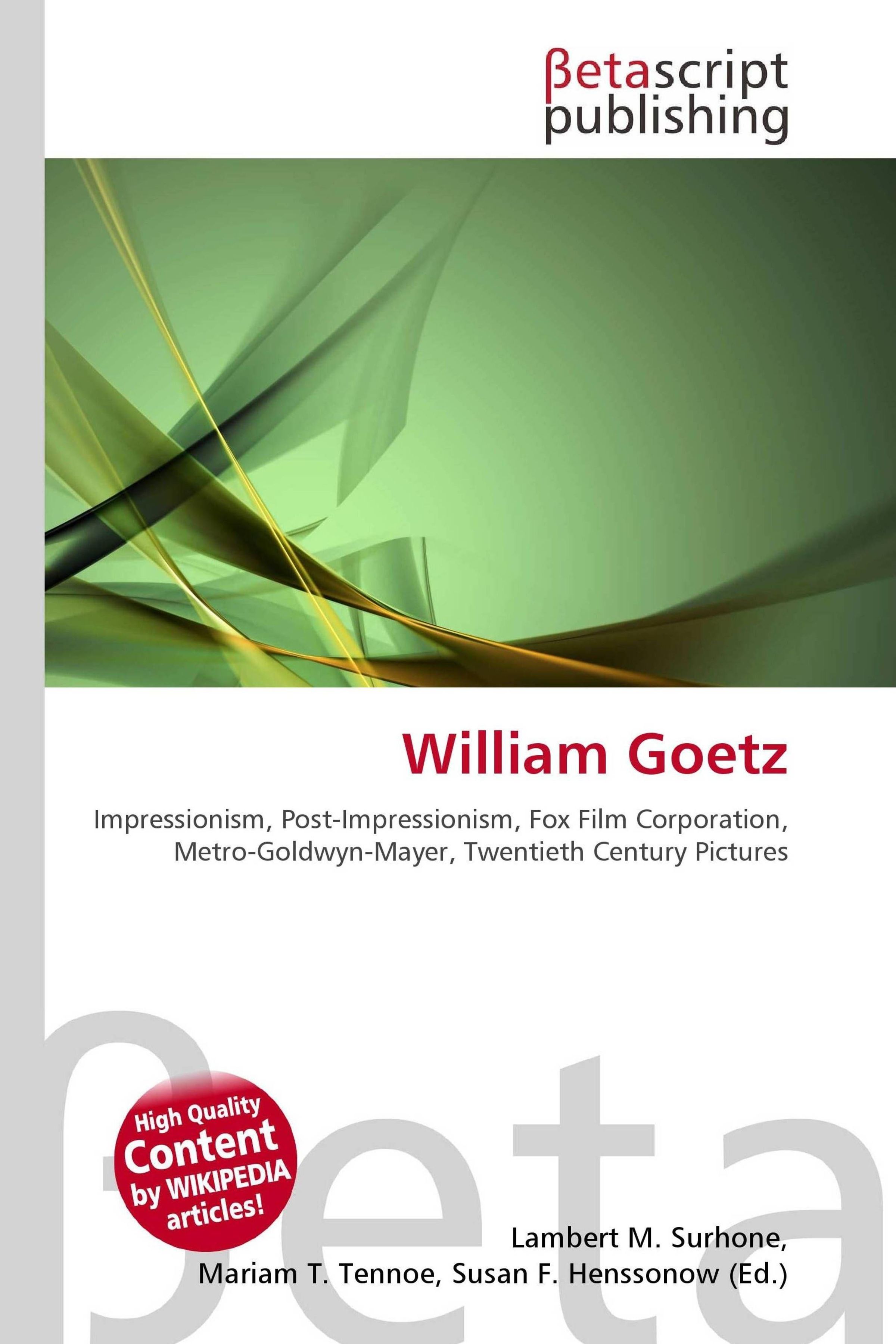 High Quality Content by WIKIPEDIA articles! High Quality Content by WIKIPEDIA articles! William Goetz (March 24, 1903 - August 15, 1969) was an American Hollywood film producer and studio executive. Born to a Jewish working class family in Philadelphia, Pennsylvania, Goetz was the youngest of eight children. His mother died when he was ten years old and shortly thereafter his father abandoned the family. Raised by older brothers, at the age of twenty-one he followed some of his brothers to Hollywood where he found work as a crew hand at one of the large studios. After a few years, he began doing production work and in 1930 was made an associate producer at Fox Films. That same year he married Edith Mayer (1905-1987), daughter of Metro-Goldwyn-Mayer studio head Louis B. Mayer - who at first was less than enthusiastic at the idea. Nevertheless, the marriage worked and they remained together for life.