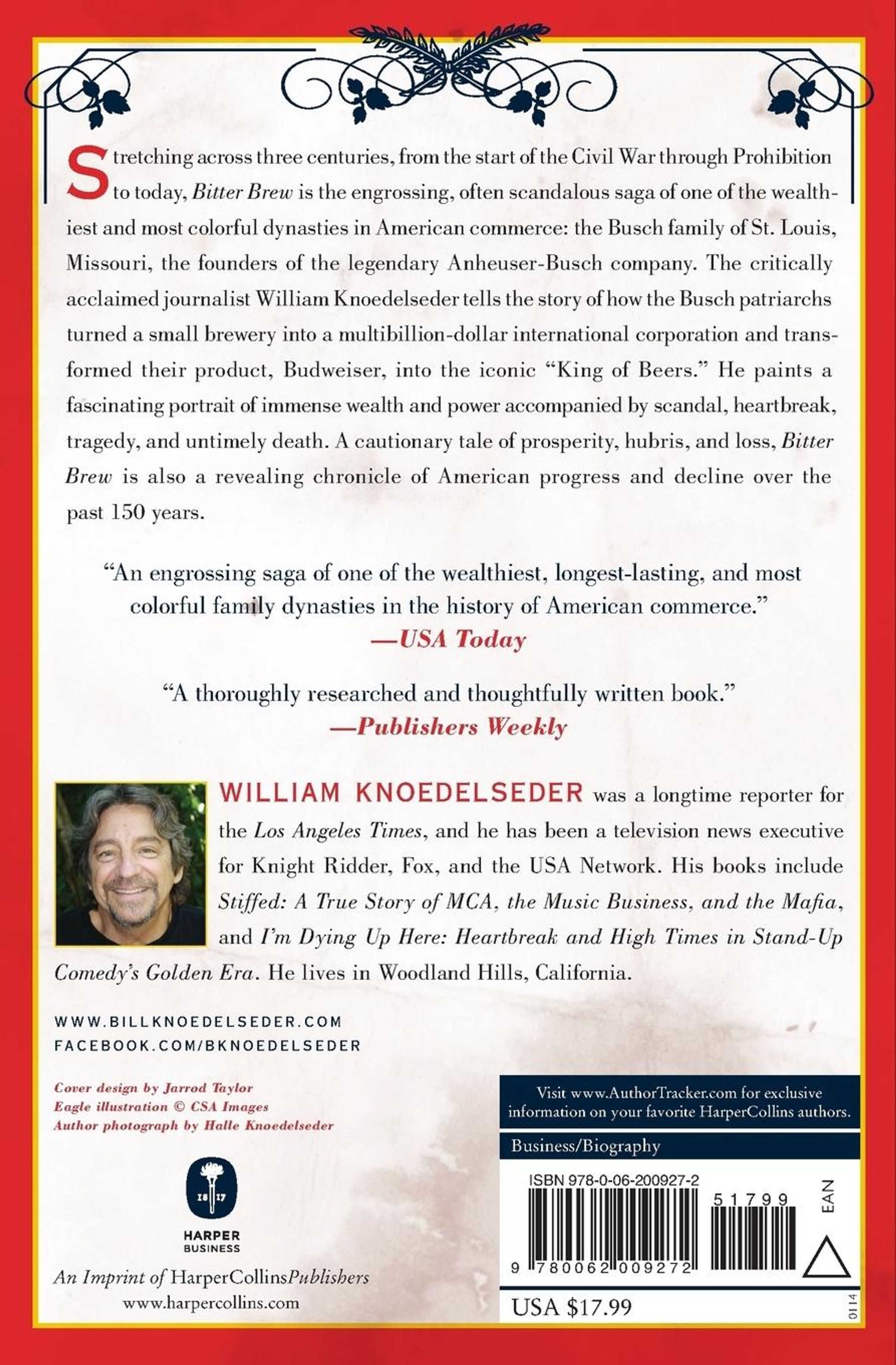 The creators of Budweiser and Michelob beers, the Anheuser-Busch company is one of the wealthiest, most colorful and enduring family dynasties in the history of American commerce. In Bitter Brew , critically acclaimed journalist William Knoedelseder tells the riveting, often scandalous saga of the rise and fall of the dysfunctional Busch family---an epic tale of prosperity, profligacy, hubris, and the dark consequences of success that spans three centuries, from the open salvos of the Civil War to the present day.
