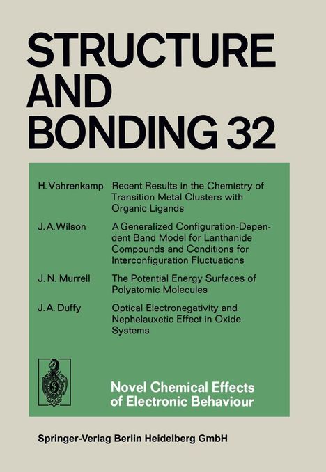 Recent results in the chemistry of transition metal clusters with organic ligands.- A generalized configuration-dependent band model for lanthanide compounds and conditions for interconfiguration fluctuations.- The potential energy surfaces of polyatomic molecules.- Optical electronegativity and nephelauxetic effect in oxide systems.