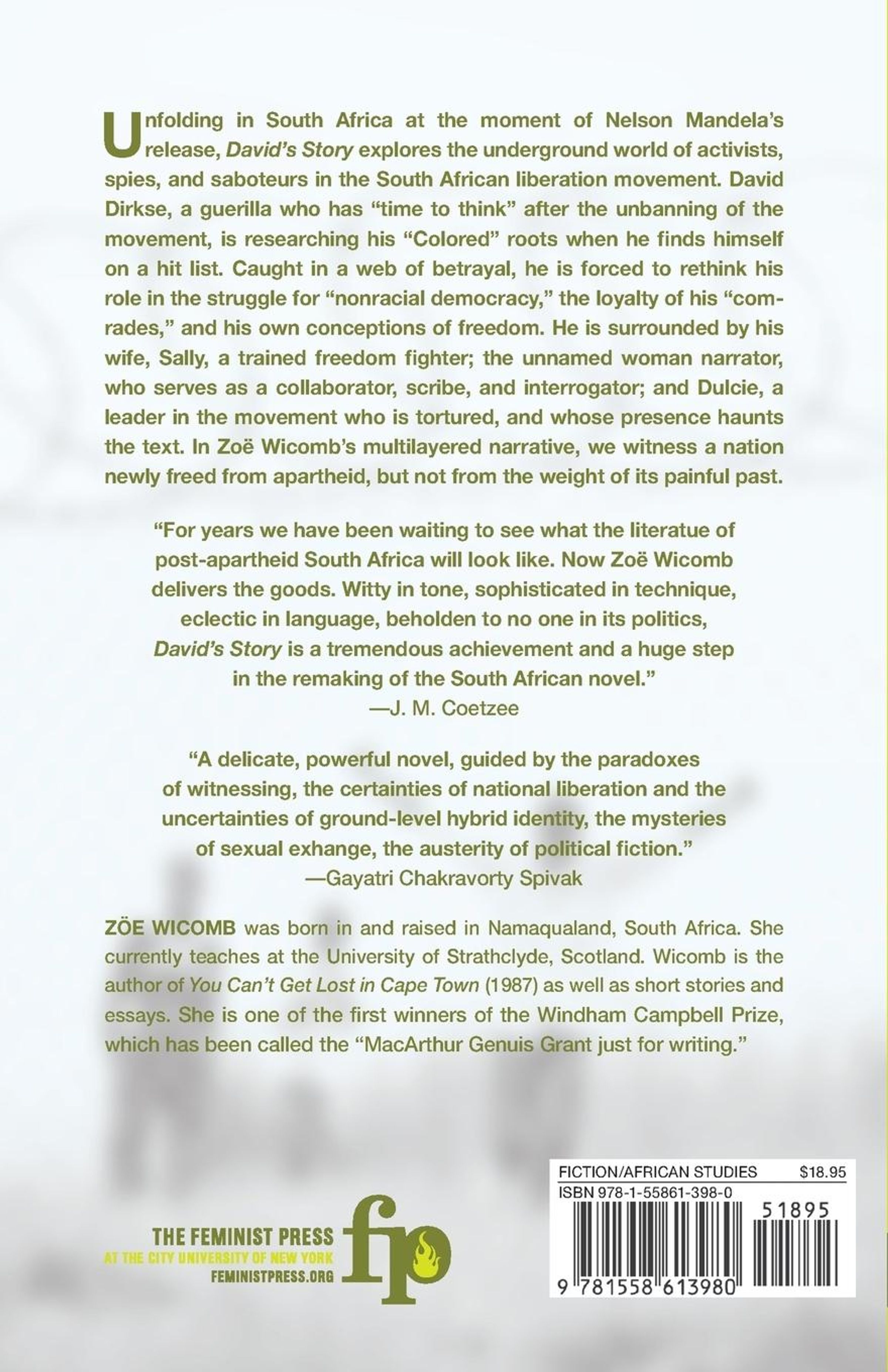 But as David studies his roots, he soon learns that he's on a hit list. Now caught in a web of surveillance and betrayal, he's forced to rethink his role in the struggle for "nonracial democracy," the loyalty of his "comrades," and his own conceptions of freedom.