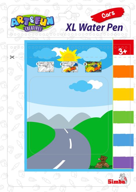 2x Fahrzeuge je 7cm, Wasserpinsel, 4 magische Seiten je 19x22cm, BLK, 3J+