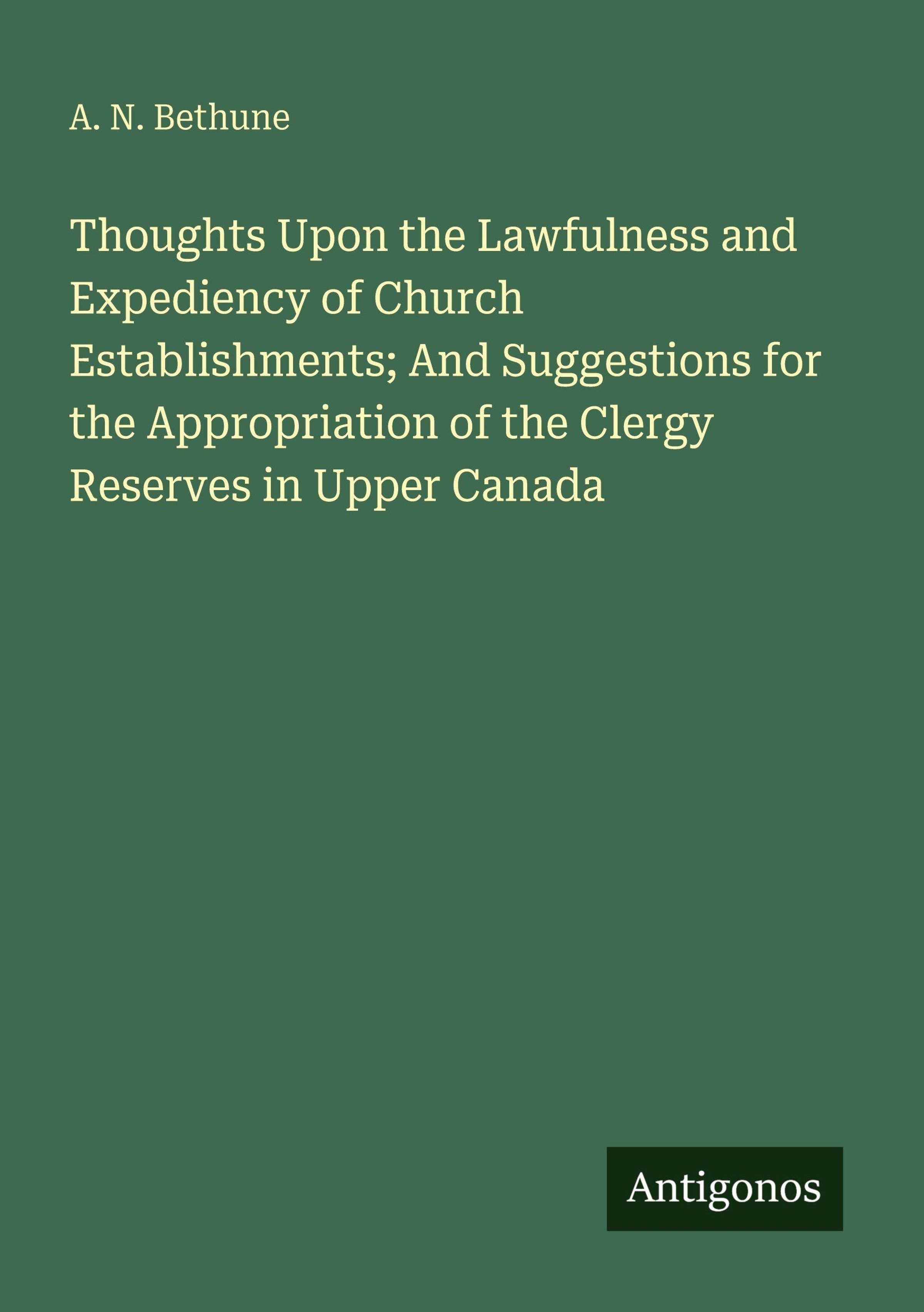 Thoughts Upon the Lawfulness and Expediency of Church Establishments; And Suggestions for the Appropriation of the Clergy Reserves in Upper Canada