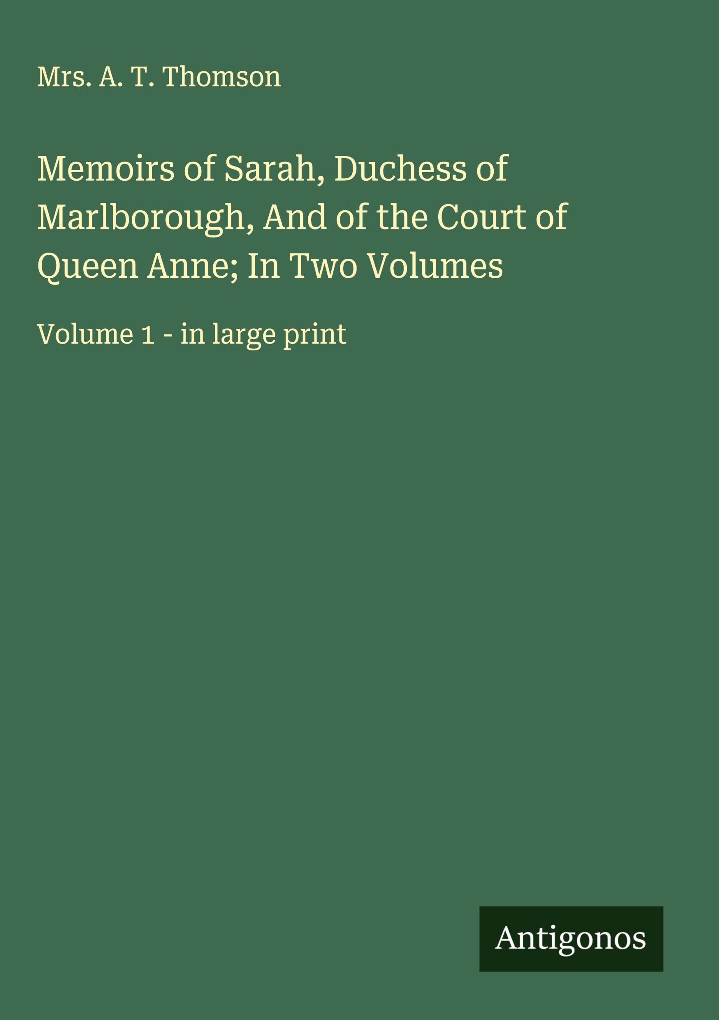 A. T. Thomson: Memoirs of Sarah, Duchess of Marlborough, And of the Court of Queen Anne; In Two Volumes, Gebunden