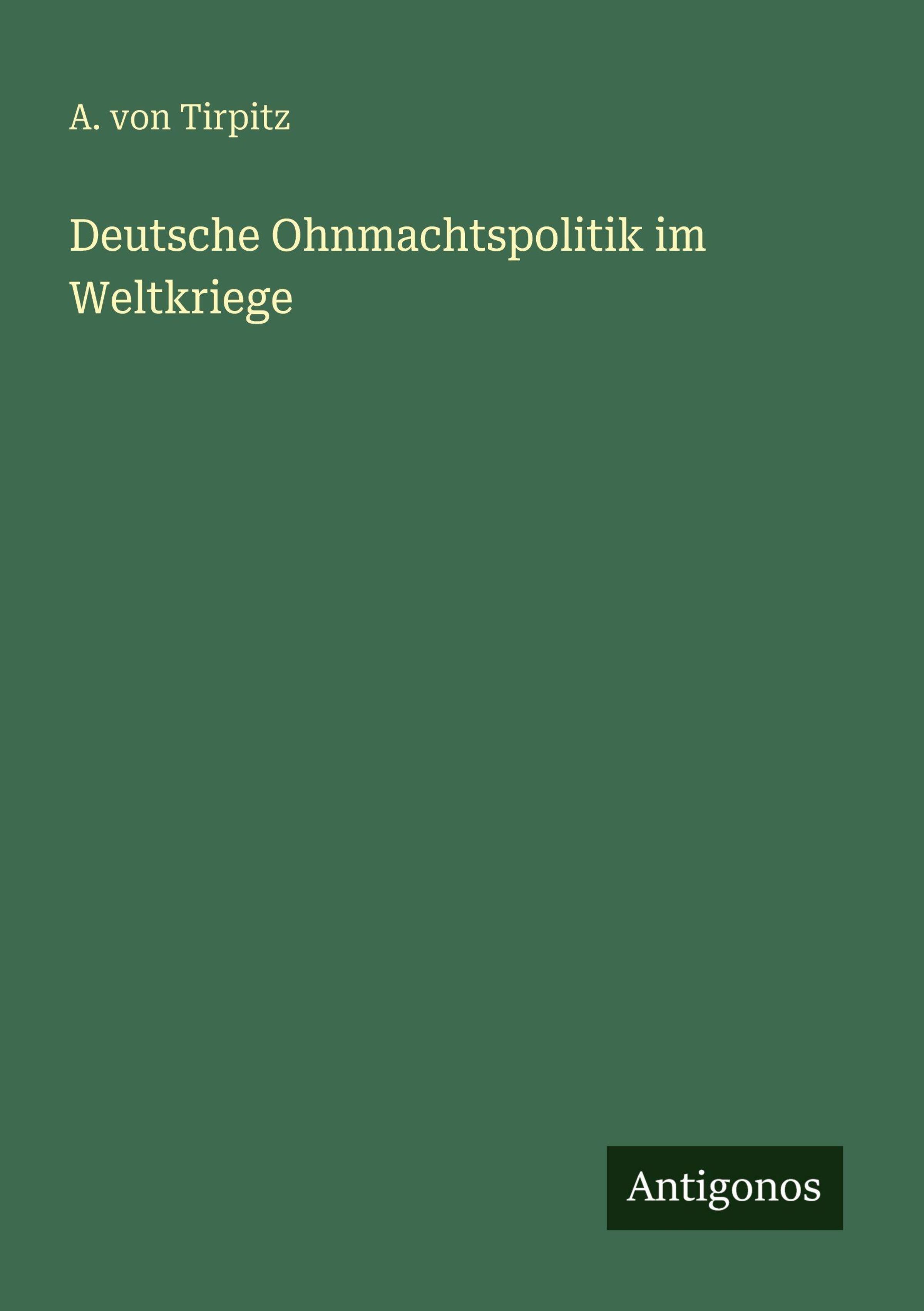 A. von Tirpitz: Deutsche Ohnmachtspolitik im Weltkriege, Kartoniert / Broschiert