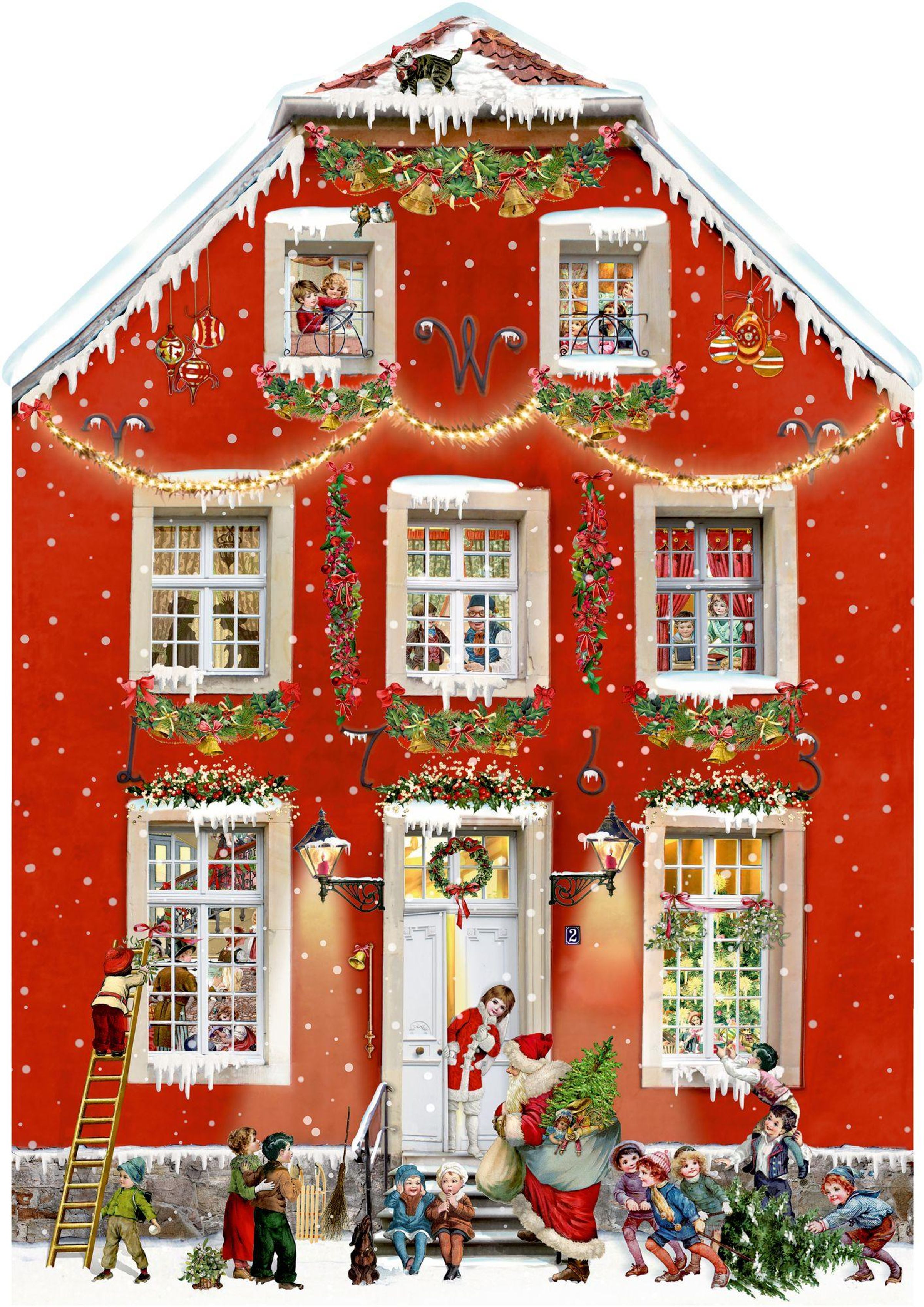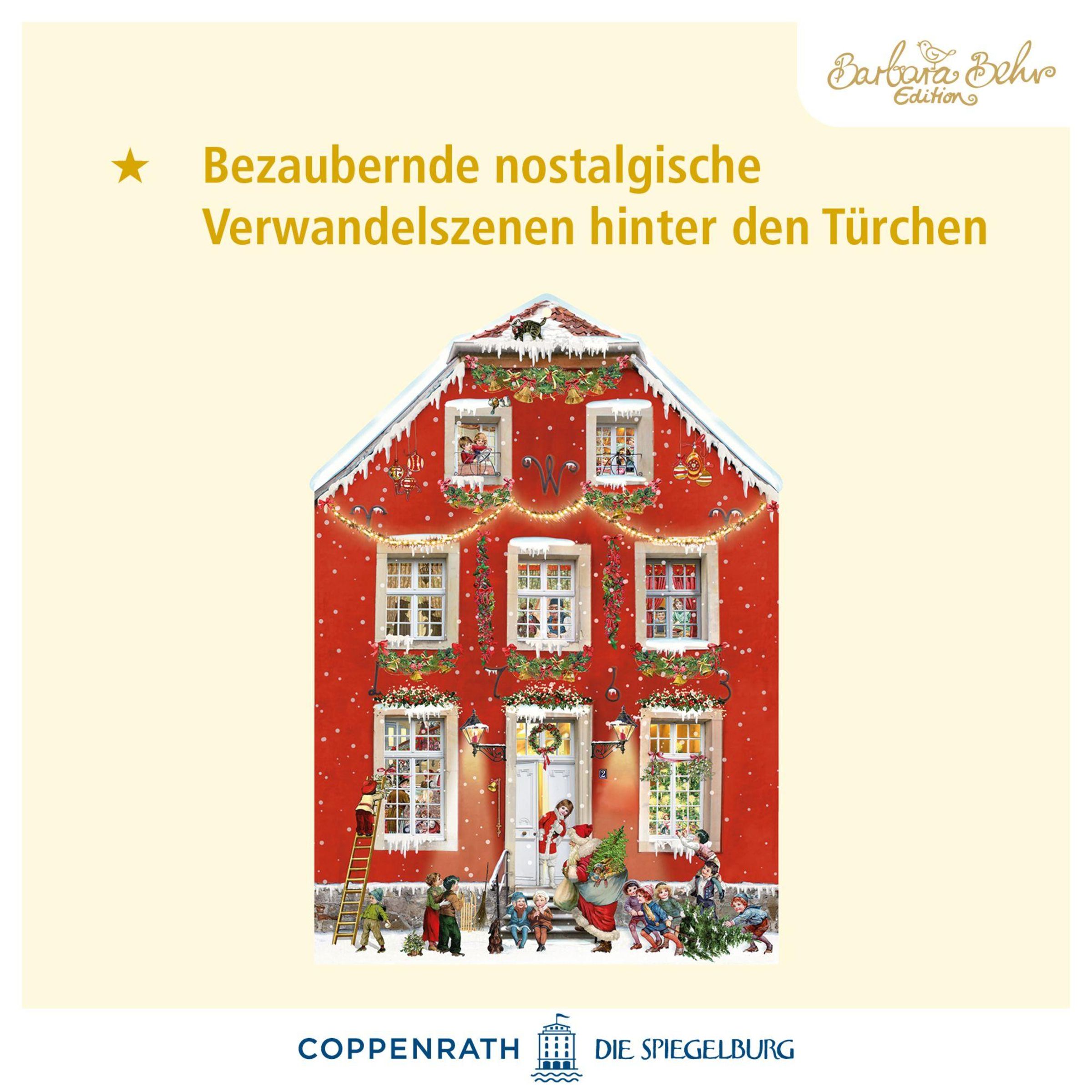 Nostalgischer Adventskalender mit Glitter · A3-Adventskalender mit detailreicher Haus-Illustration von Barbara Behr · 24 Türchen mit liebevollen Weihnachtsszenen zum täglichen Entdecken