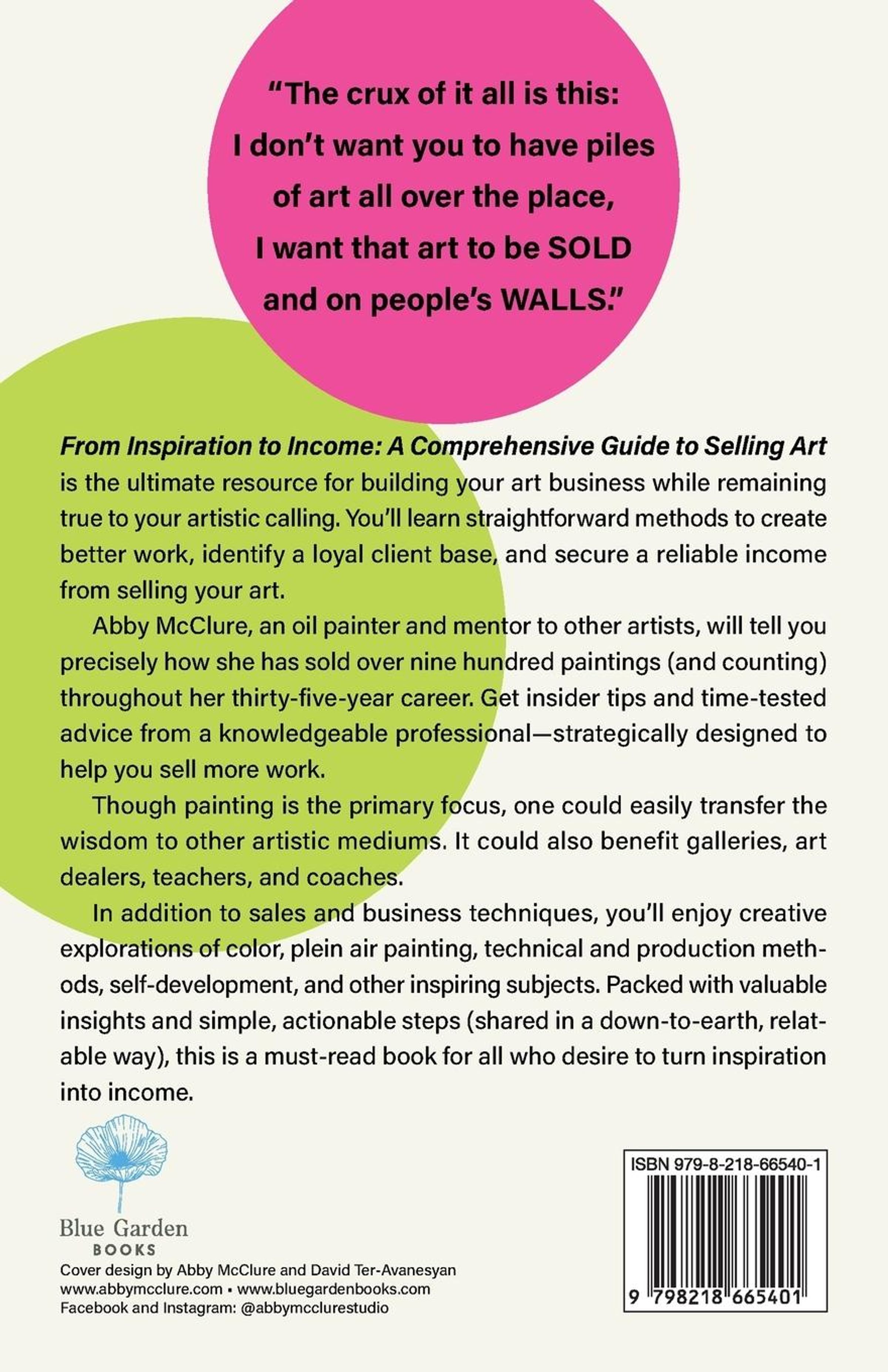 In addition to sales and business techniques, enjoy creative explorations of color, plein air painting, technical and production methods, self-development, and other inspiring subjects. Packed with valuable insights and simple, actionable steps (shared in a down-to-earth, relatable way), this is a must-read book for all who desire to turn inspiration into income.