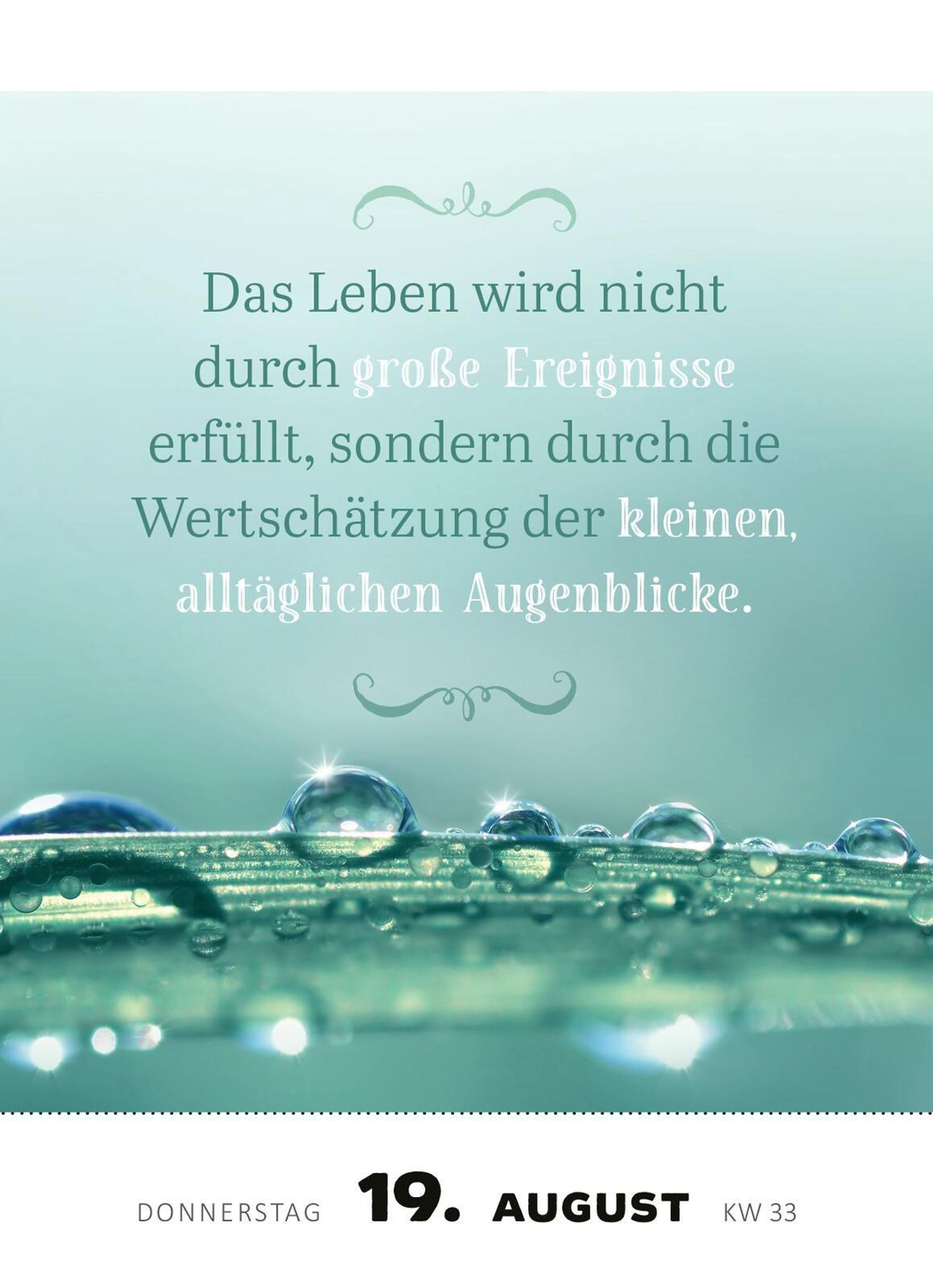 Du möchtest dein Leben in 2027 achtsamer gestalten, das Hier und Jetzt bewusster erleben und jeden Moment genießen? Dann ist dieser Achtsamkeitsreminder mit Seiten zum Abreißen genau das Richtige für dich! Der Tageskalender ist ein Glücklichmacher und eine Kraftquelle für die Seele. Jeden Tag aufs Neue schenkt er dir achtsame Momente, wertvolle Weisheiten und positive Affirmationen für deinen Alltag. Der schön gestaltete kleine Tischkalender mit Tageskalendarium lässt sich aufhängen oder aufstellen und ist damit ein Blickfang für deinen Schreibtisch im Büro oder Homeoffice, für den Nachttisch oder die Wand in deinem Wohnzimmer. Lebe jeden Moment ganz bewusst und finde so zu mehr innerer Ruhe, Gelassenheit und Dankbarkeit.