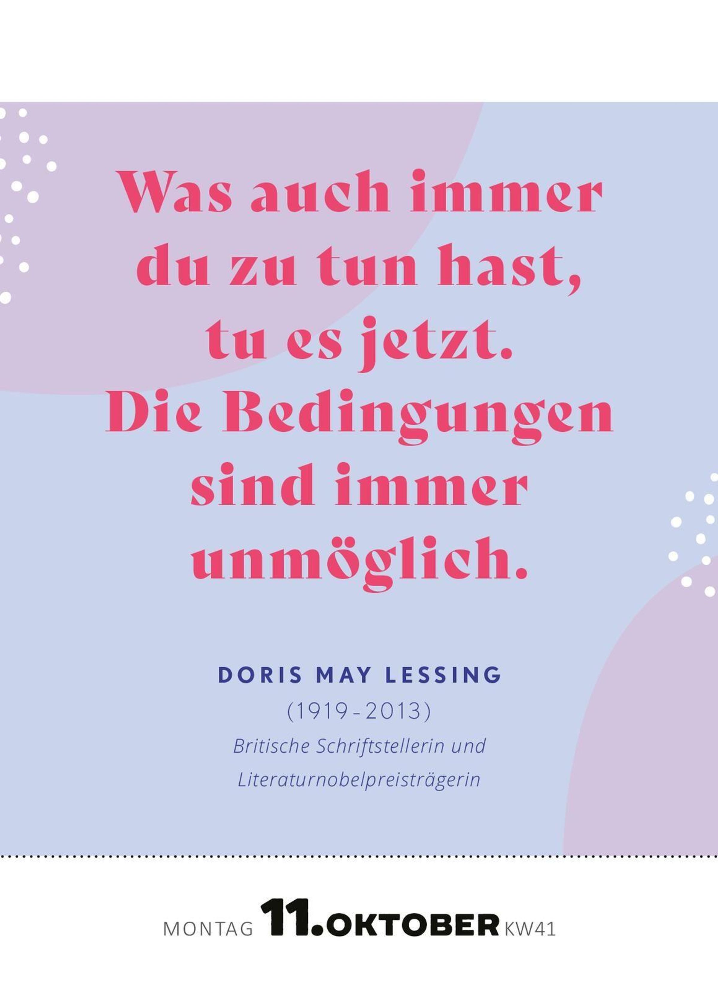 Ein tolles Geschenk für alle, die sich gern von klugen, starken, mutigen Frauen in ihrem Alltag inspirieren lassen: Der Kalender mit bunt bedruckten Seiten zum Abreißen ist eine Kraftquelle für alle Frauen und motiviert jeden Tag mit gesammelten Lebensweisheiten, Anekdoten und Kurzbiografien interessanter und berühmter Frauen aus der Weltgeschichte und dem Zeitgeschehen. Der ansprechend gestaltete kleine Tischkalender mit Tageskalendarium lässt sich aufhängen oder aufstellen und ist damit ein Blickfang für deinen Schreibtisch im Büro oder Homeoffice, für den Nachttisch oder die Wand in deinem Wohnzimmer.