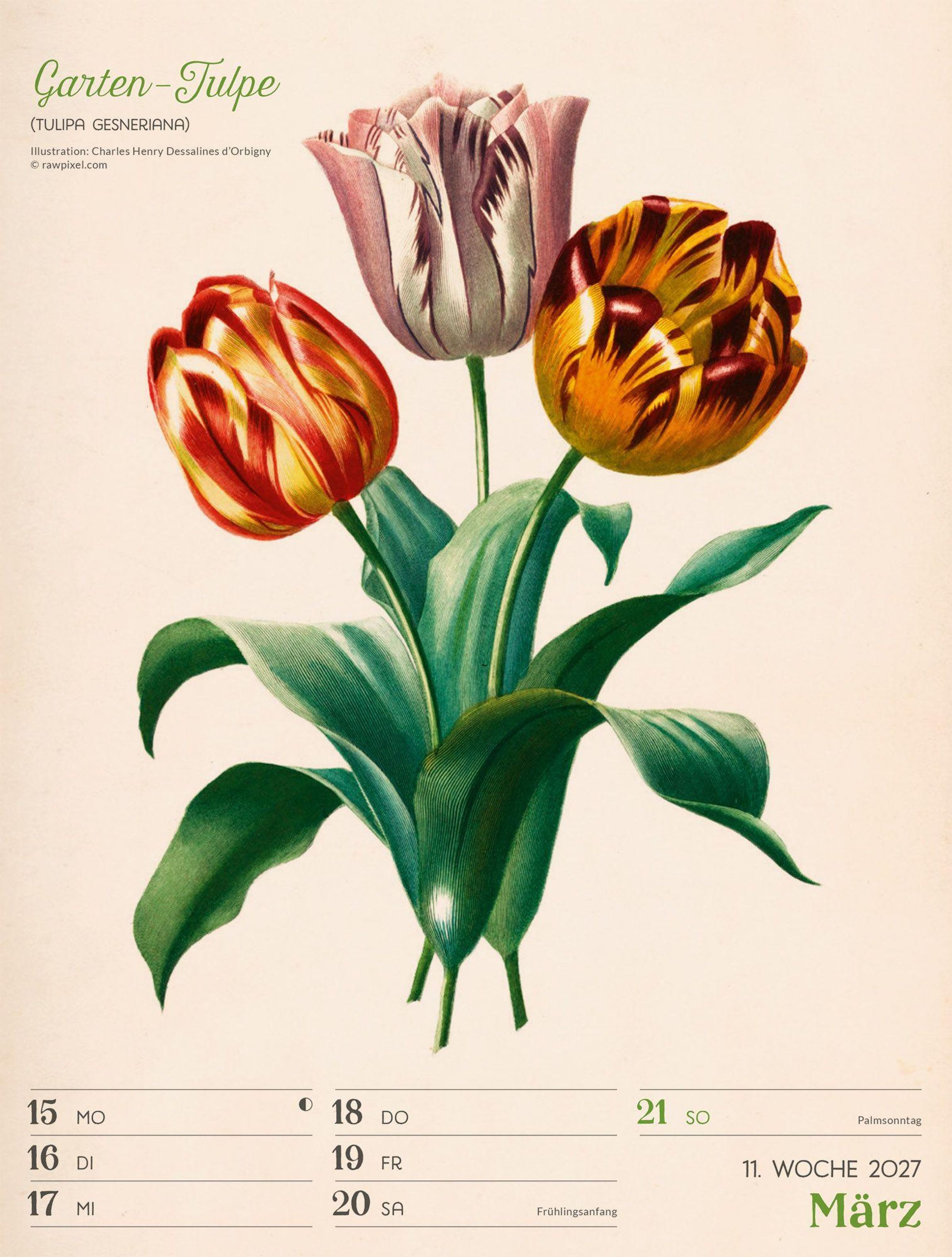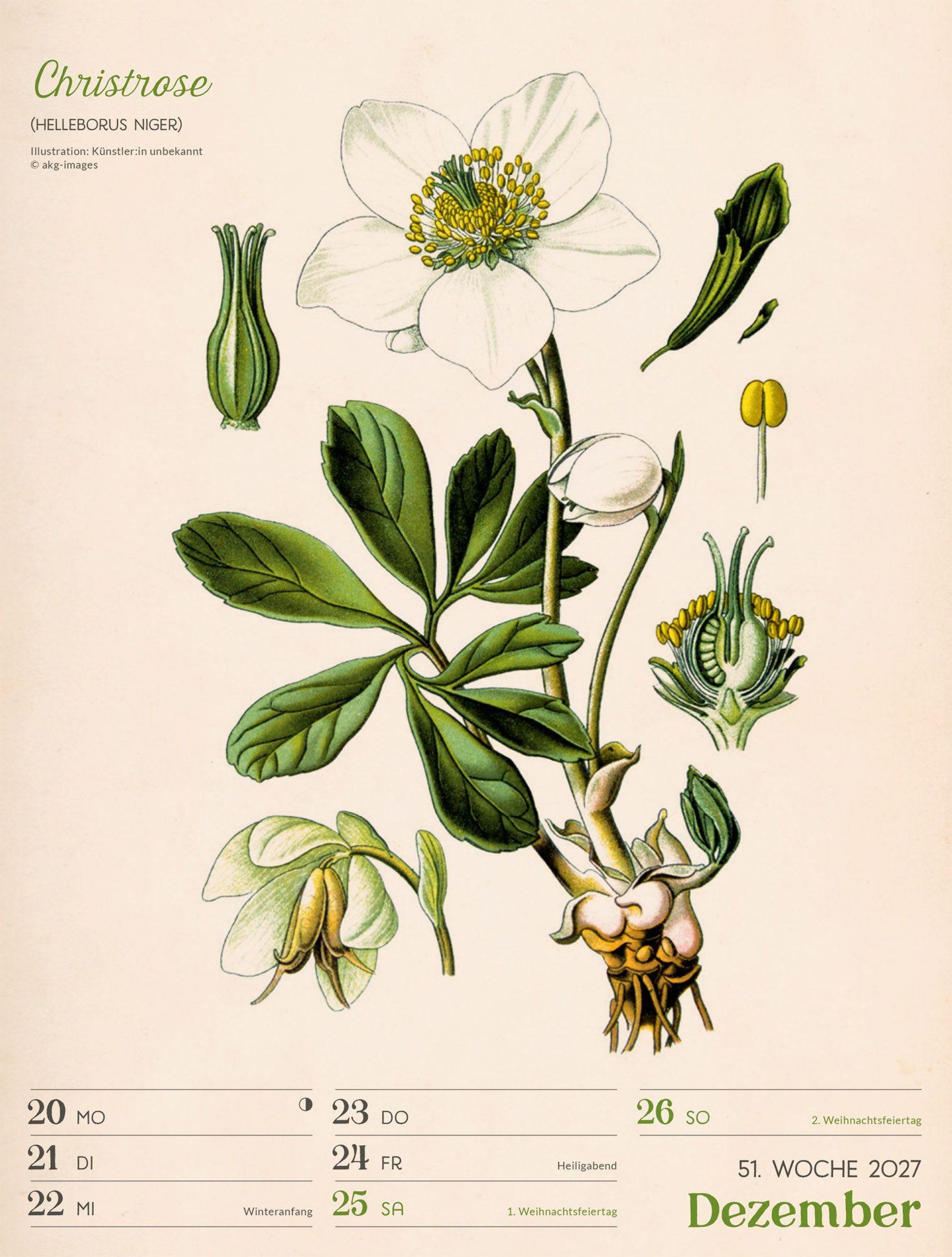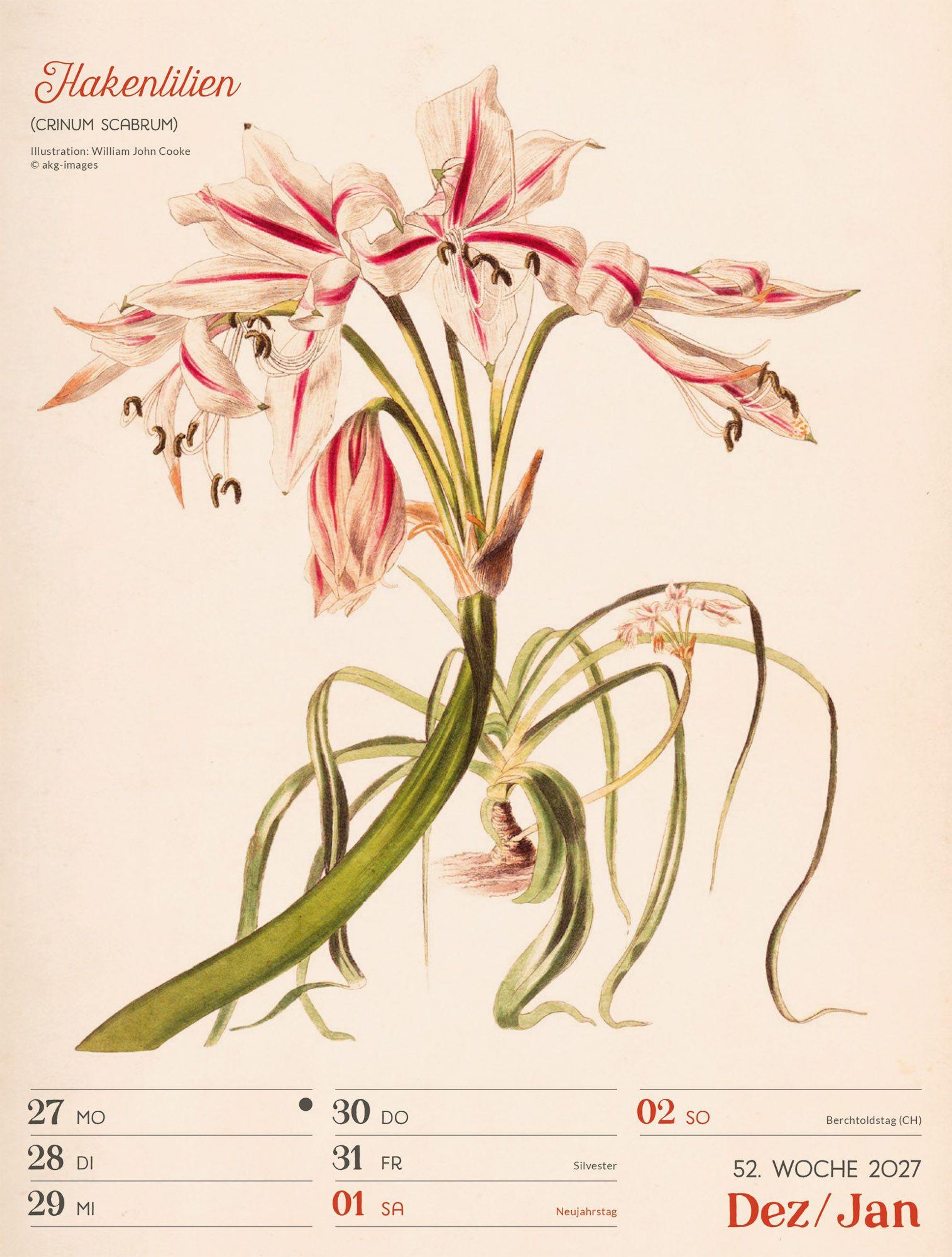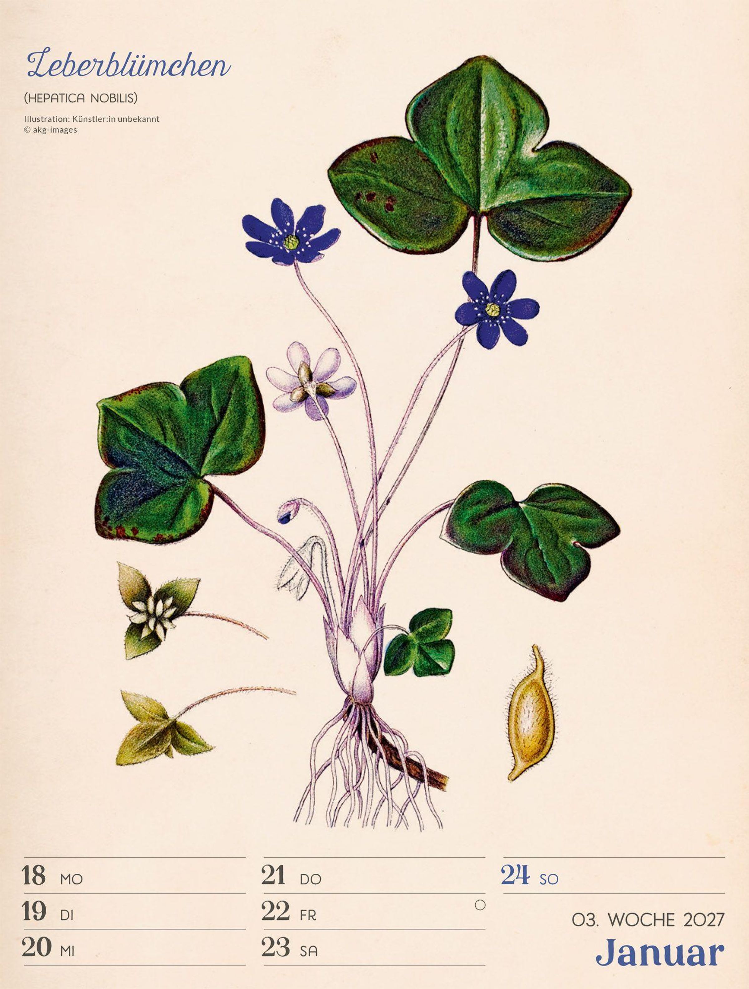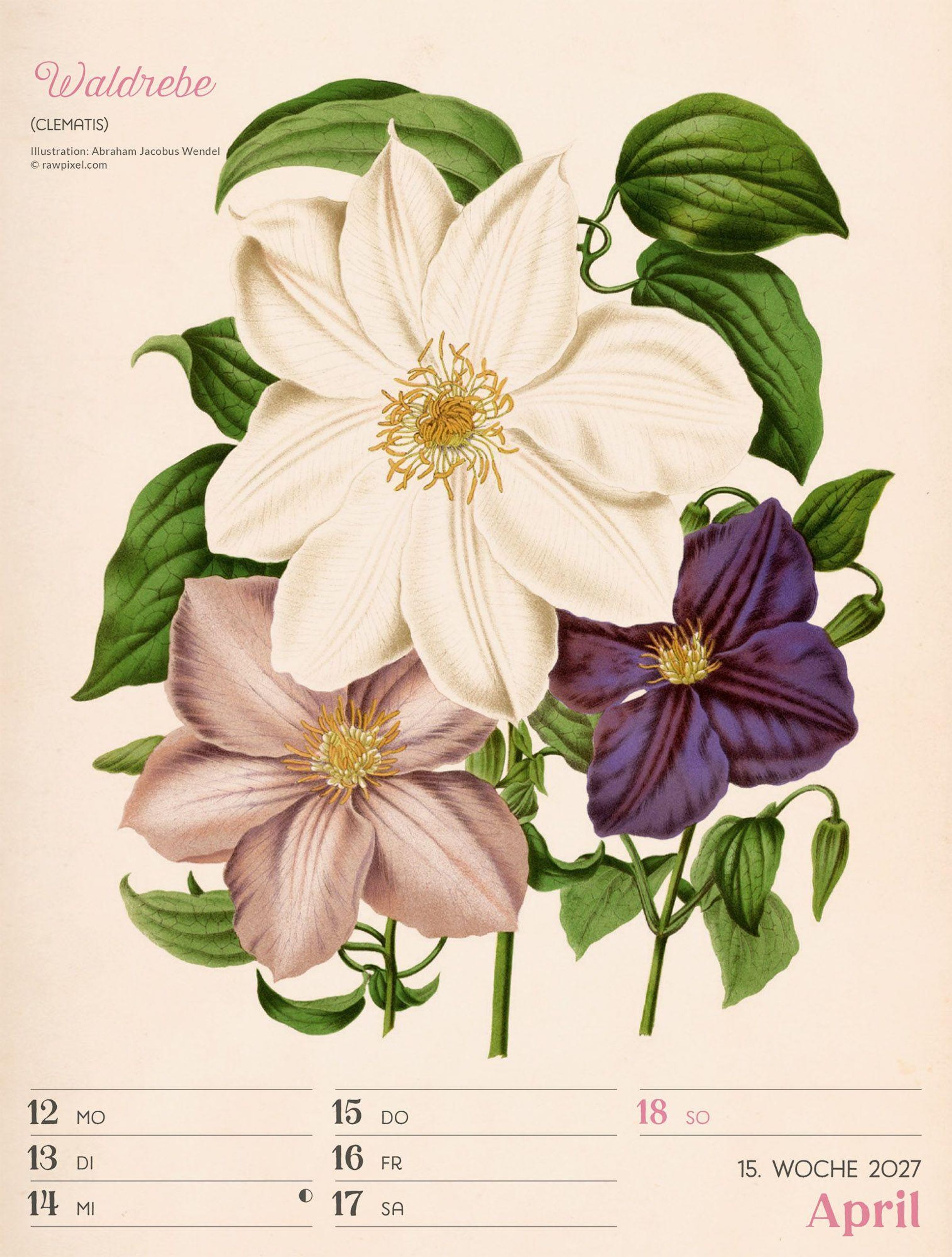 Wochenkalender mit 53 Blumen und Blüten in historischen botanischen Illustrationen