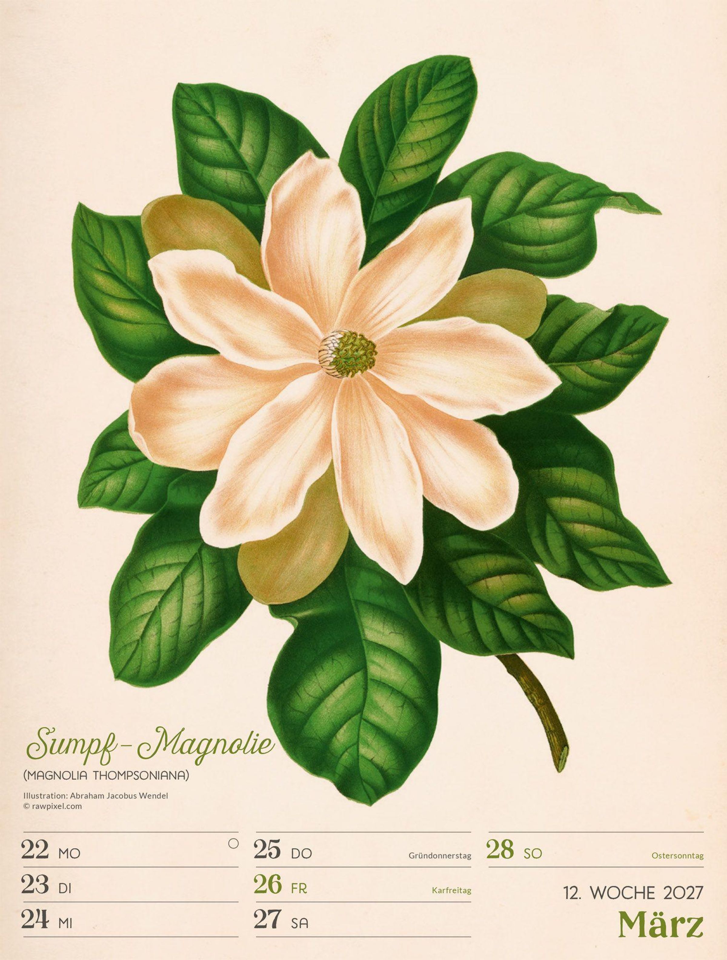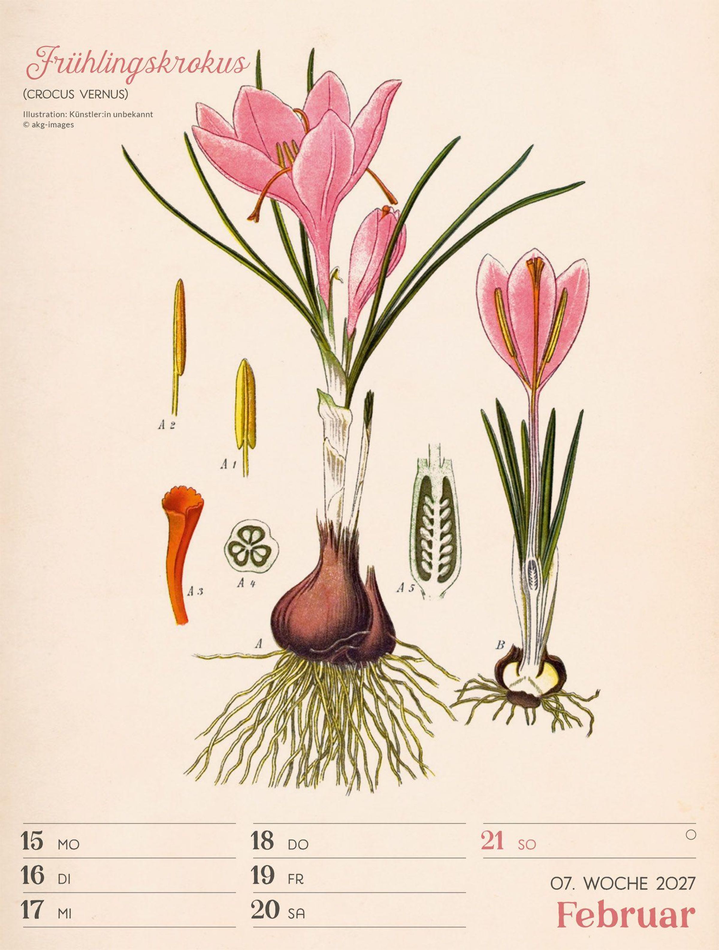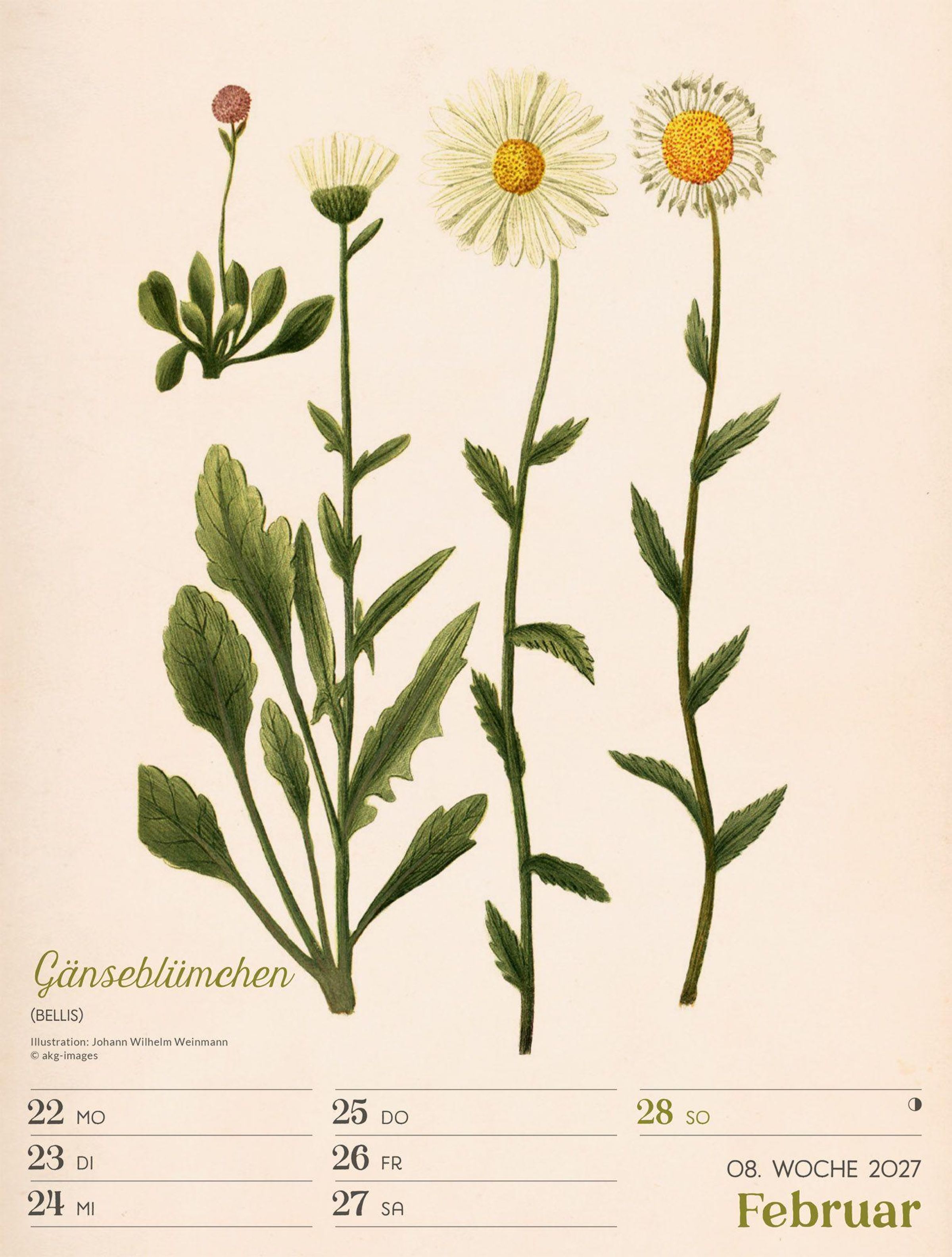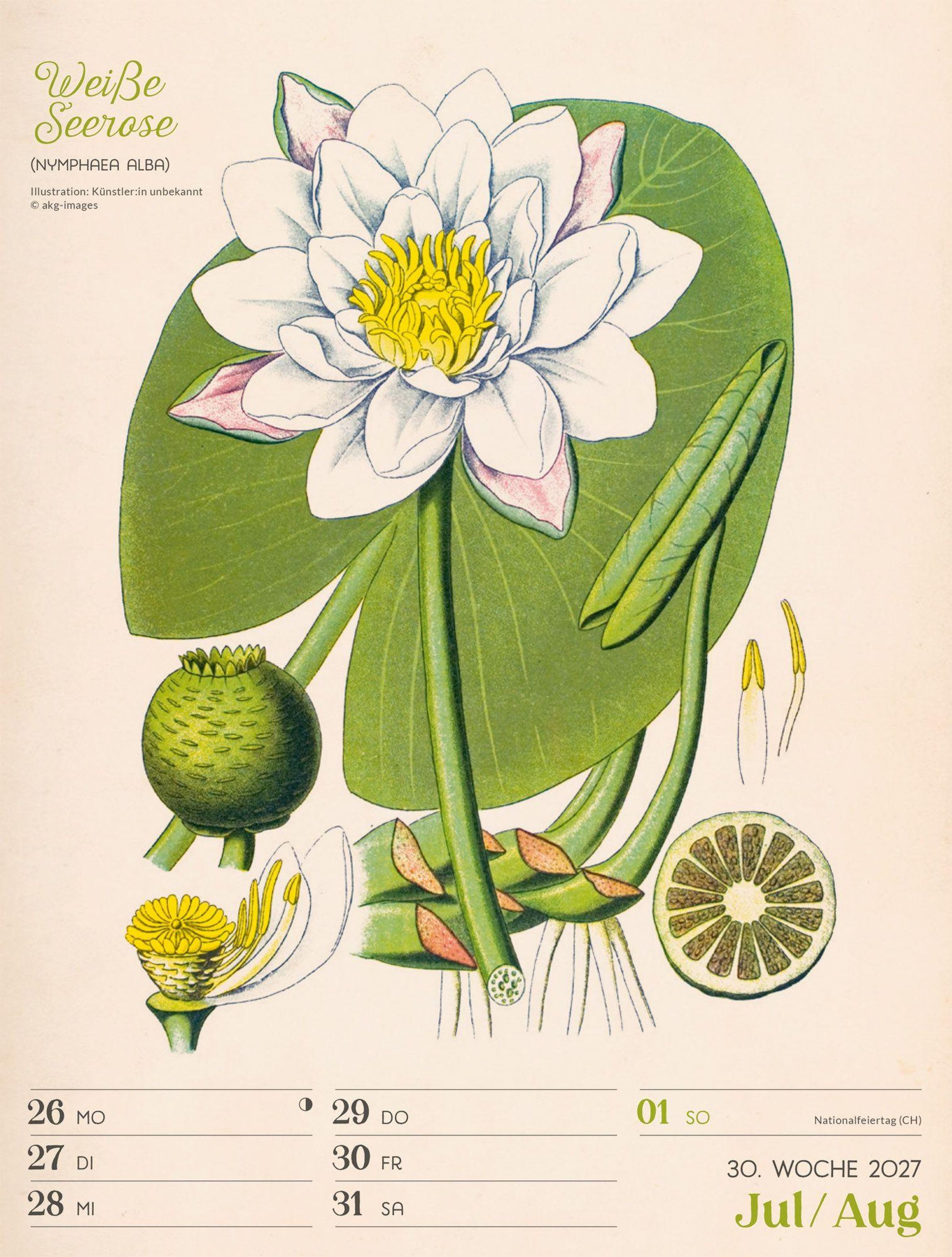 Wochenkalender mit 53 Blumen und Blüten in historischen botanischen Illustrationen