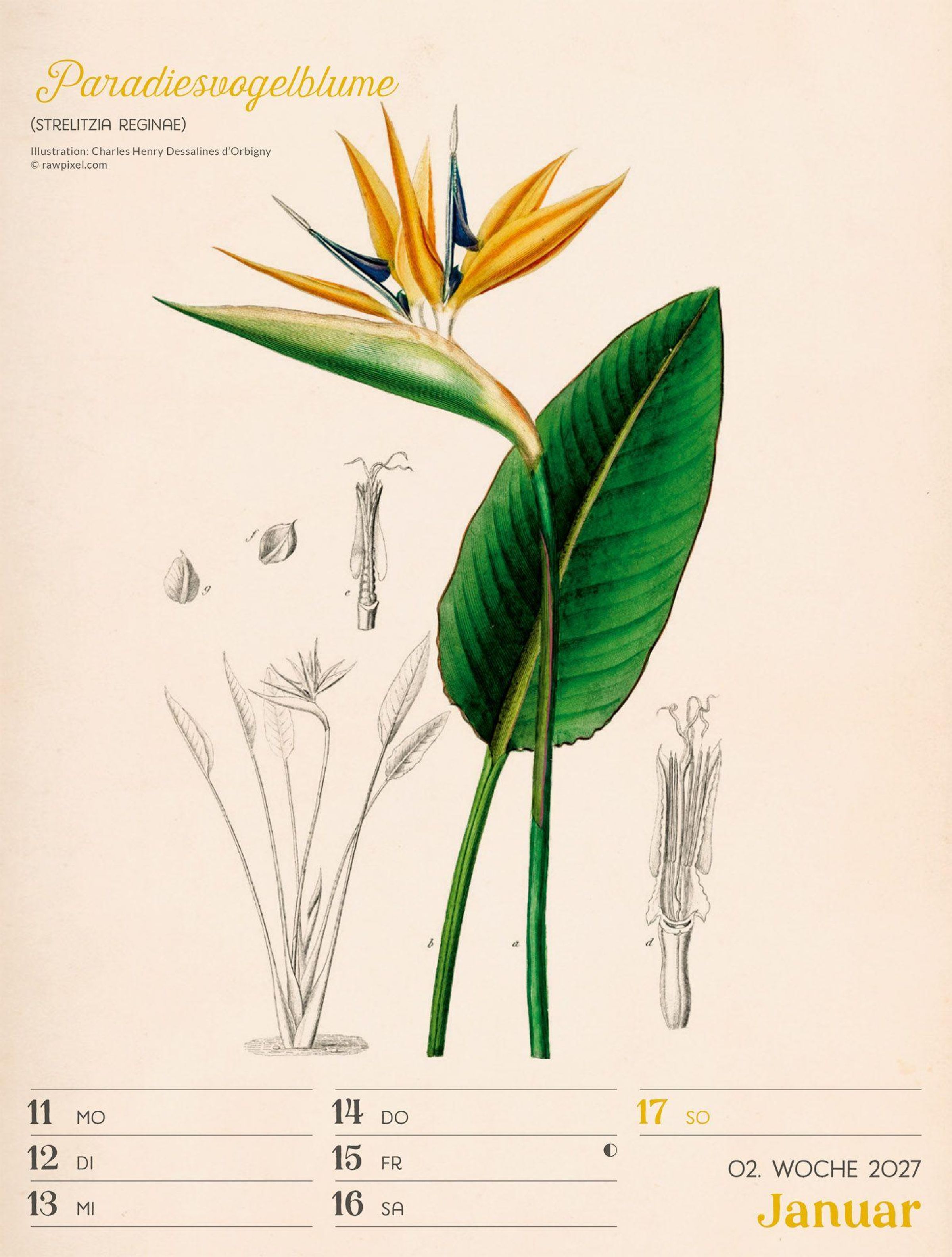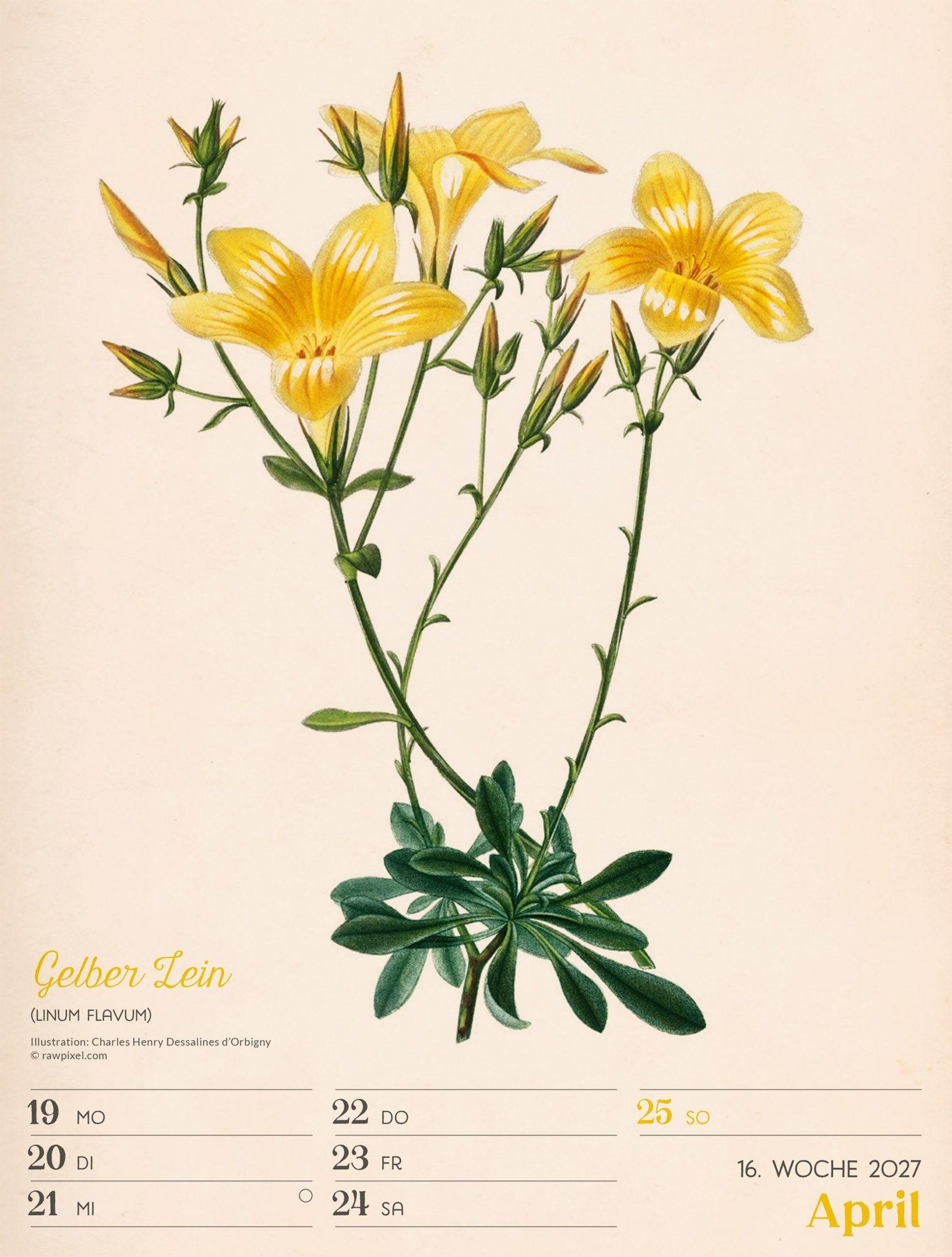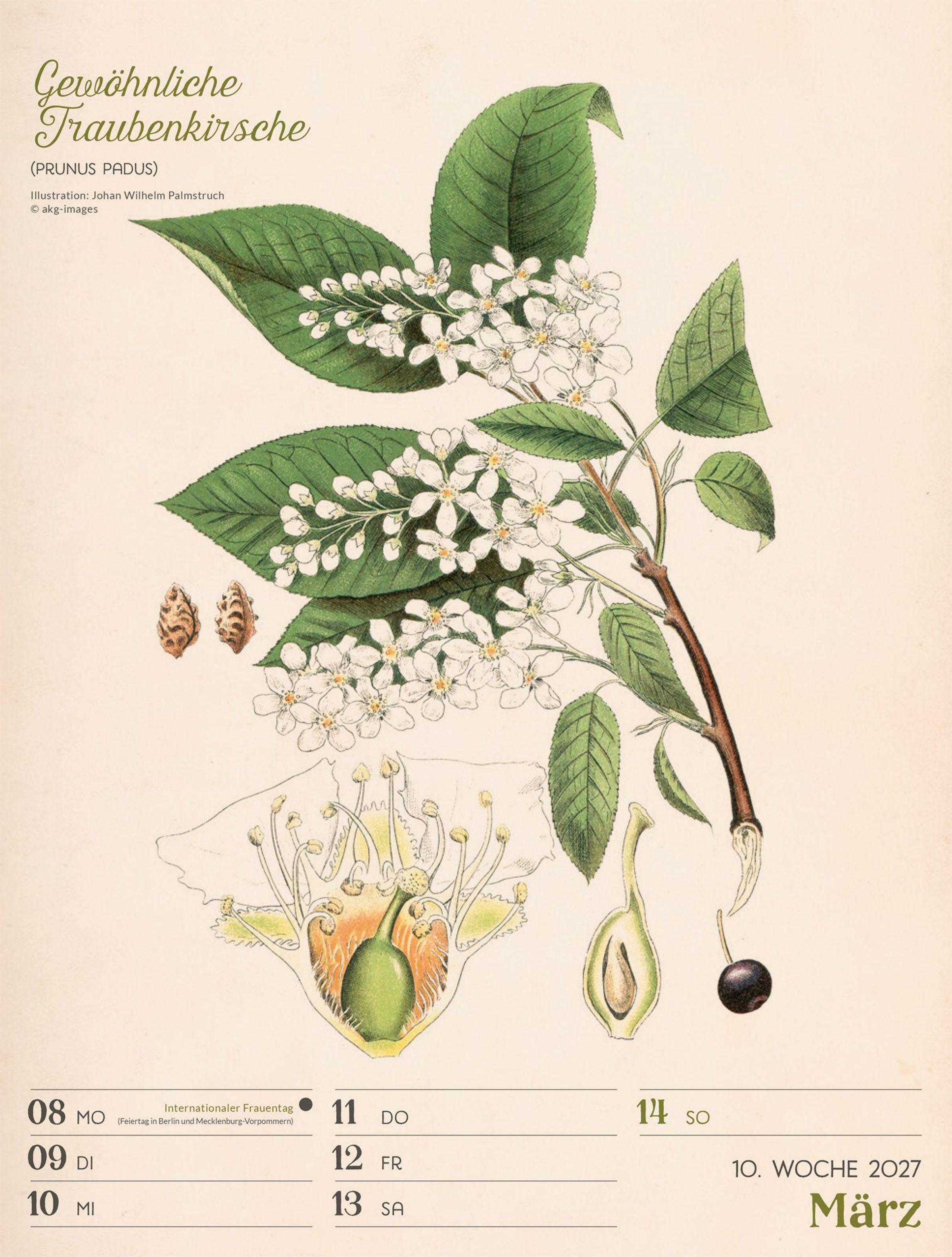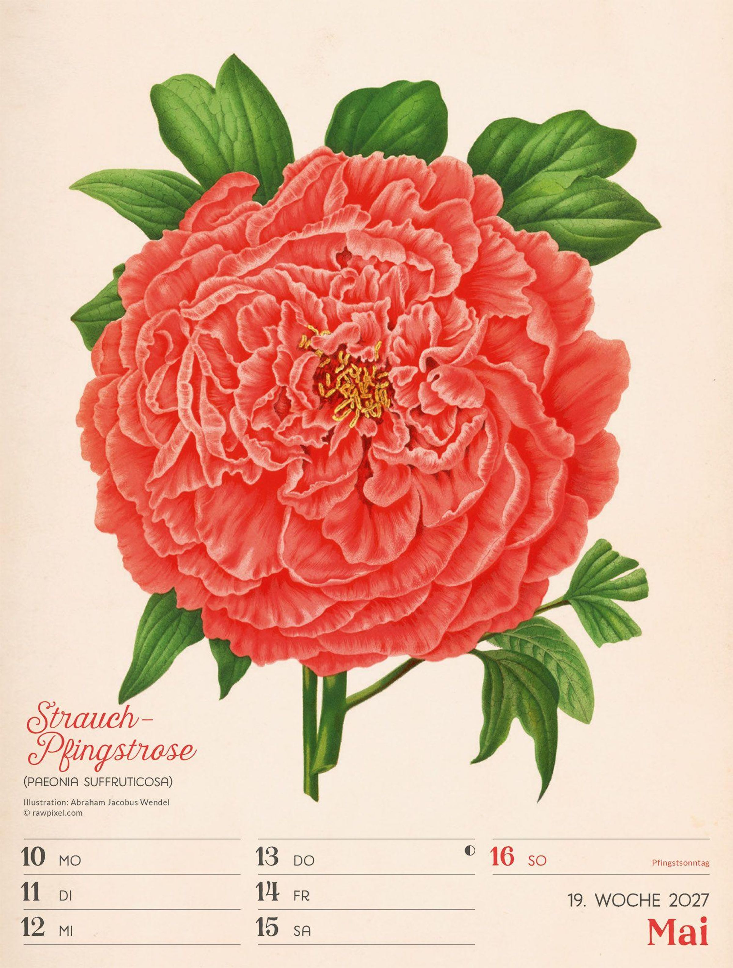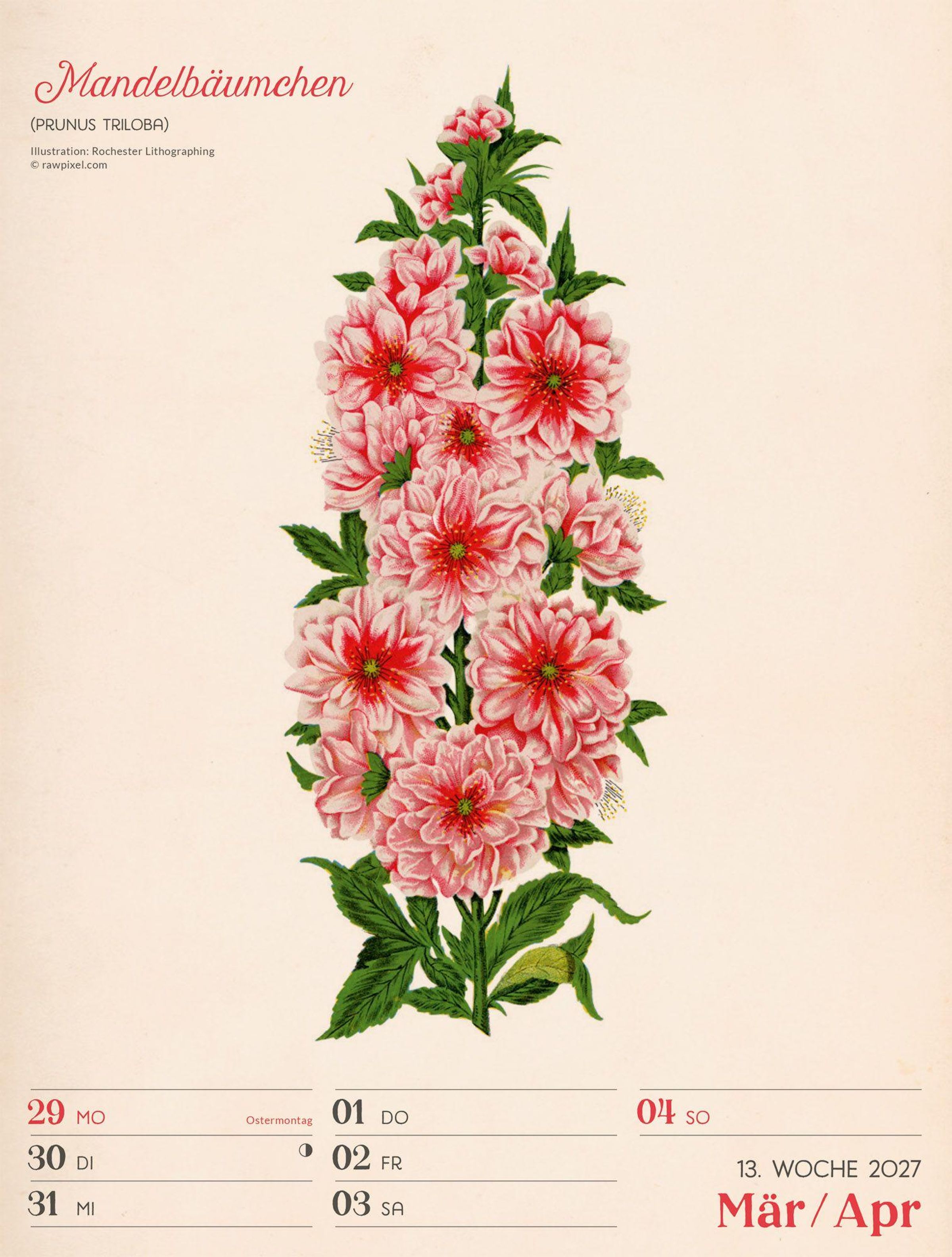 Wochenkalender mit 53 Blumen und Blüten in historischen botanischen Illustrationen