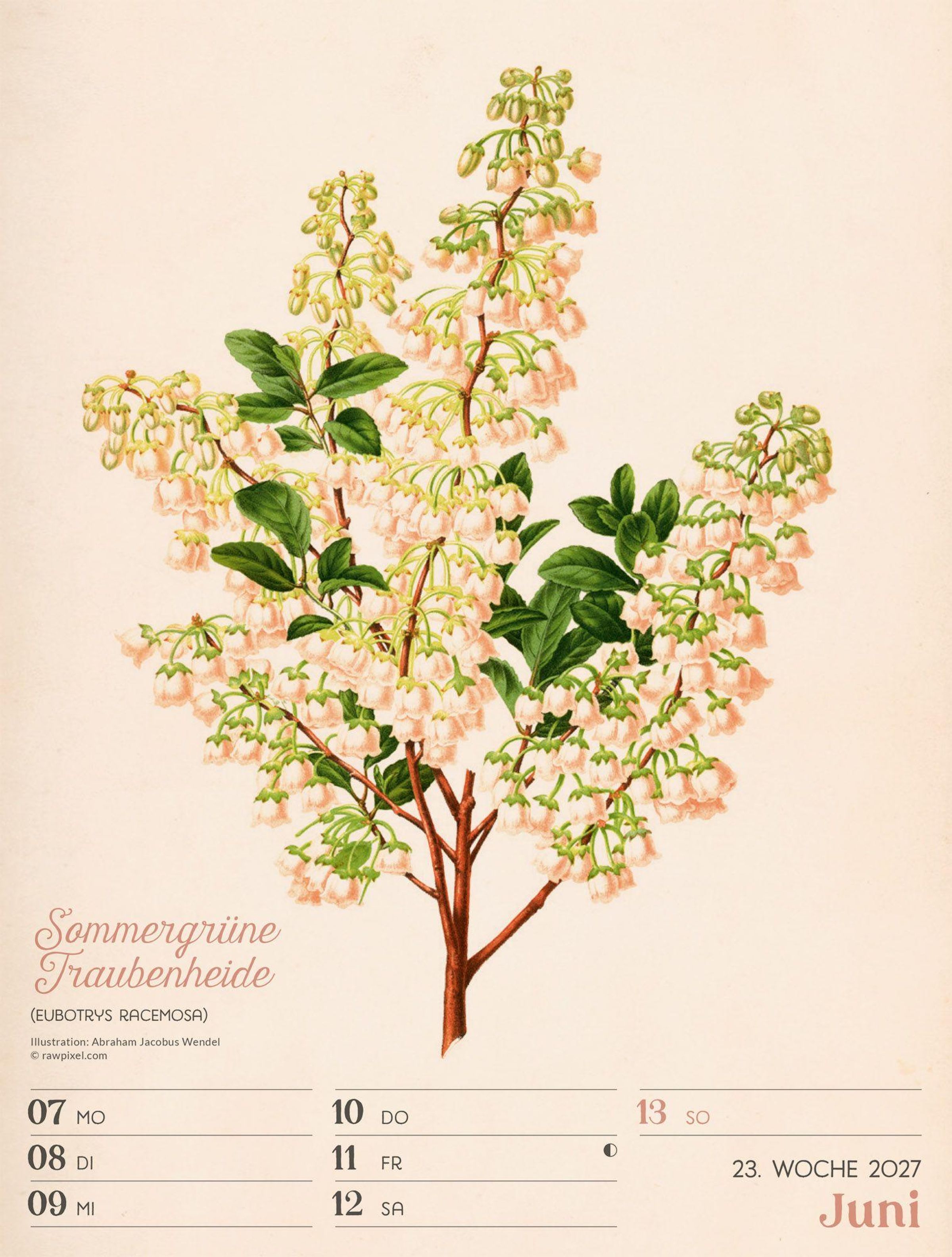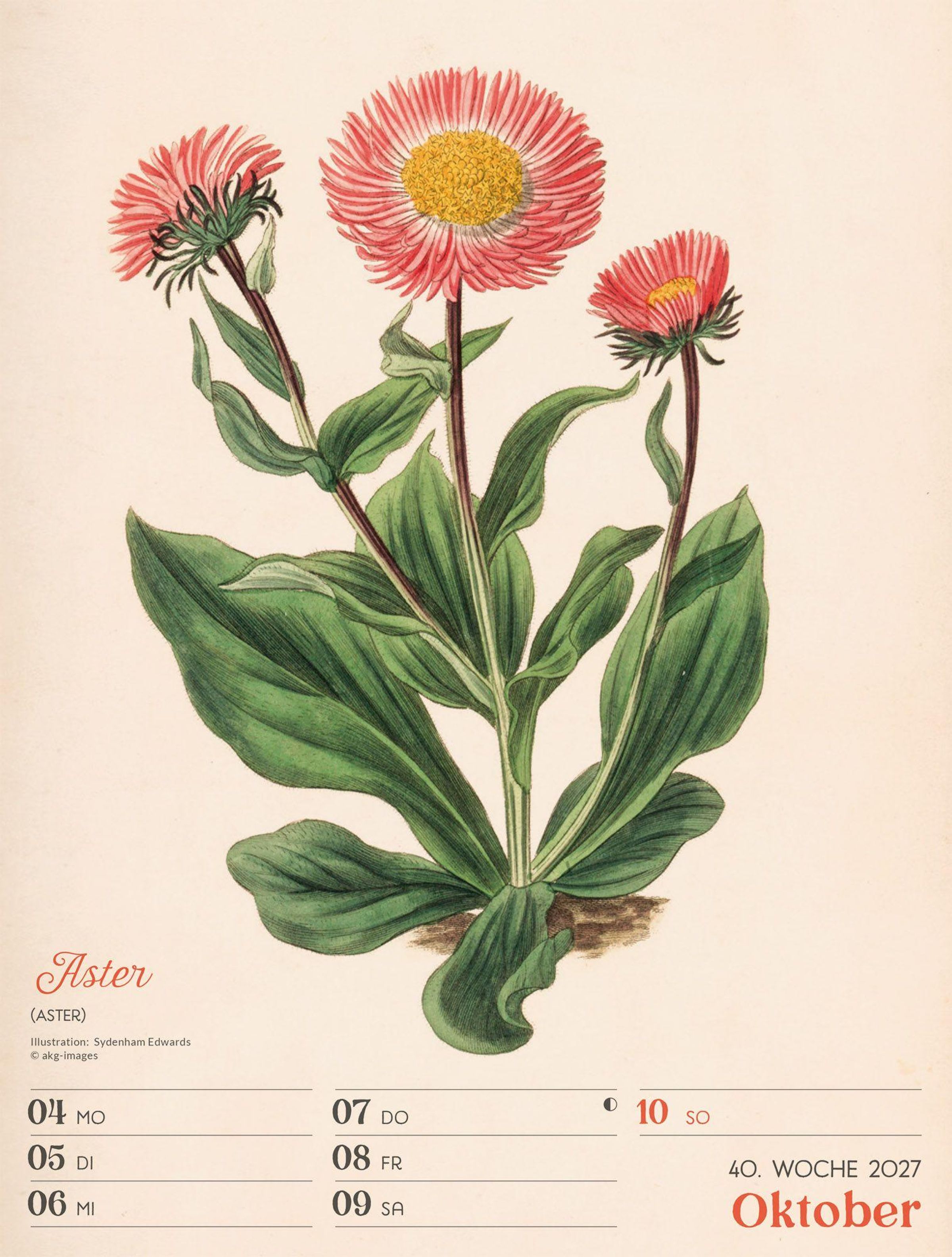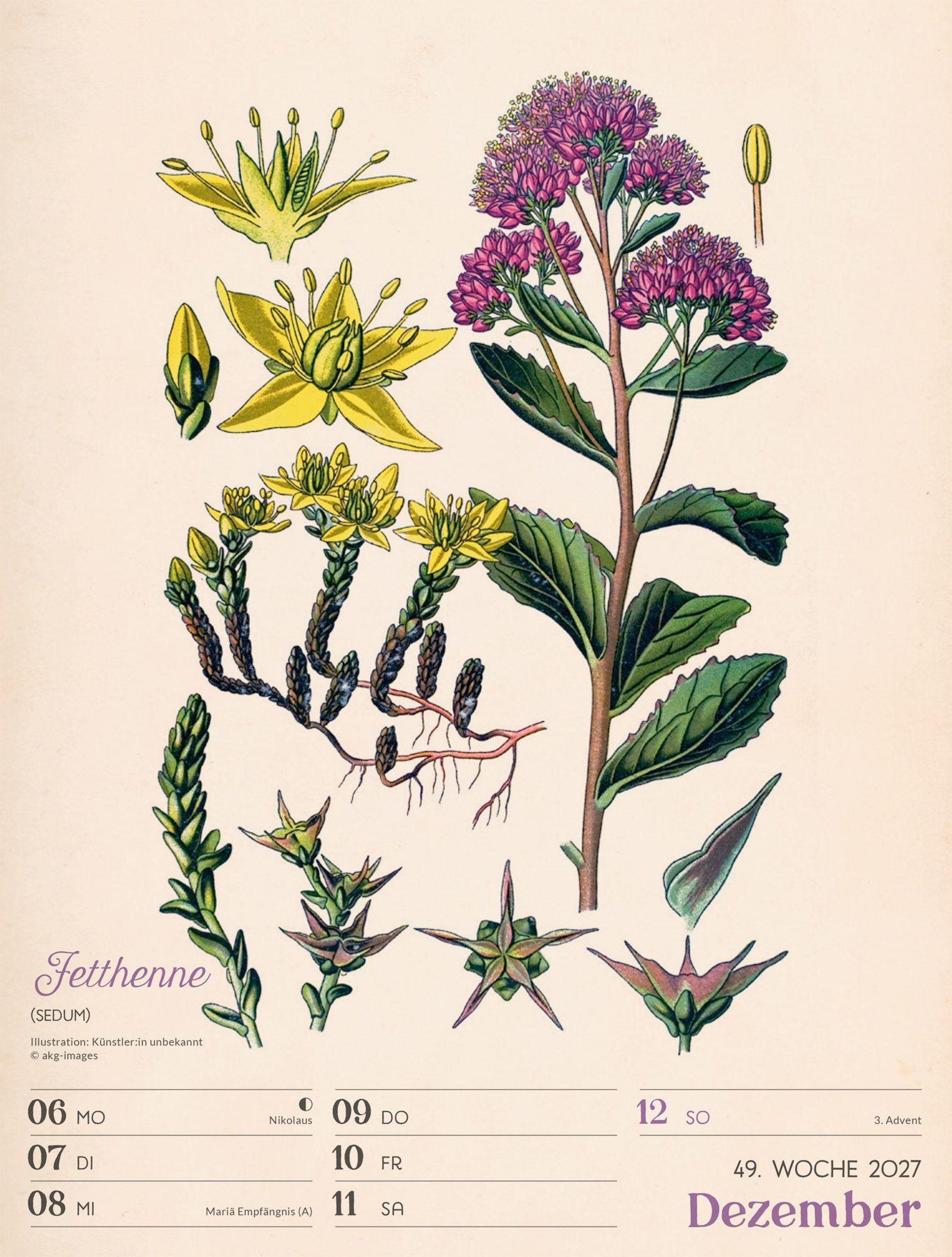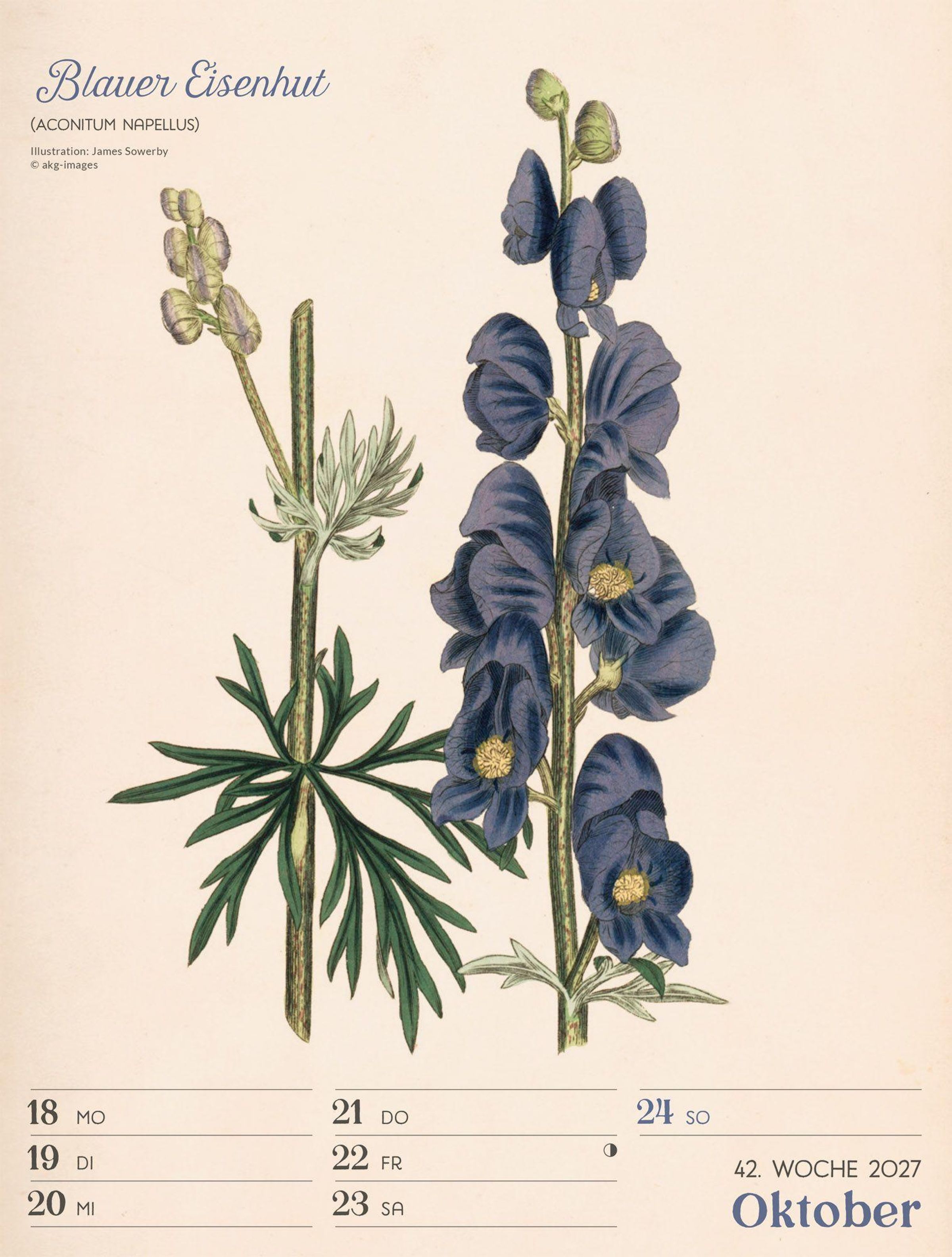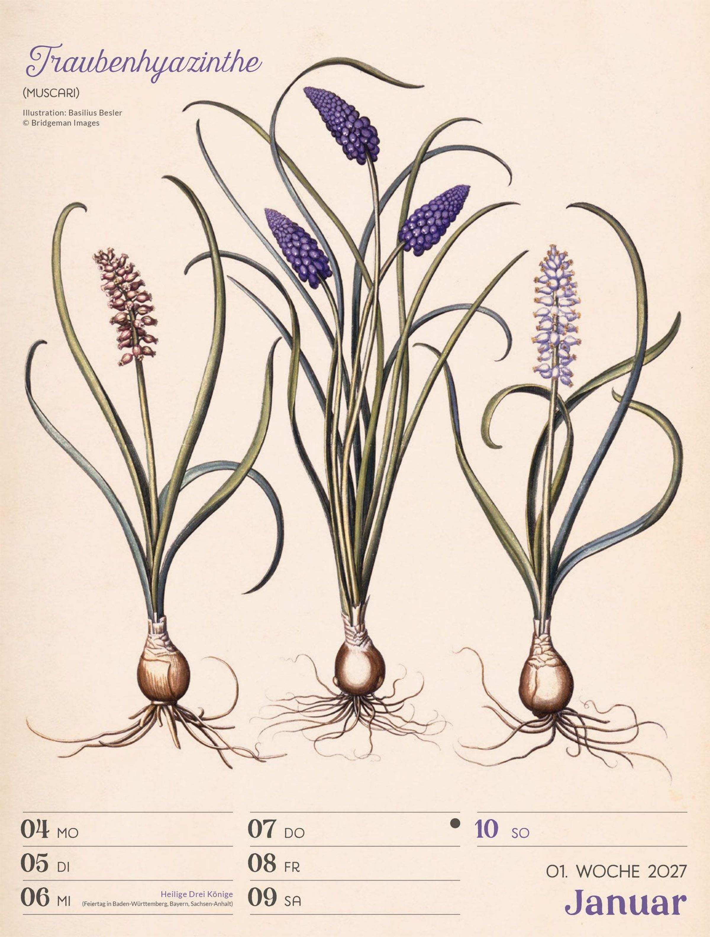 Wochenkalender mit 53 Blumen und Blüten in historischen botanischen Illustrationen
