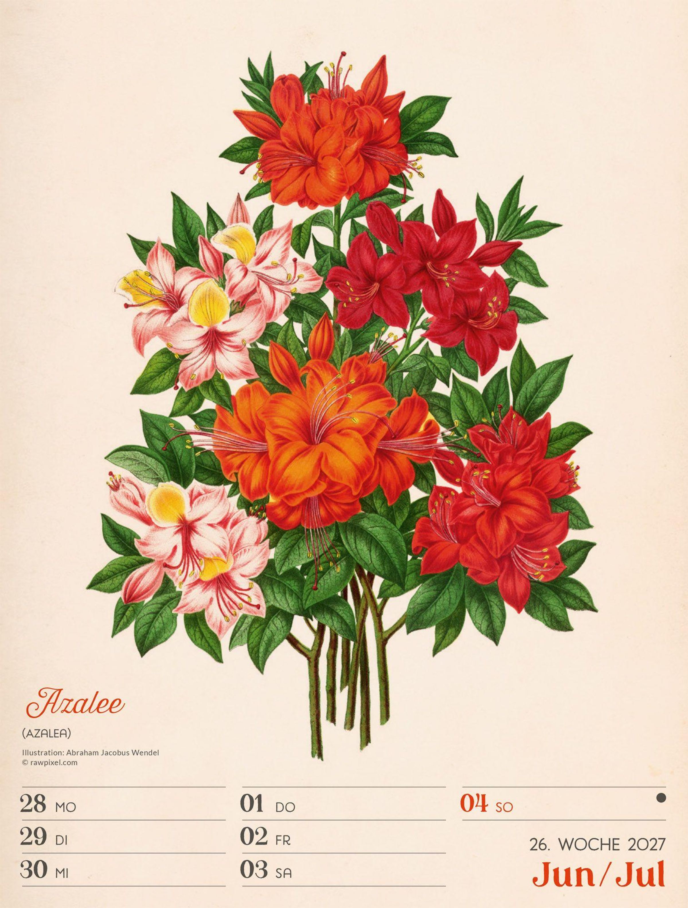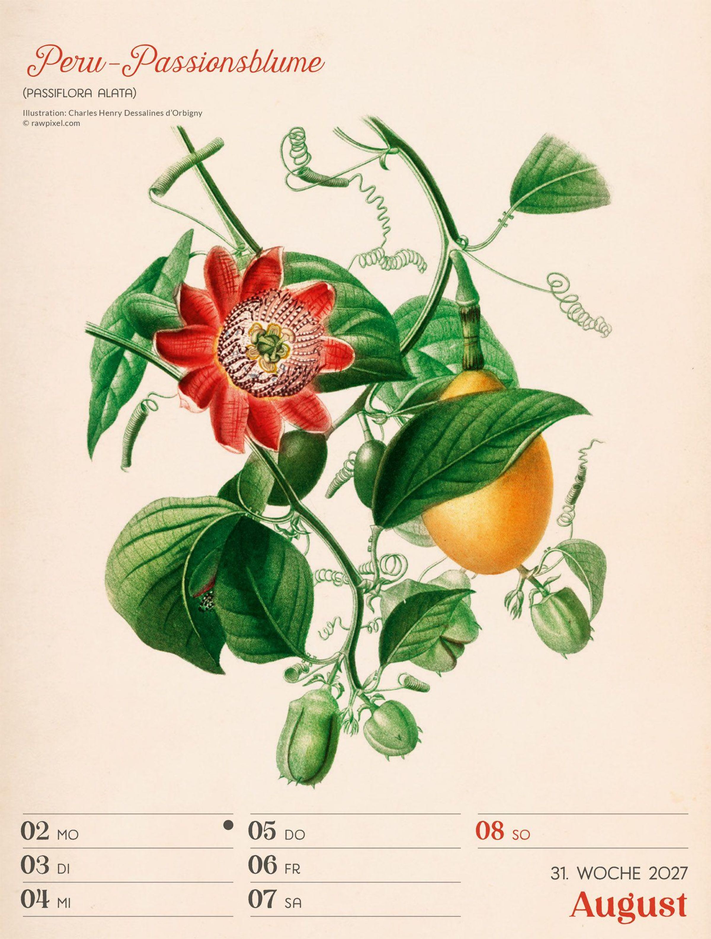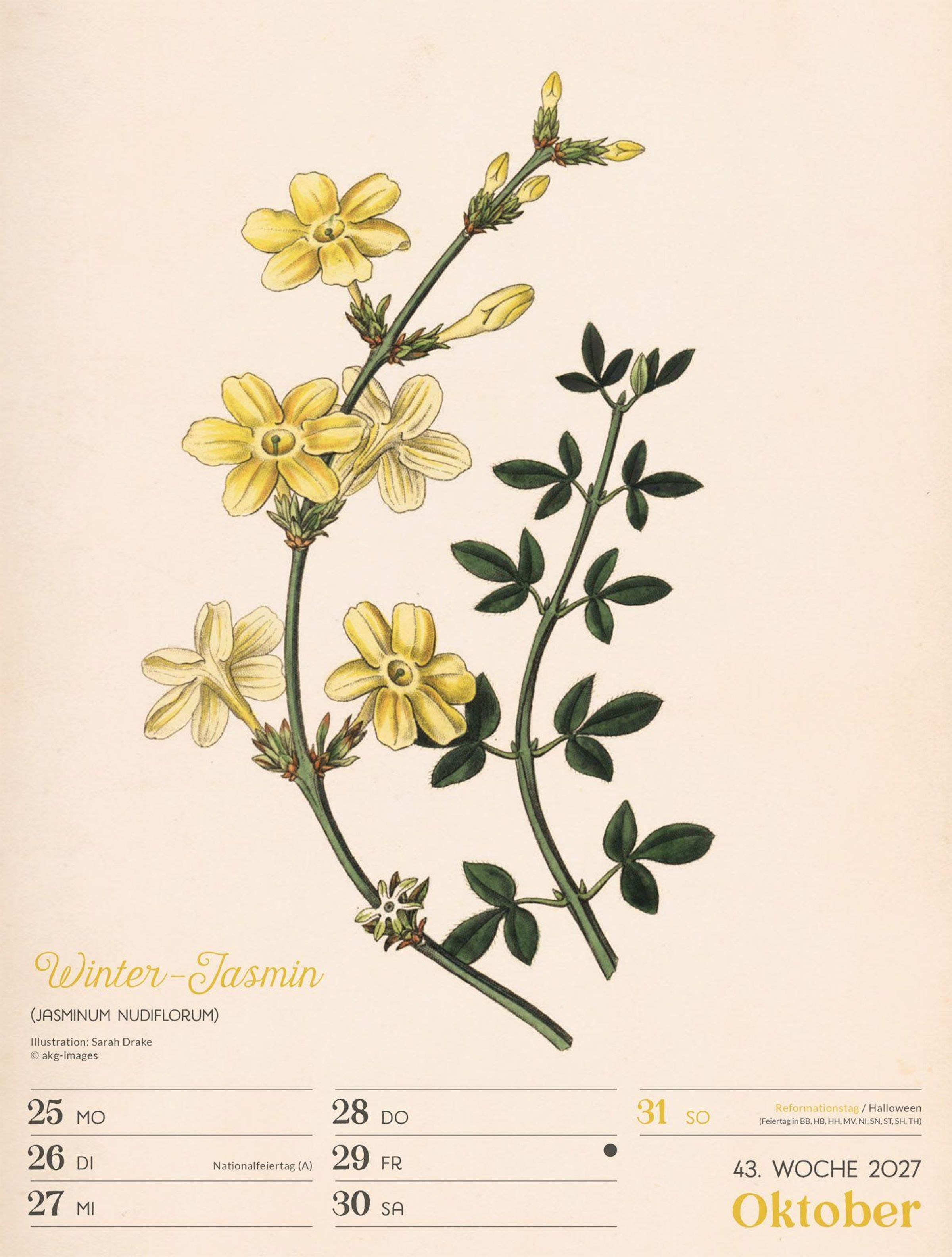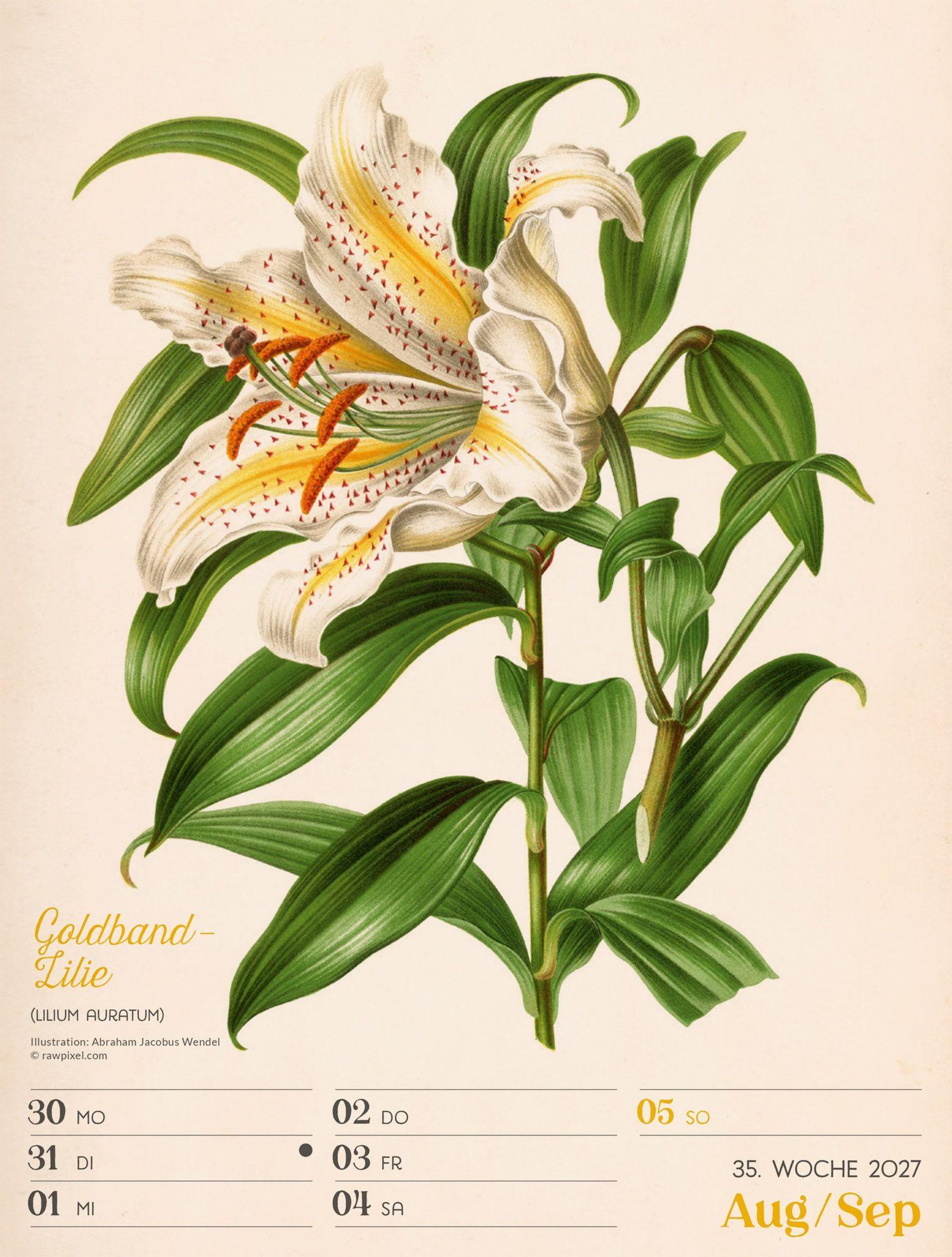 Wochenkalender mit 53 Blumen und Blüten in historischen botanischen Illustrationen