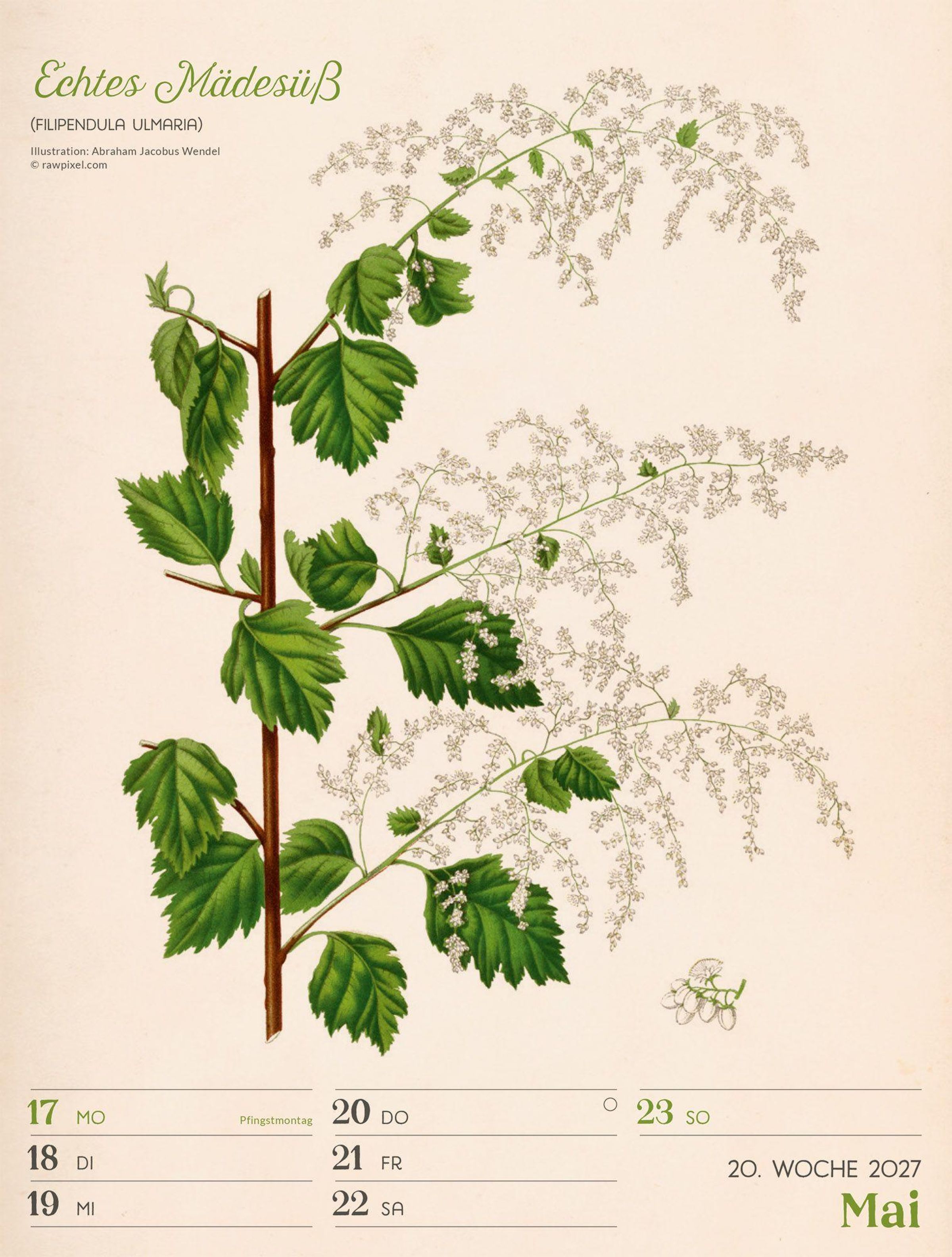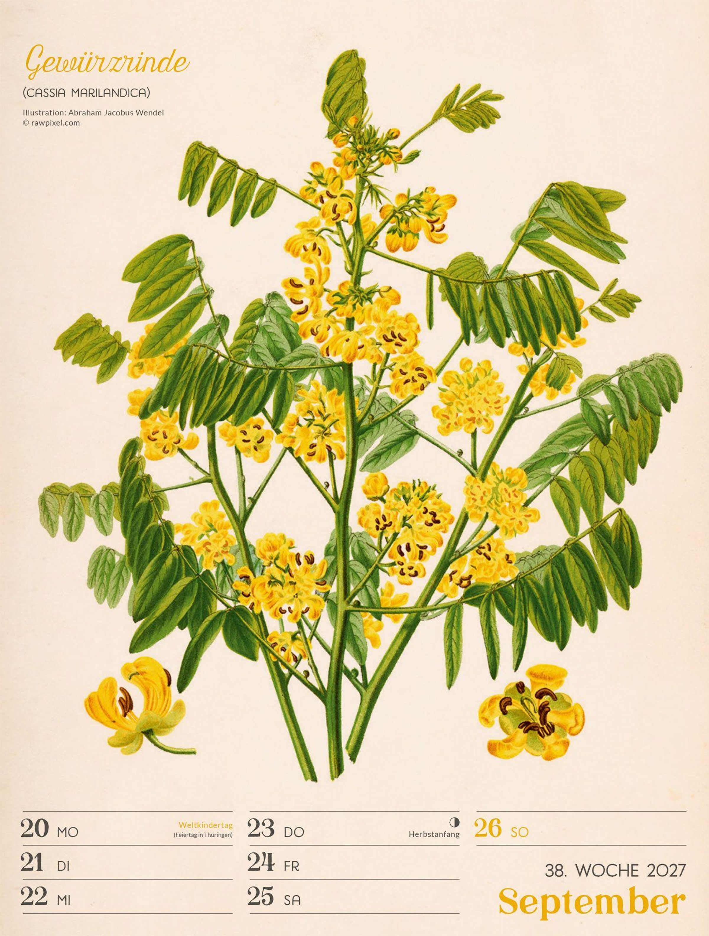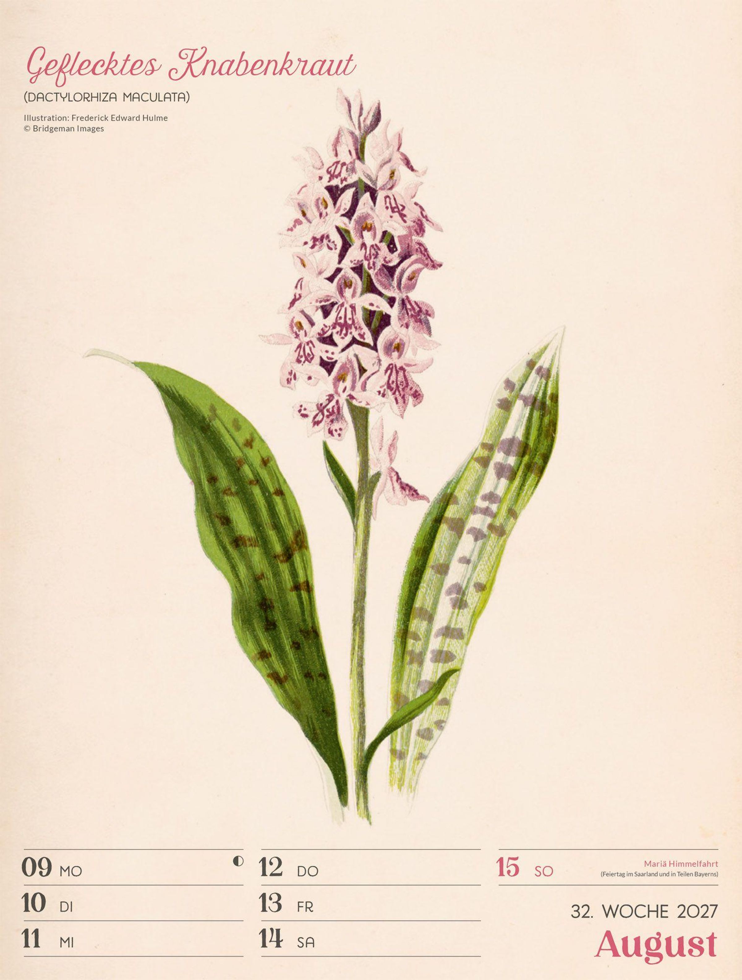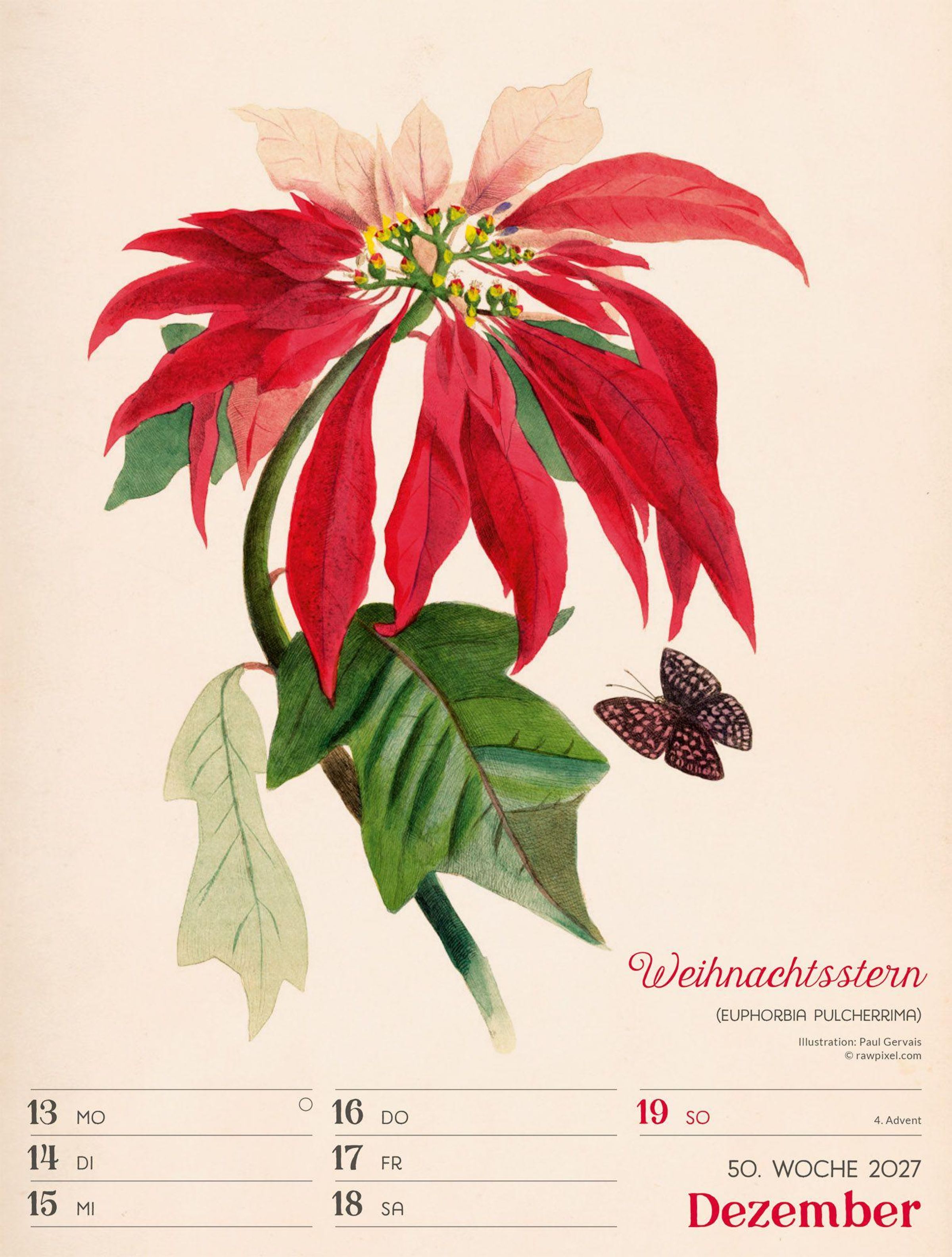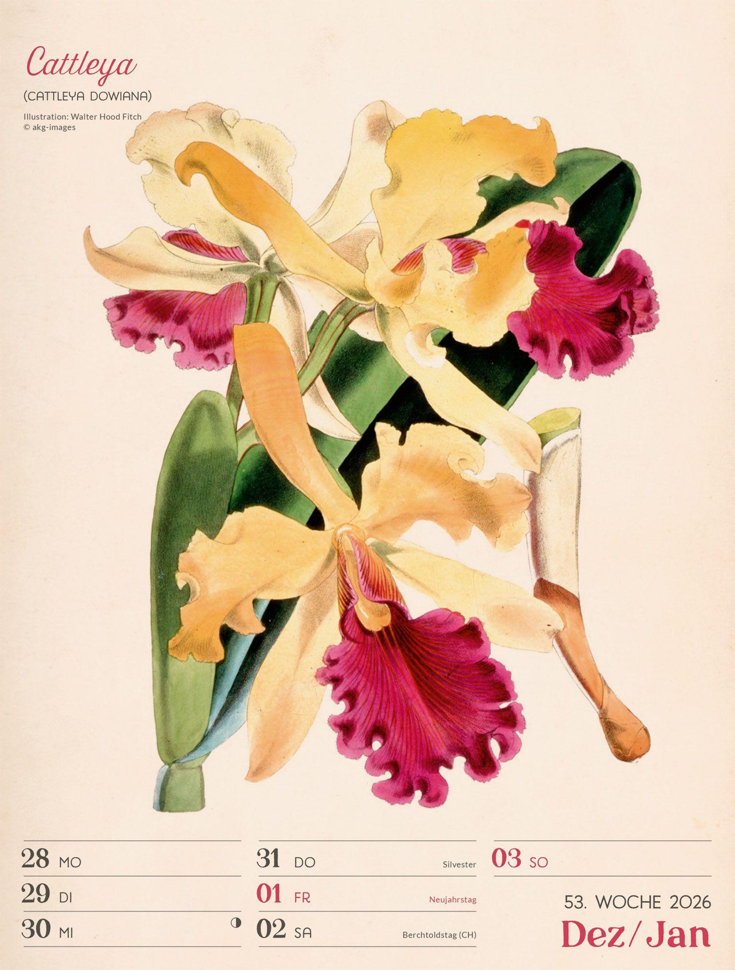 Wochenkalender mit 53 Blumen und Blüten in historischen botanischen Illustrationen