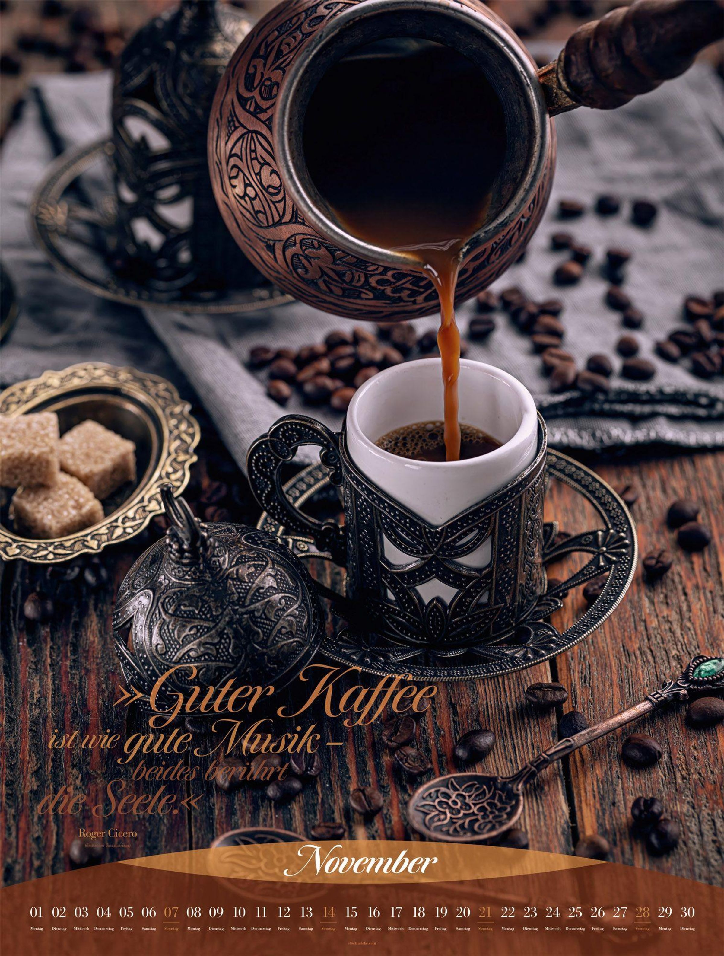 Ästhetische Nahaufnahmen kulinarischer Genüsse, garniert mit kalligrafisch inszenierten Zitaten