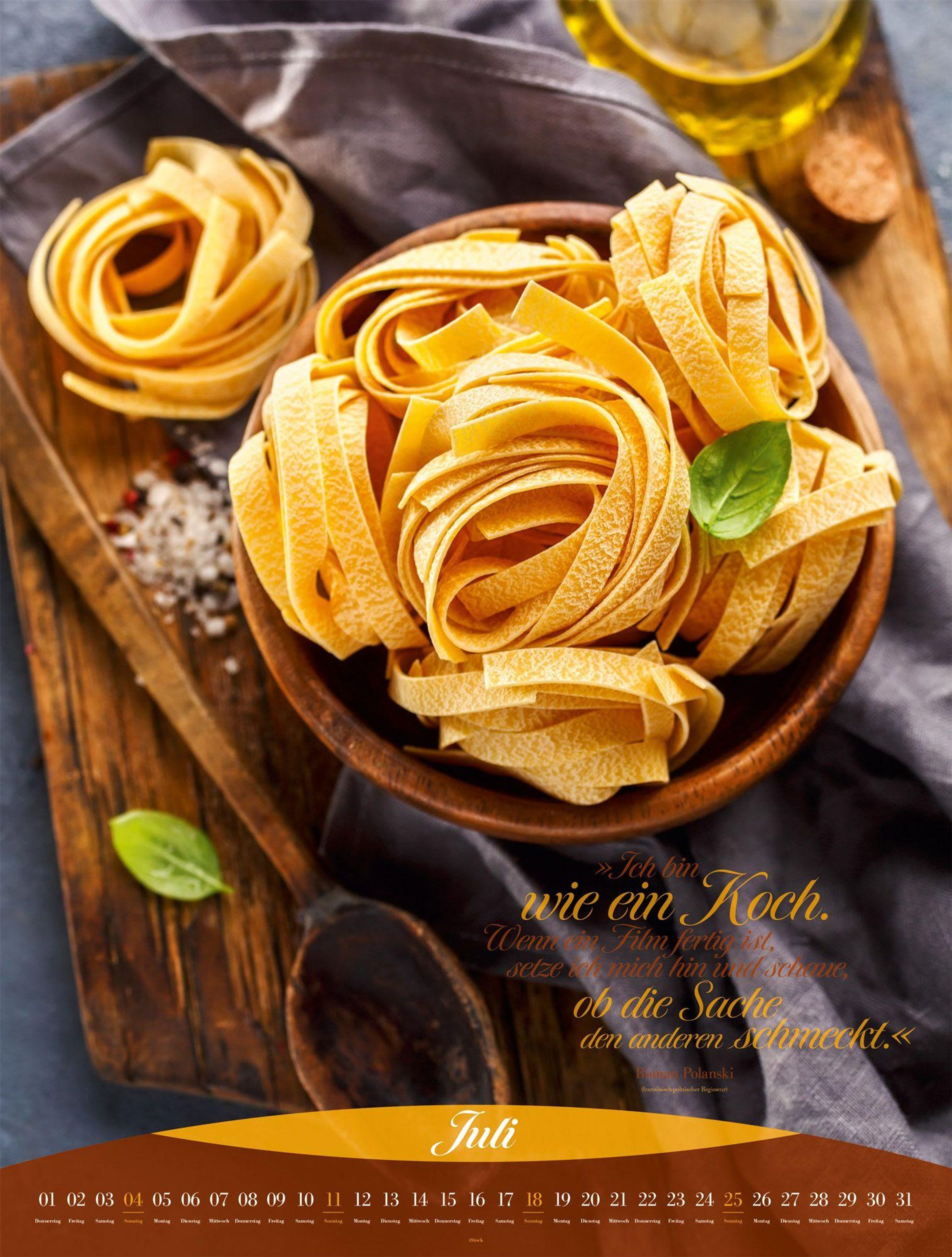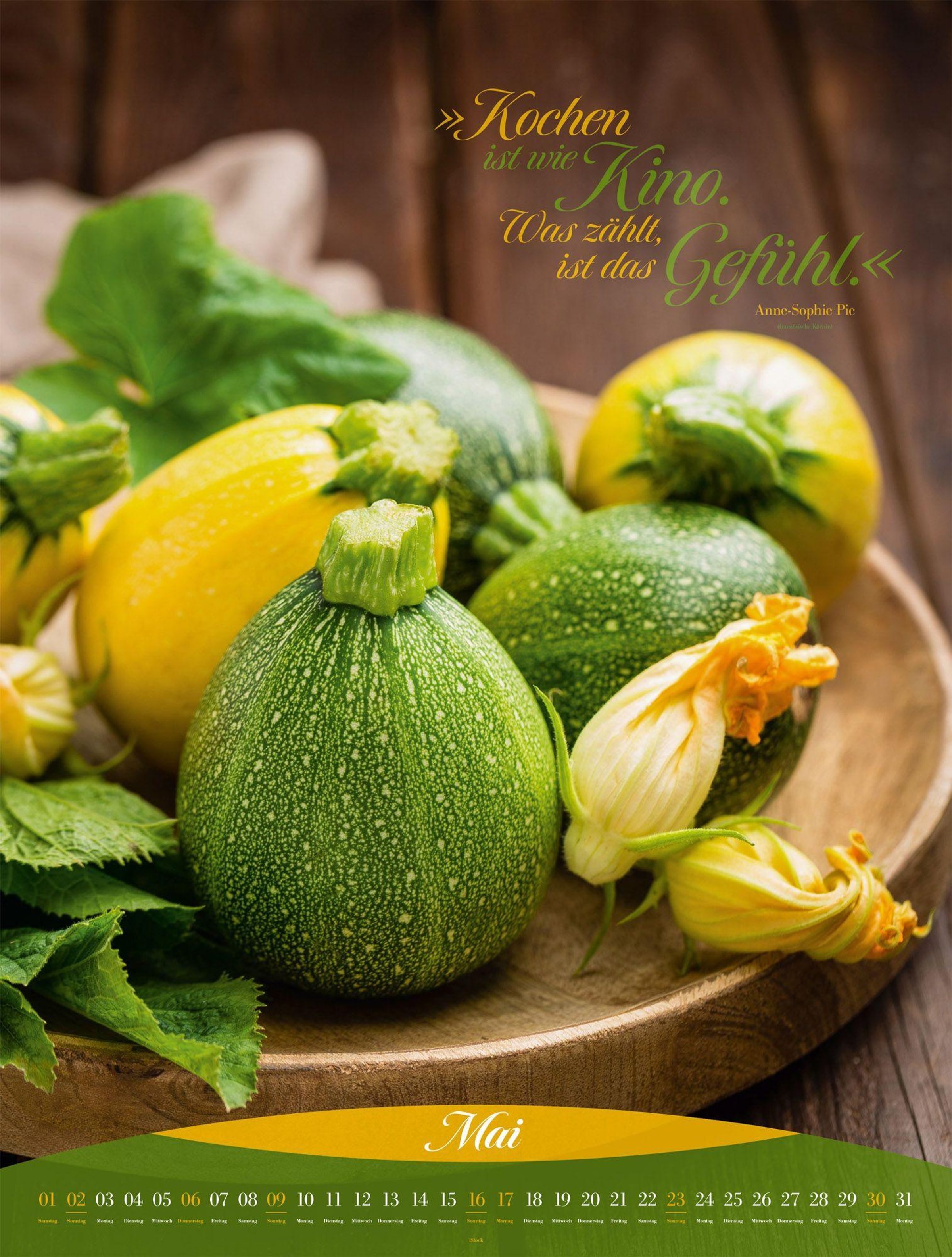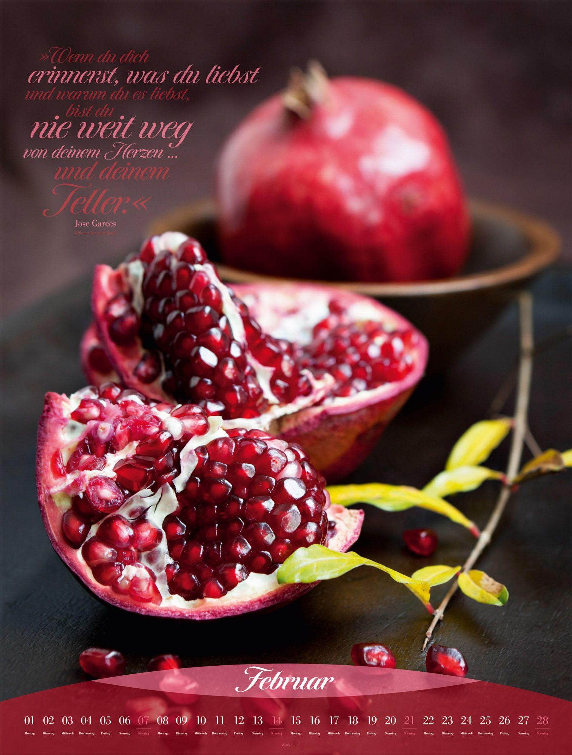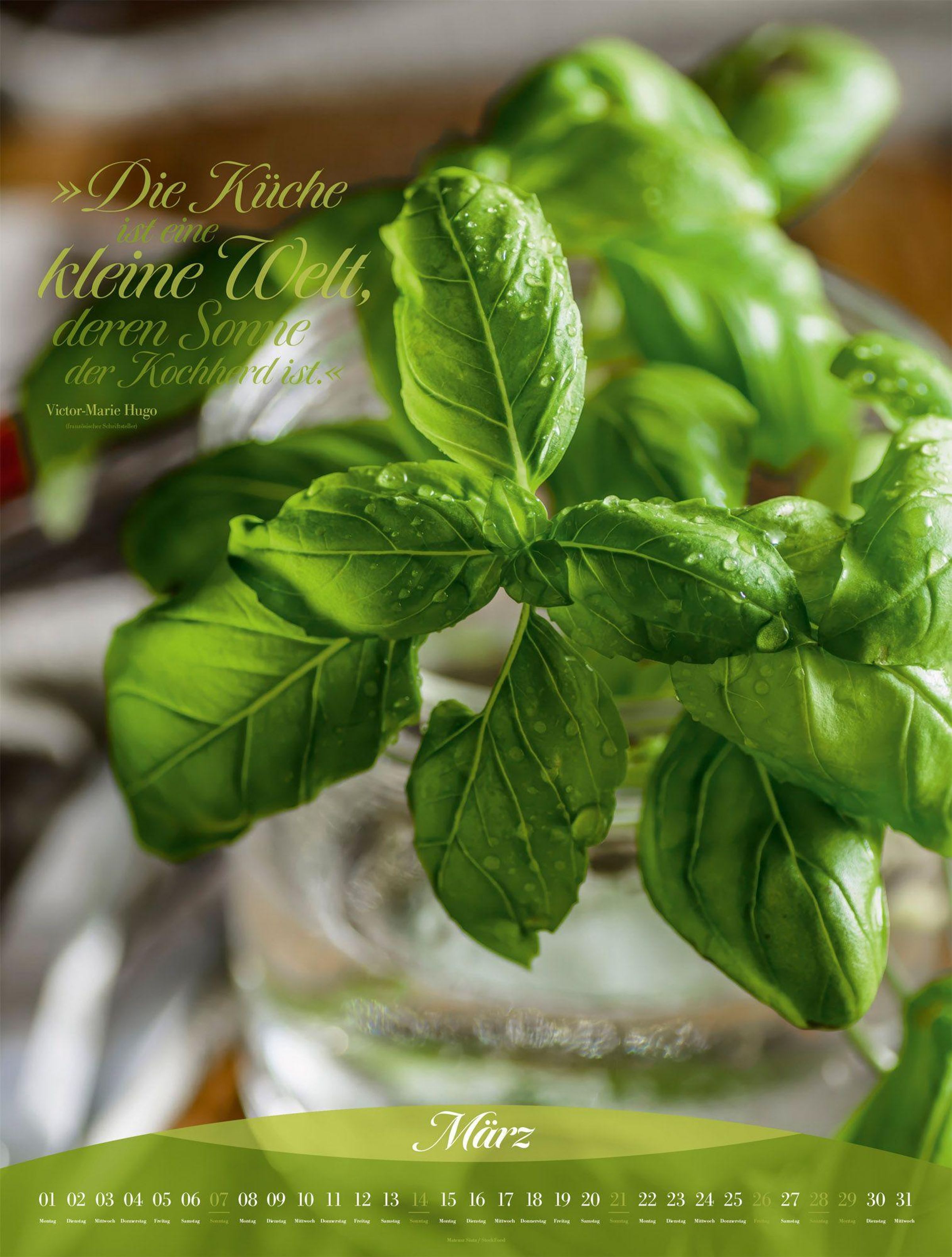 Genuss und Dekoration im XXL-Format: Dieser Küchenkalender zeigt, wie nah Kulinarik und Kunst beieinander liegen. Erlesene Zutaten, knackiges Obst und Gemüse oder zubereitete Köstlichkeiten wurden so perfekt inszeniert, dass Feinschmecker: innen jedes einzelne Kalenderblatt Lust auf neue Aromen und spannende Texturen macht. Garniert mit genussvollen Zitaten zeugt dieser Fotokunstkalender nicht nur in der Küche von gutem Geschmack.