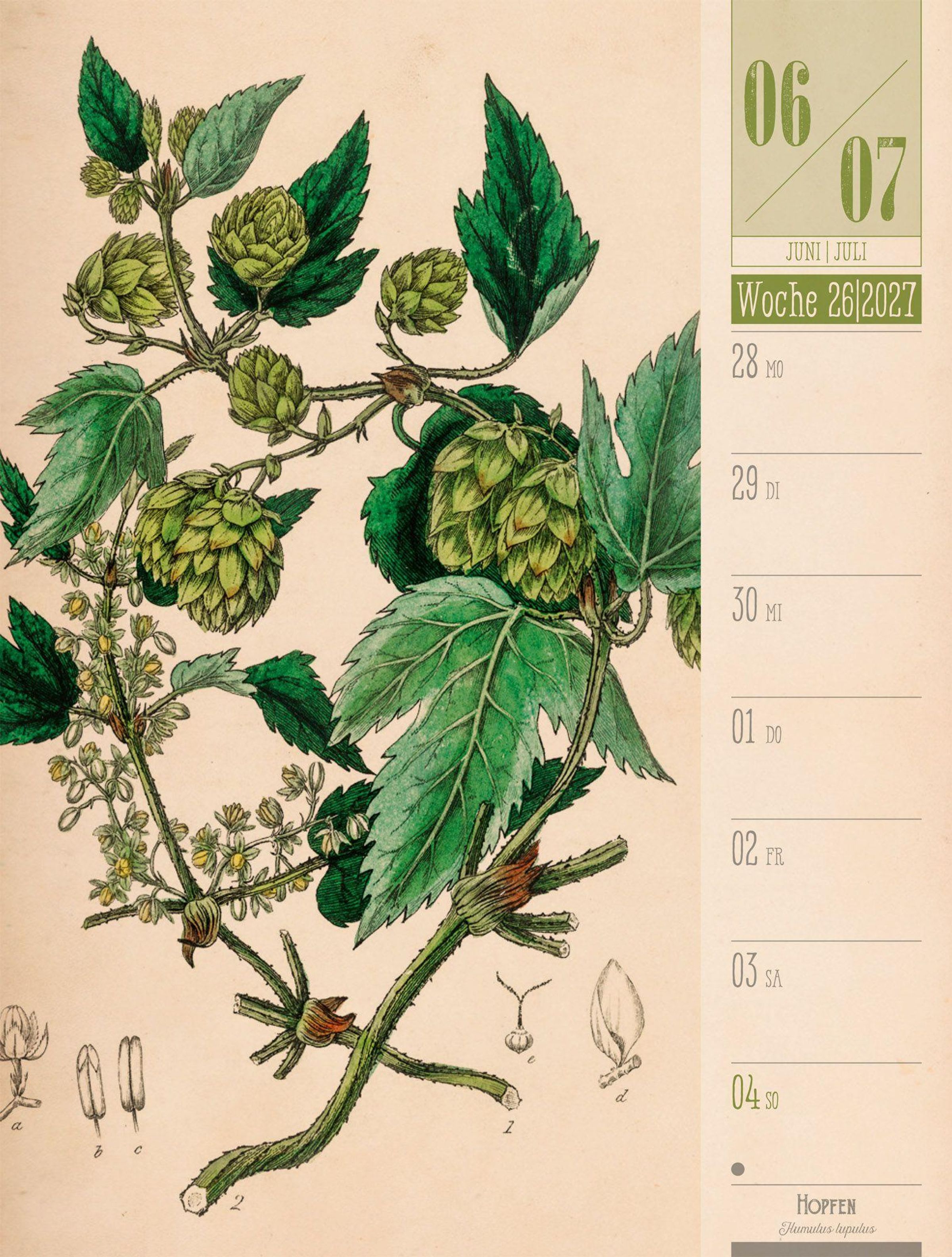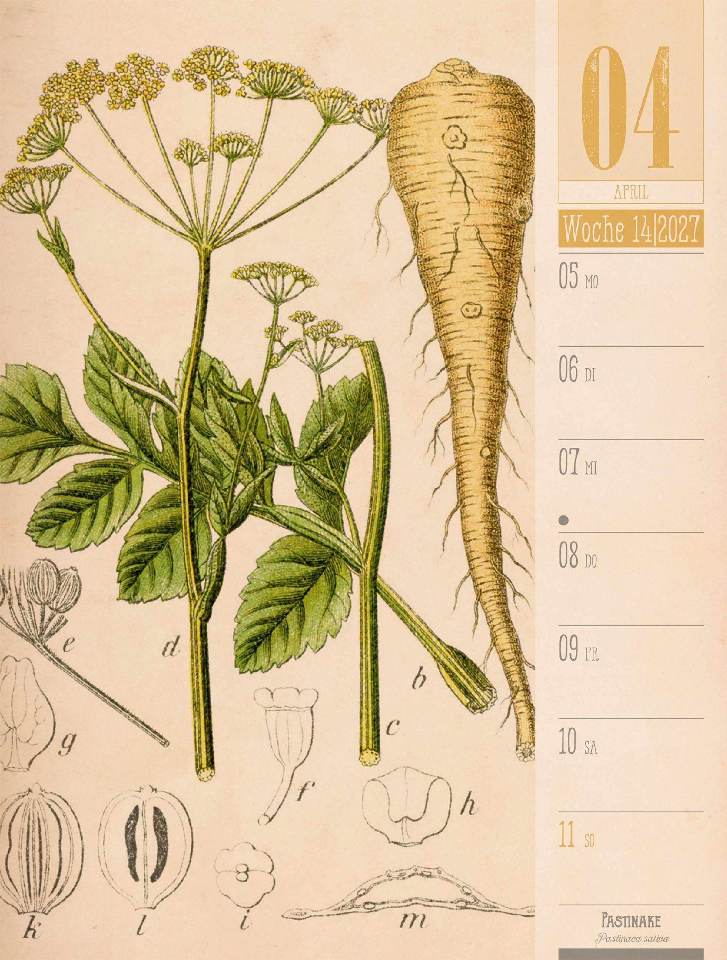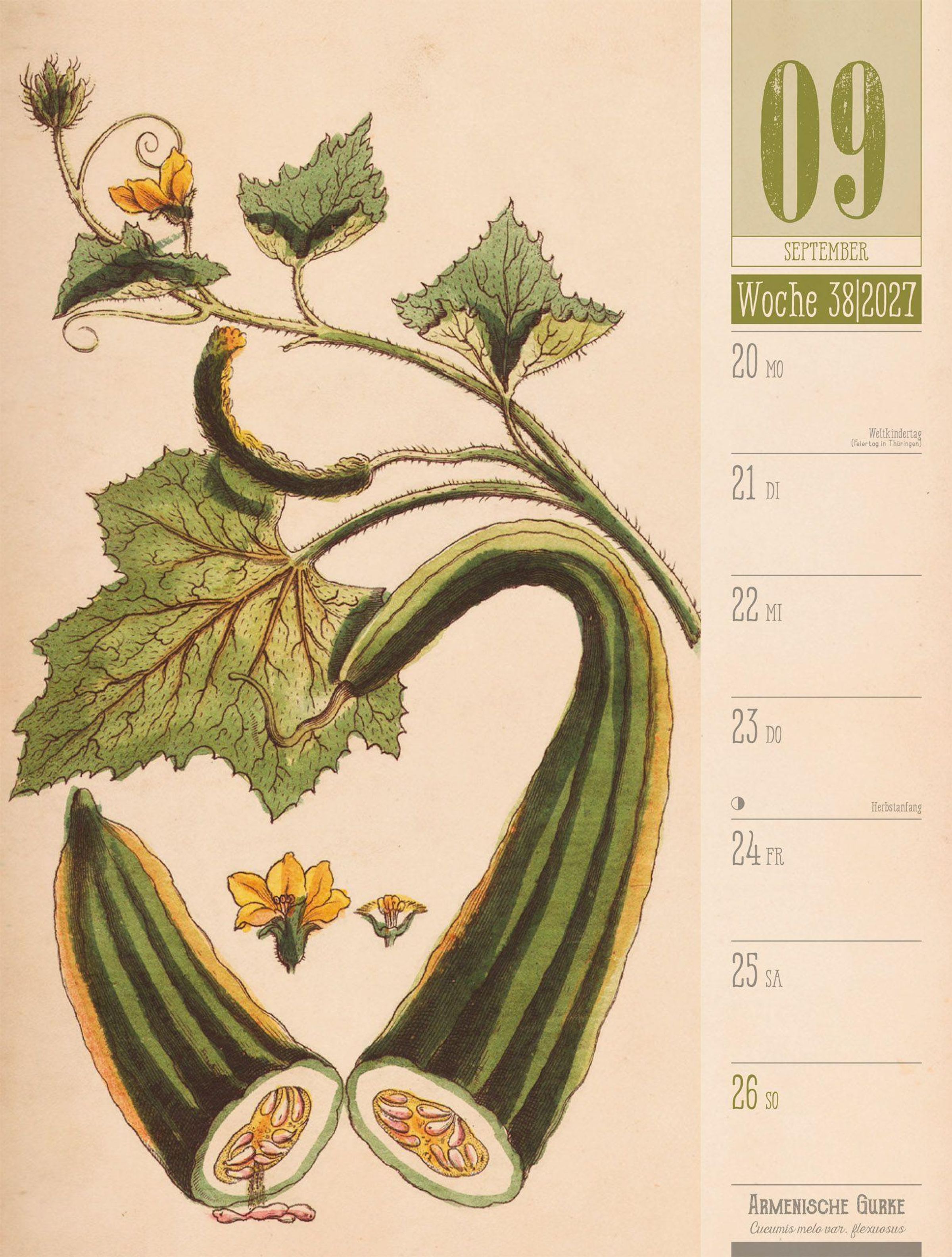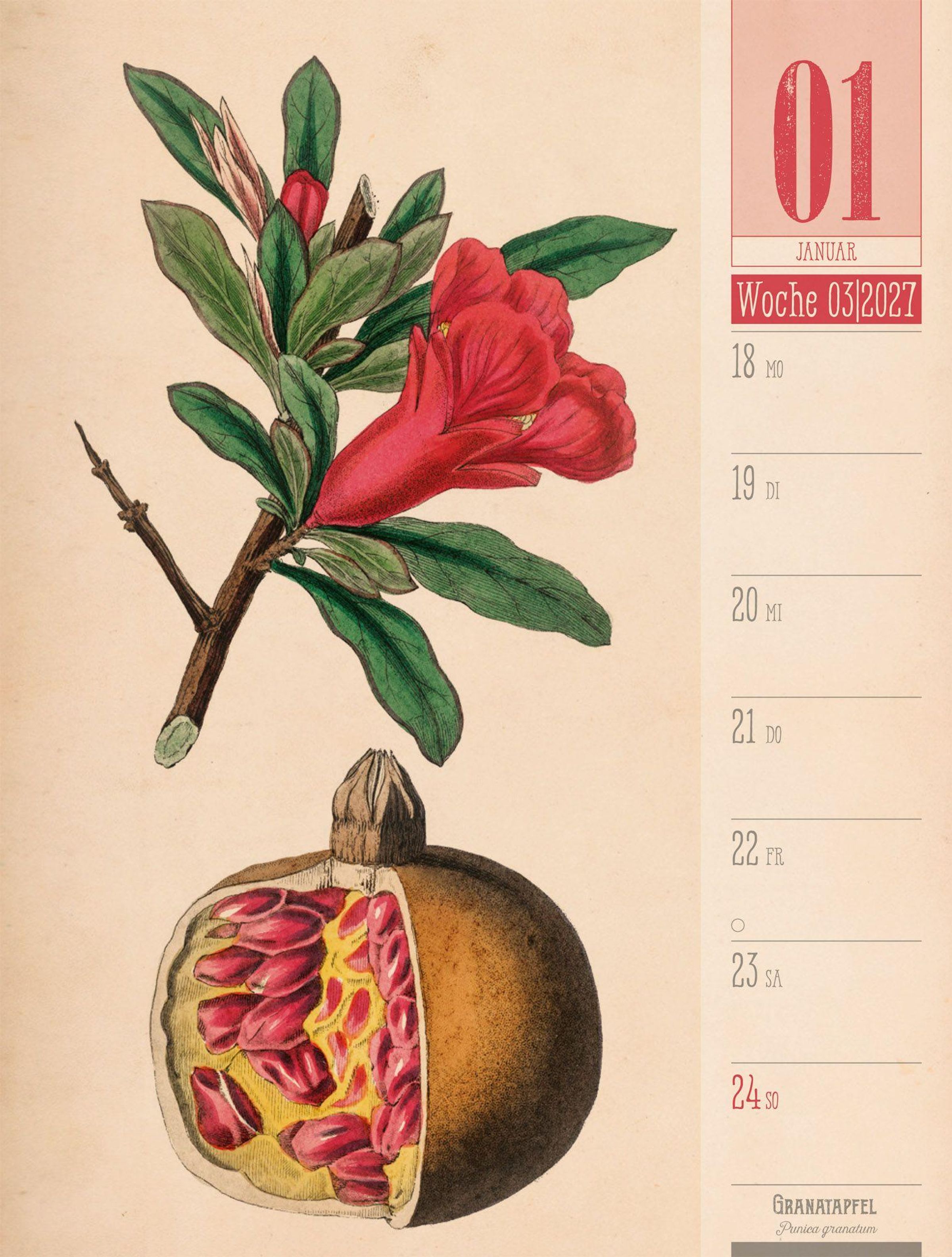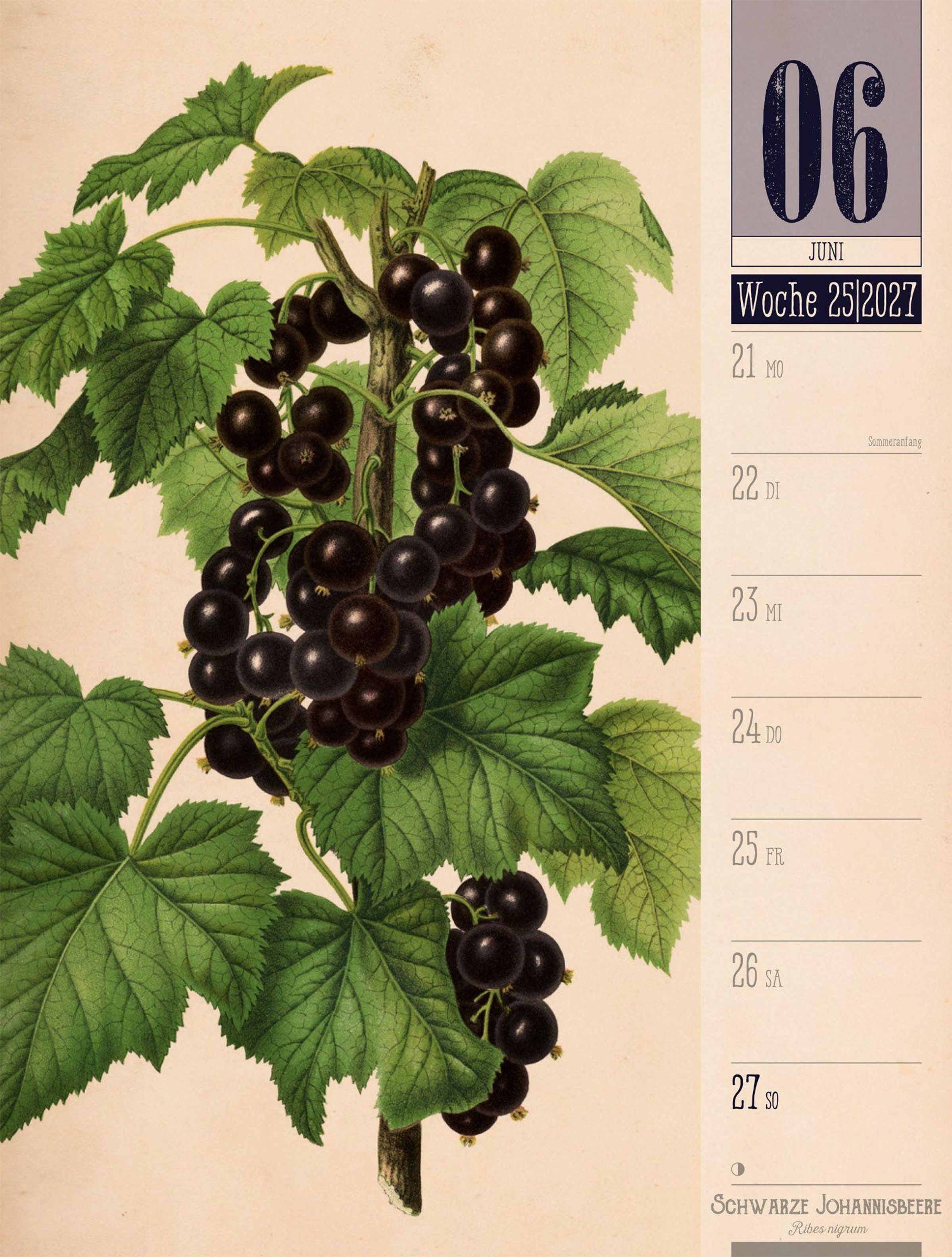 Wochenkalender mit 53 nostalgischen Illustrationen von Pflanzen, Kräutern und Früchten im Vintage-Look