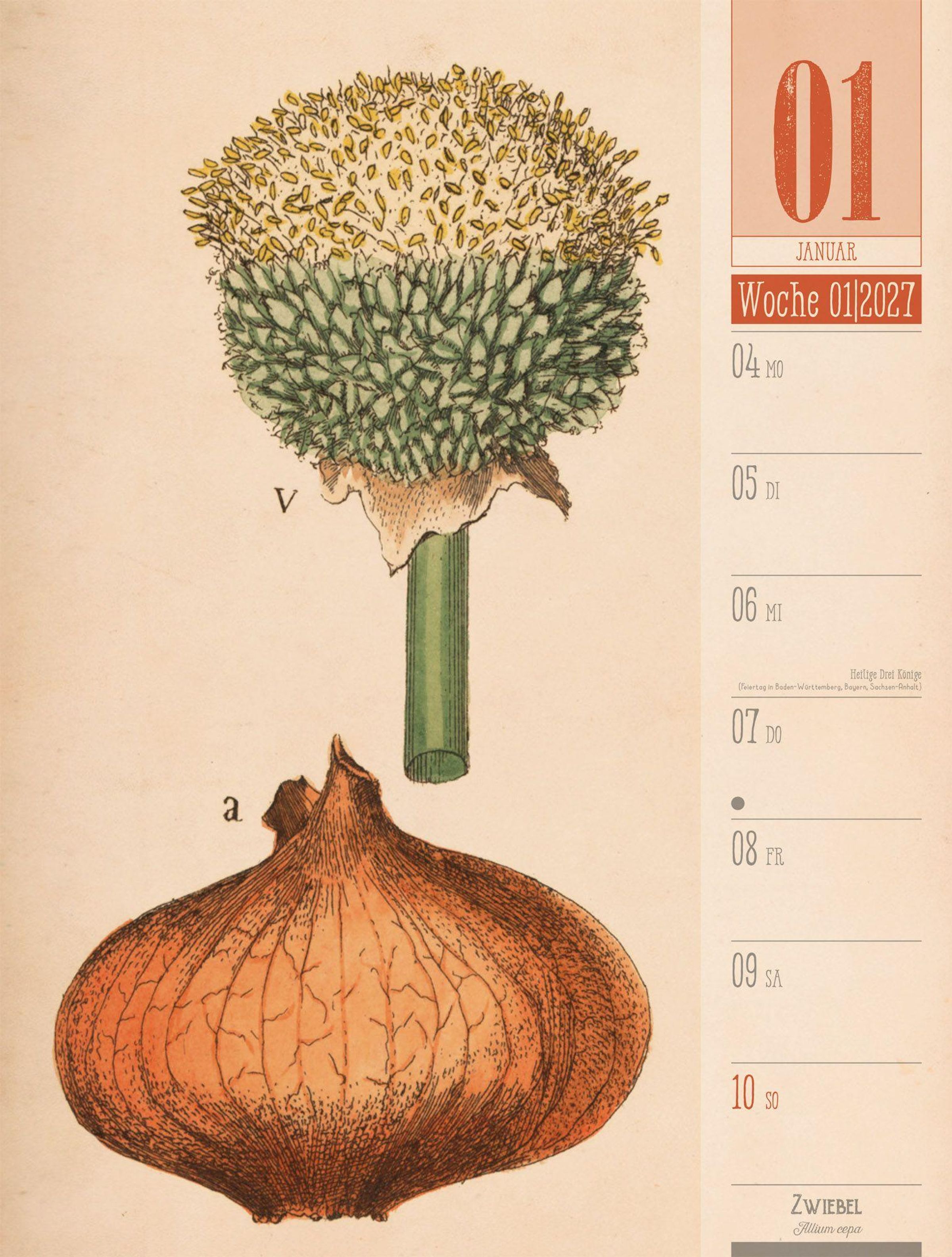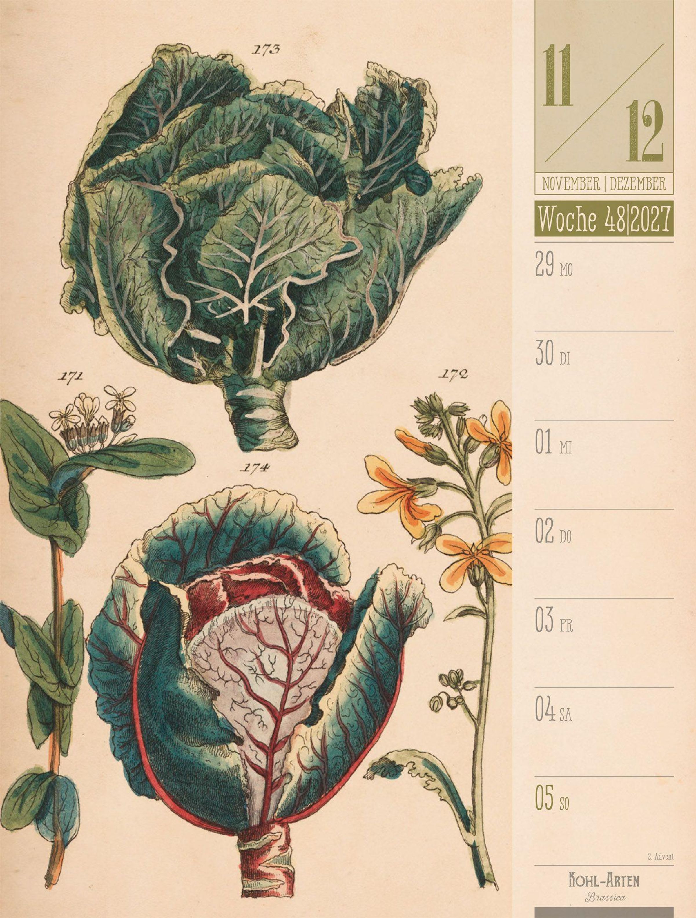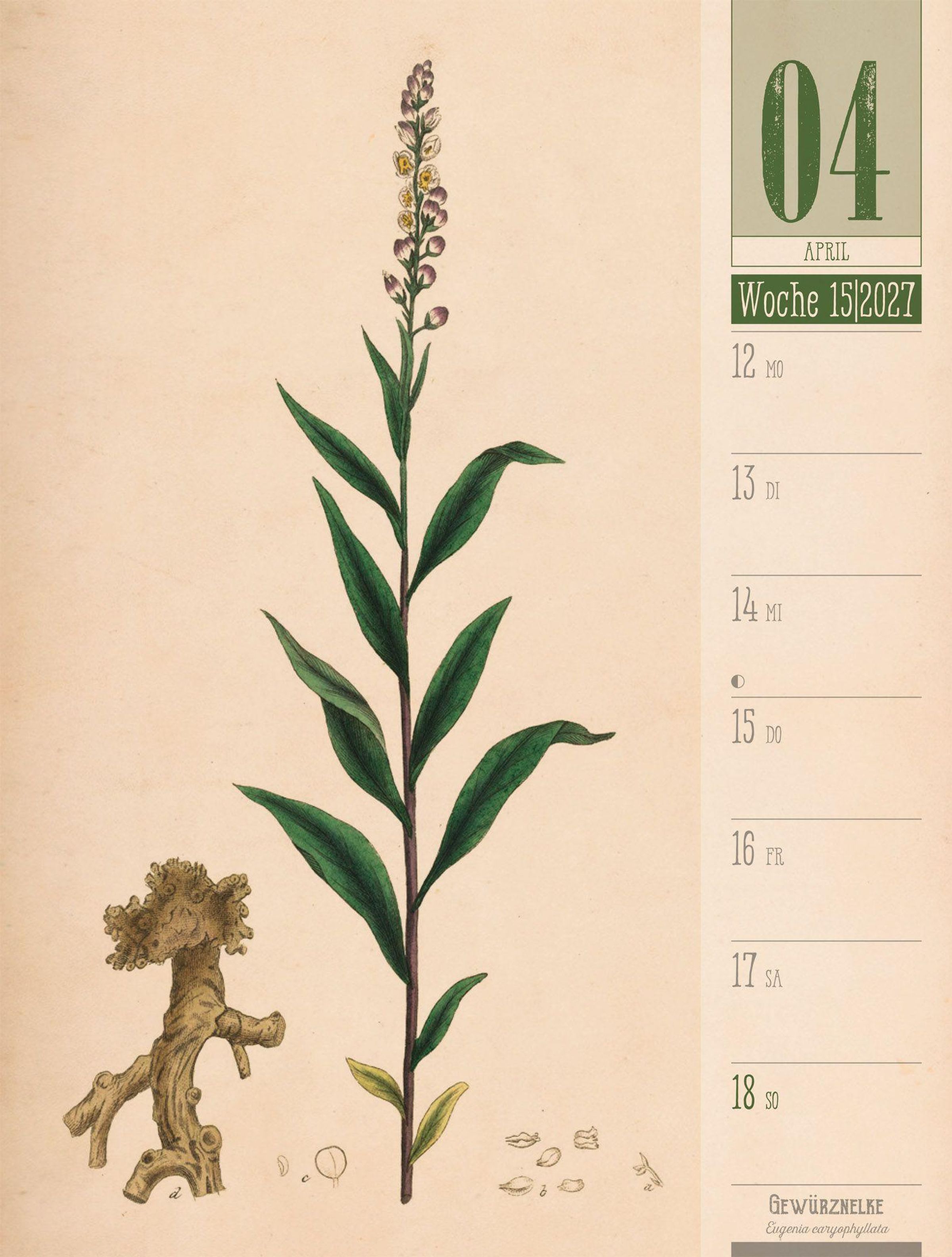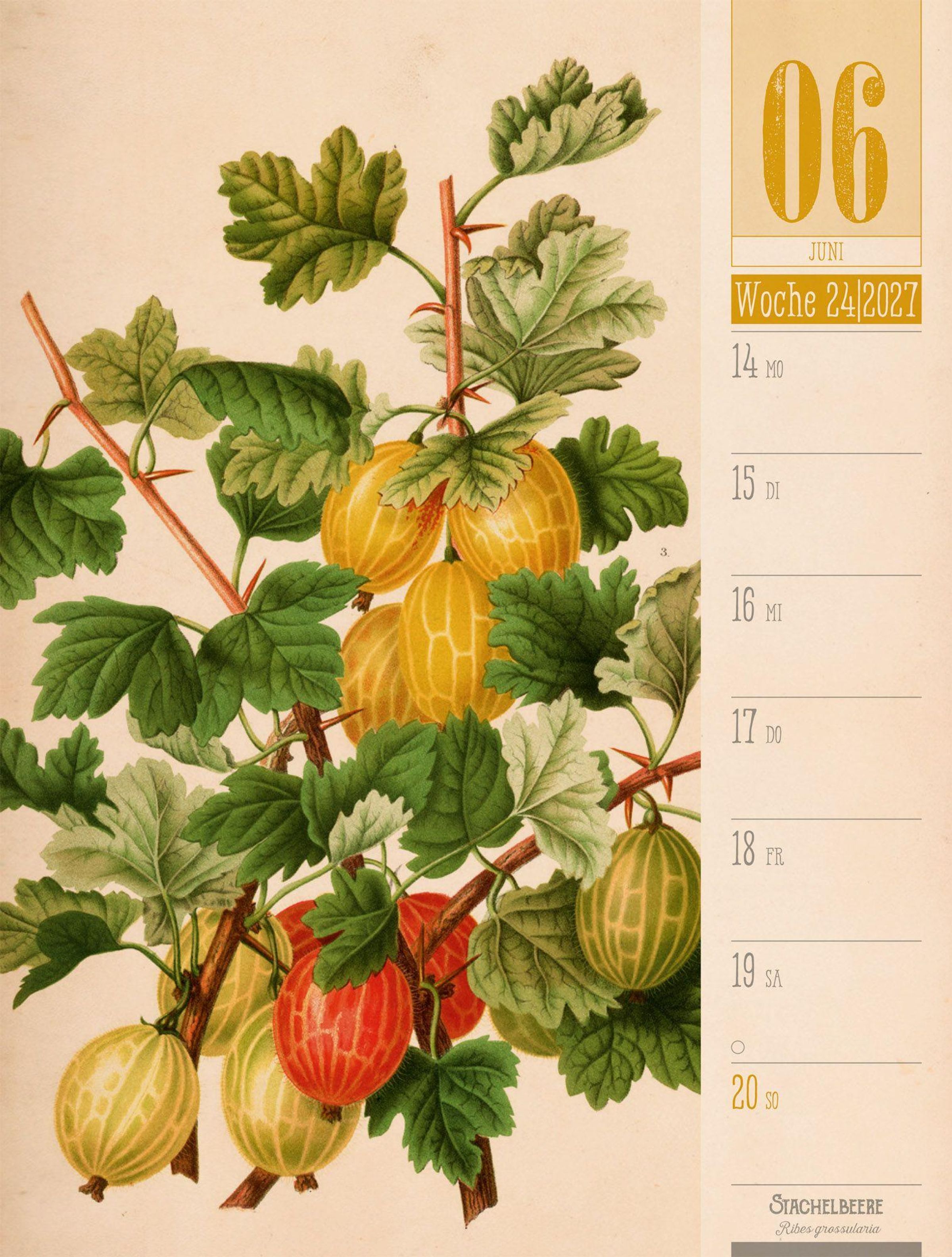 Wochenkalender mit 53 nostalgischen Illustrationen von Pflanzen, Kräutern und Früchten im Vintage-Look