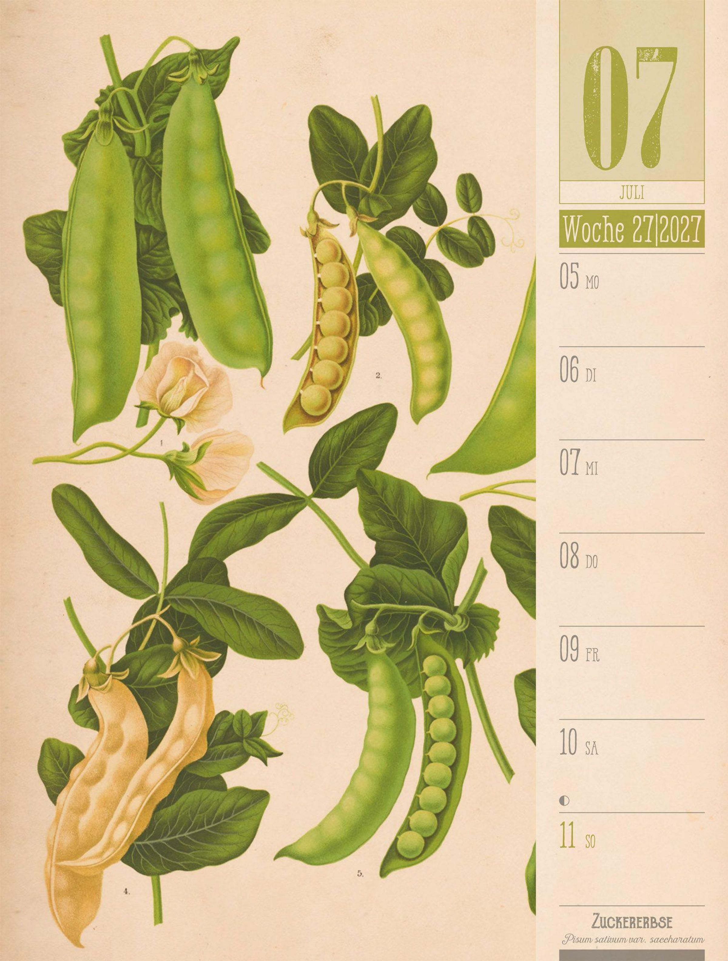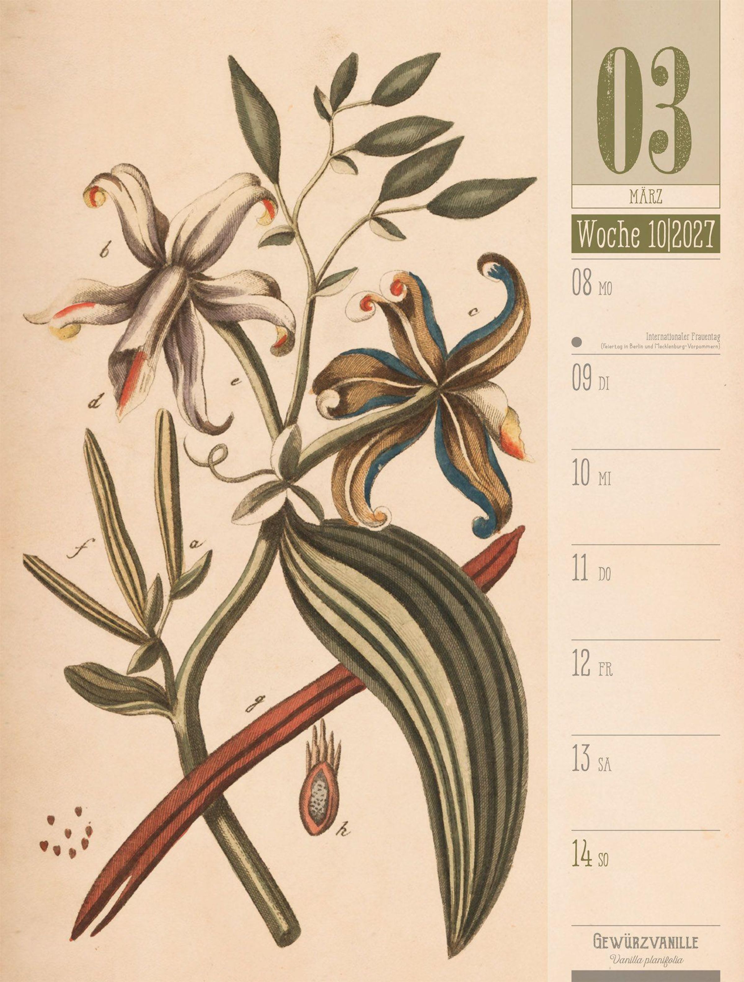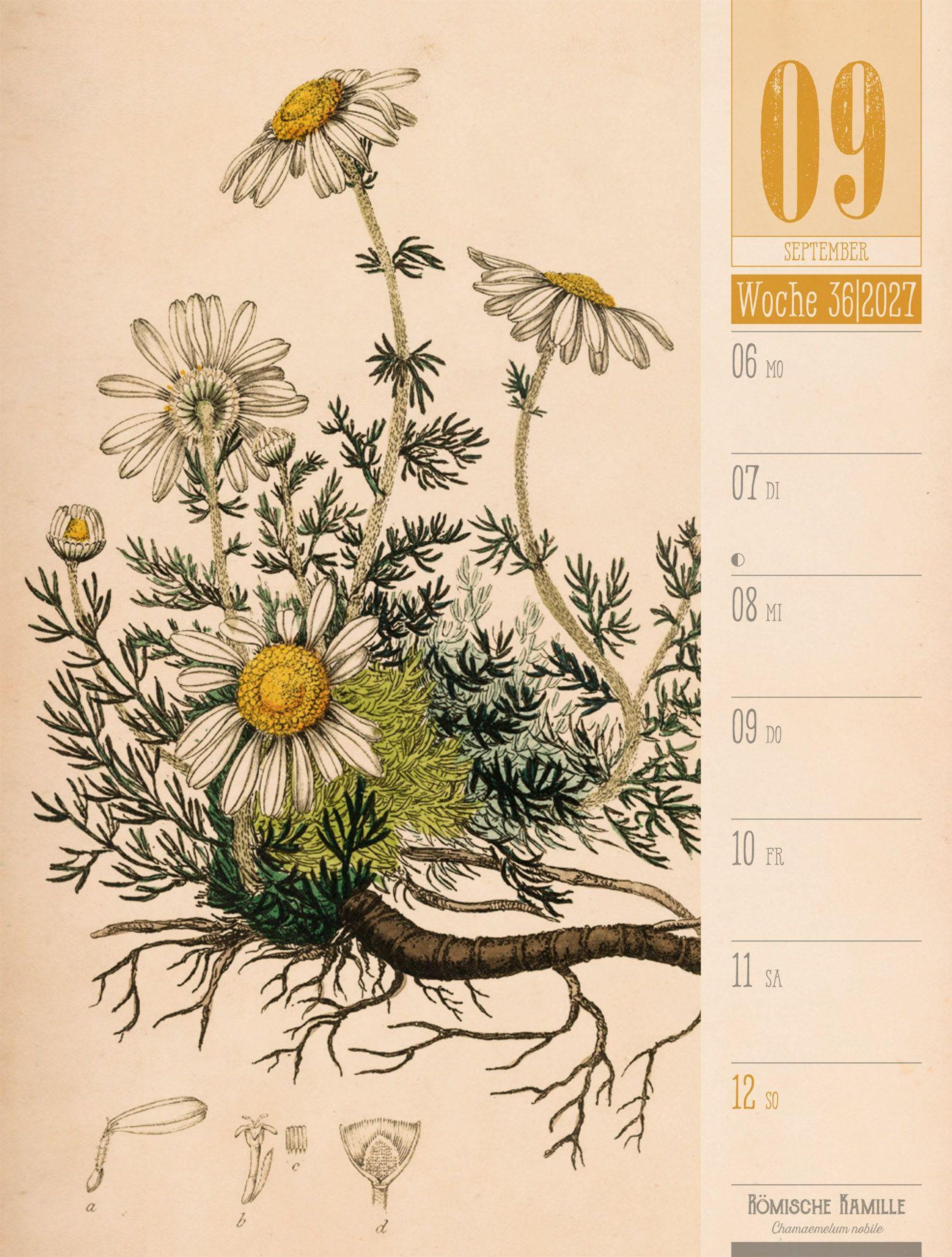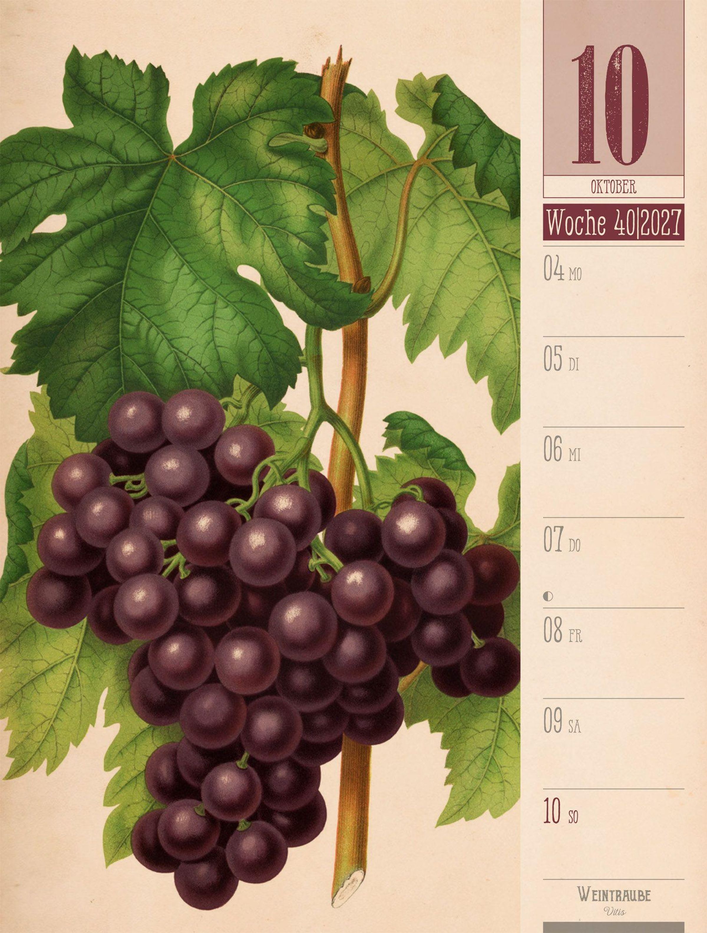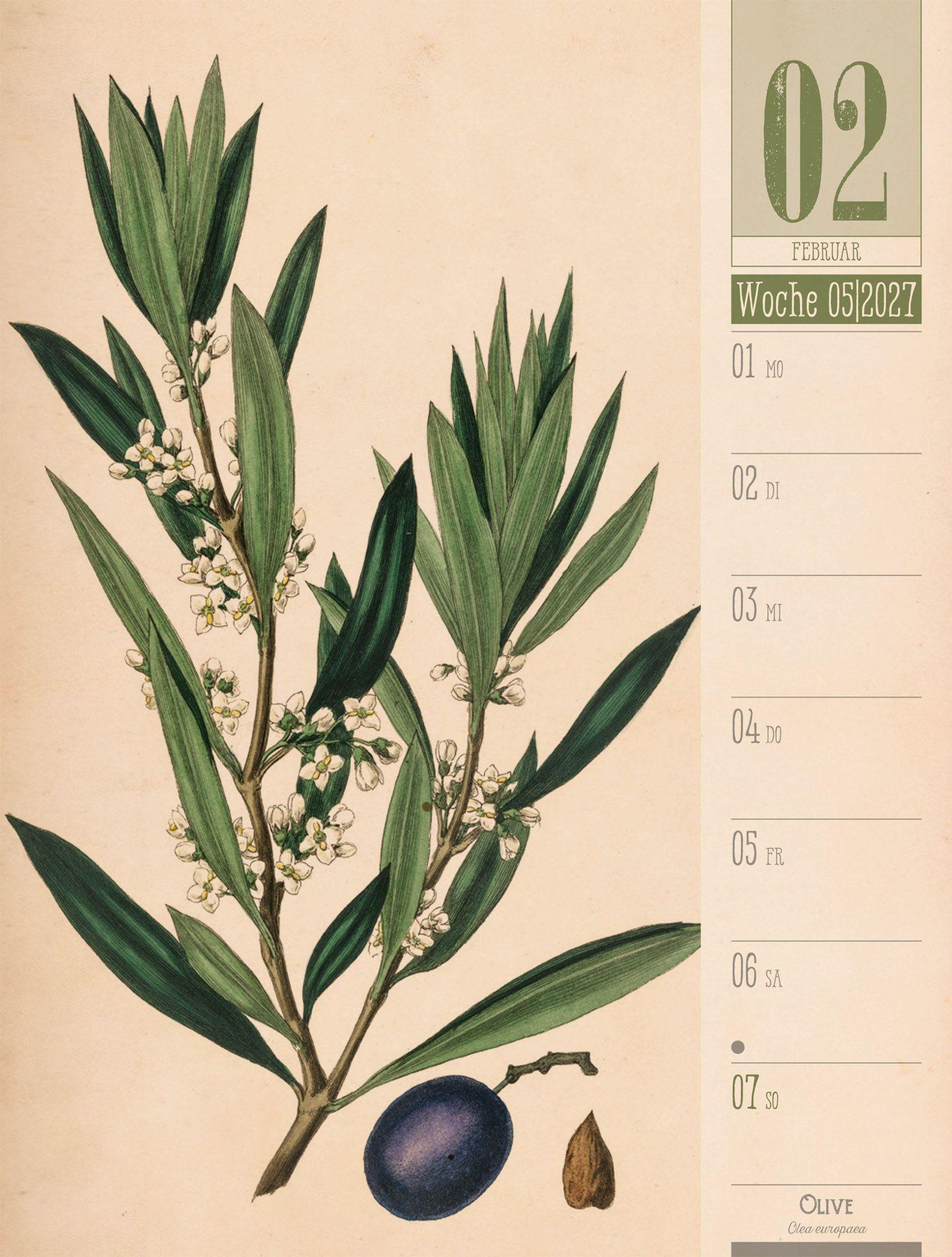 Wochenkalender mit 53 nostalgischen Illustrationen von Pflanzen, Kräutern und Früchten im Vintage-Look