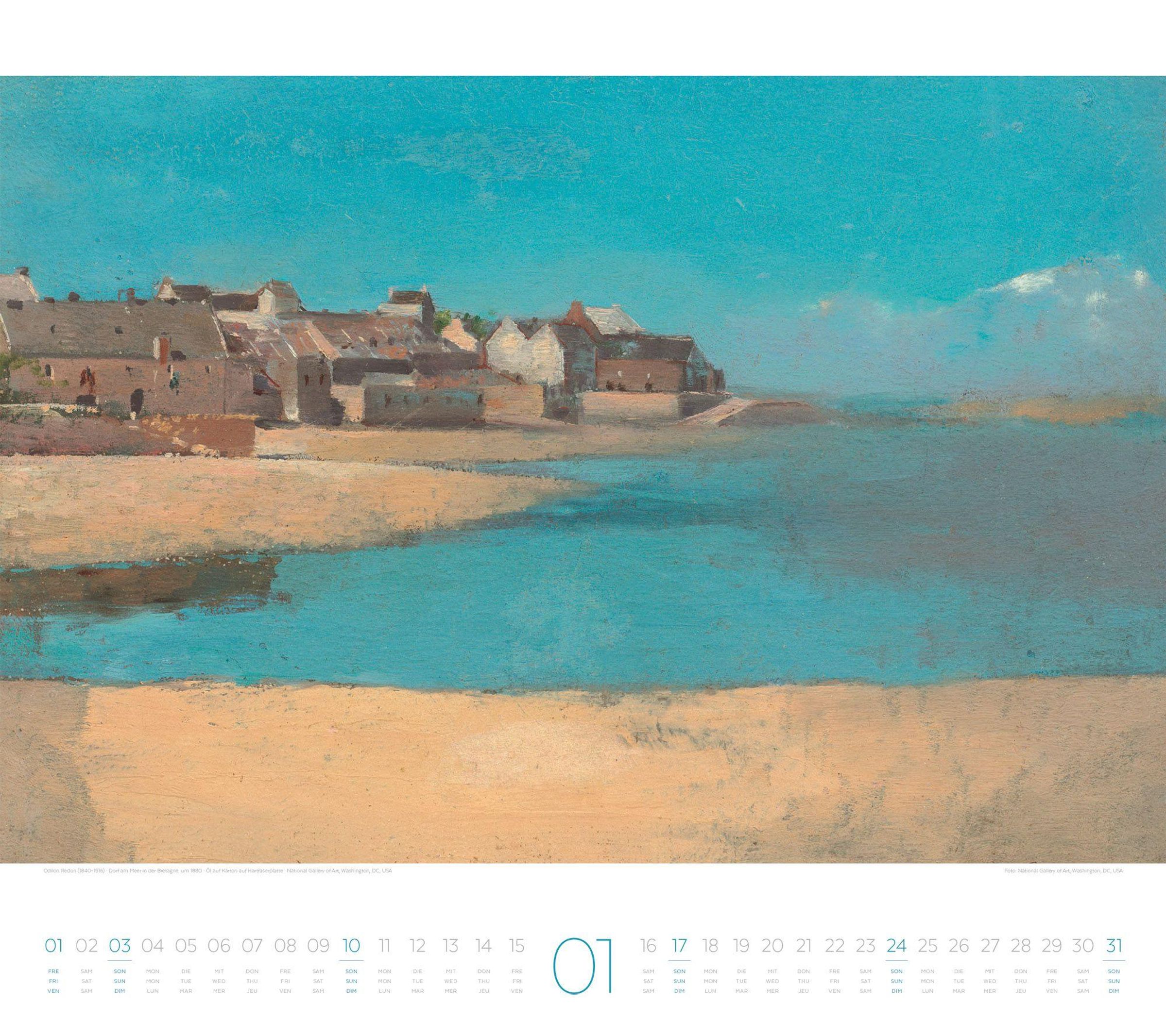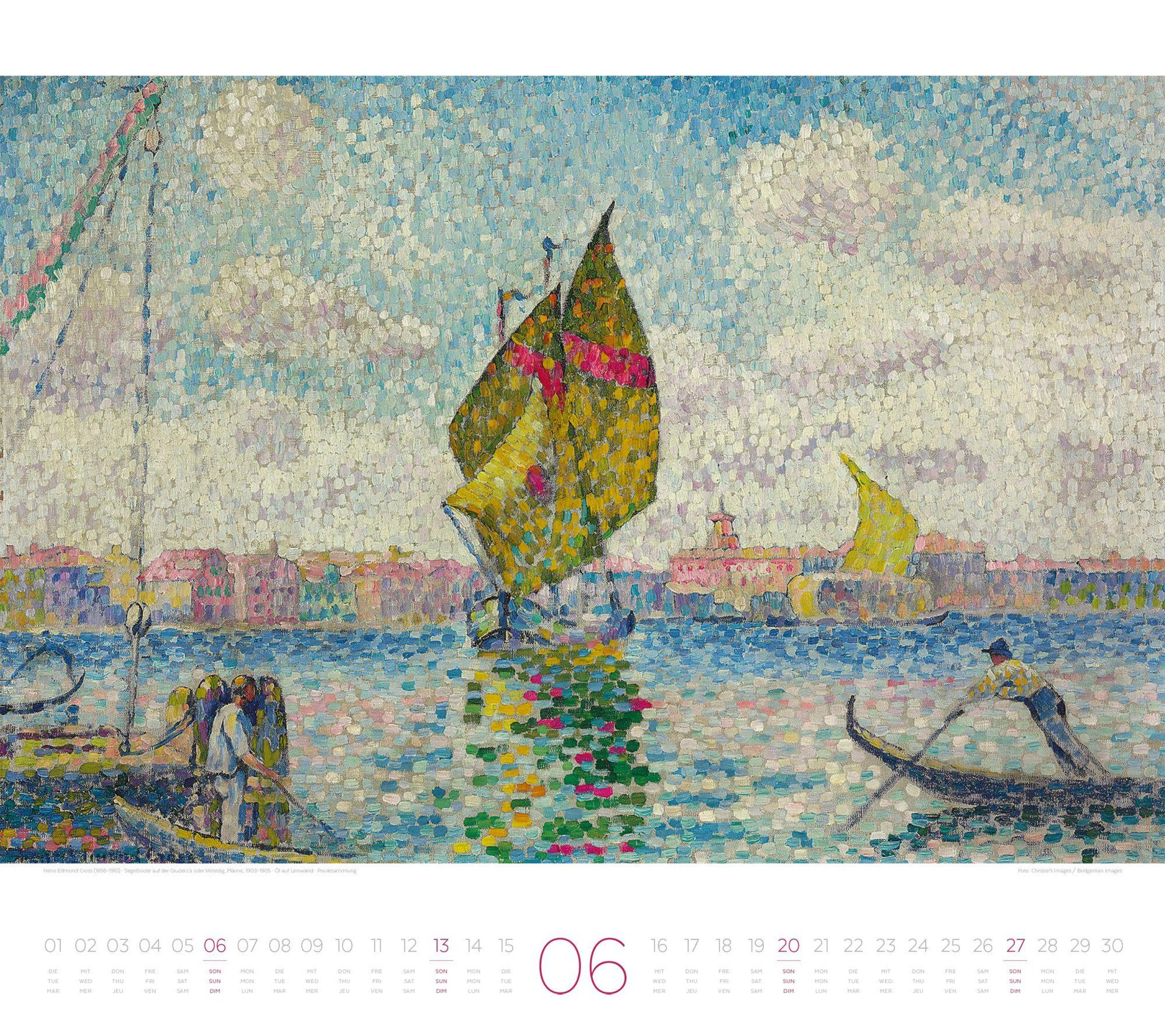 Gönnen Sie Ihren Augen mit dieser ungewöhnlichen Kunstsammlung ein Jahr lang tiefe Entspannung. Mit einer harmonischen Selektion von Kunstwerken des Impressionismus bringen wir Leichtigkeit und sanfte Farben an Ihre Wand. Ein Kalender voller Ruhe - und eine kleine Ausstellung, die den Herren Monet, Pissarro, Caillebotte, Turner & Co. bestimmt gefallen hätte.