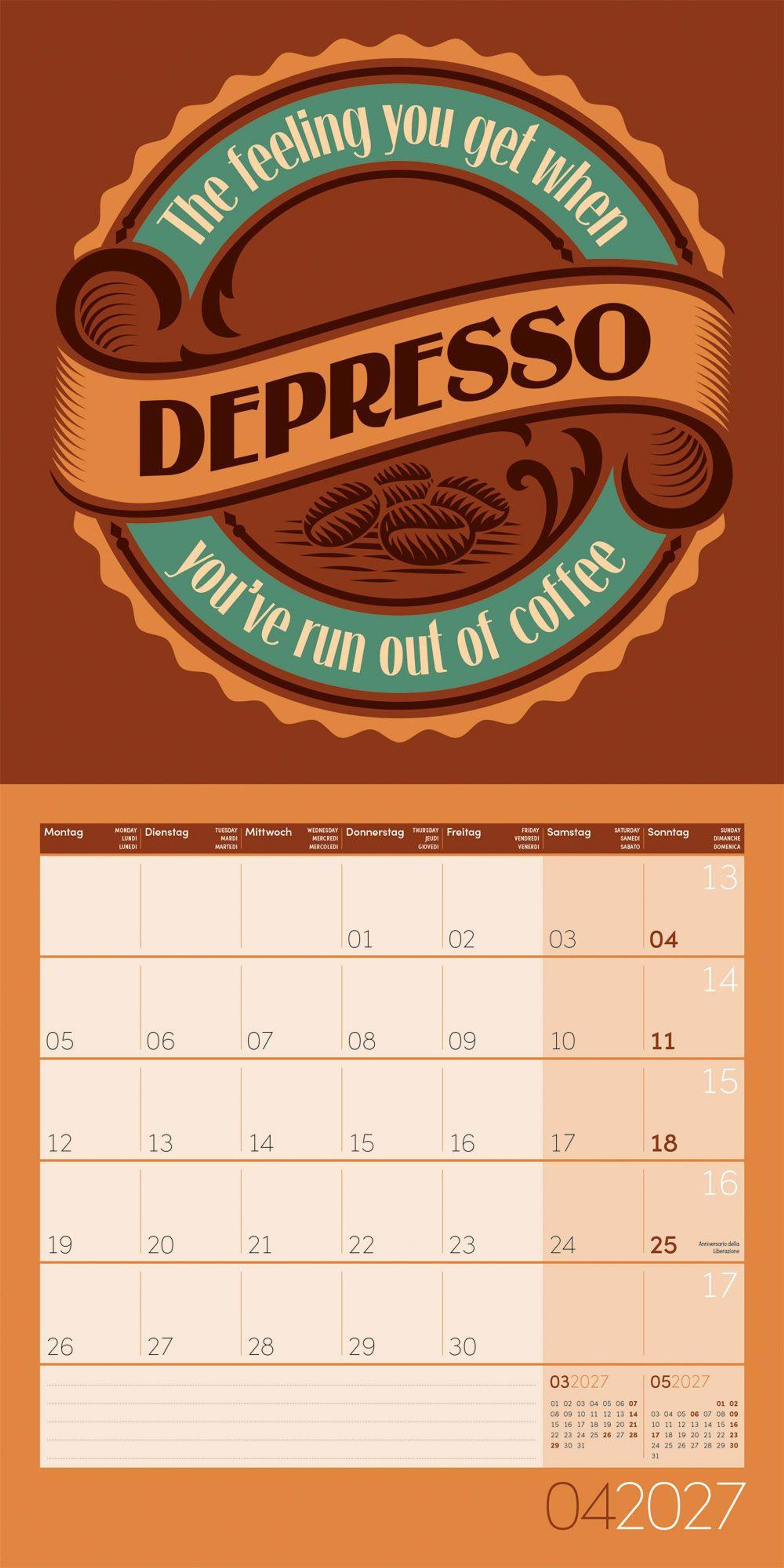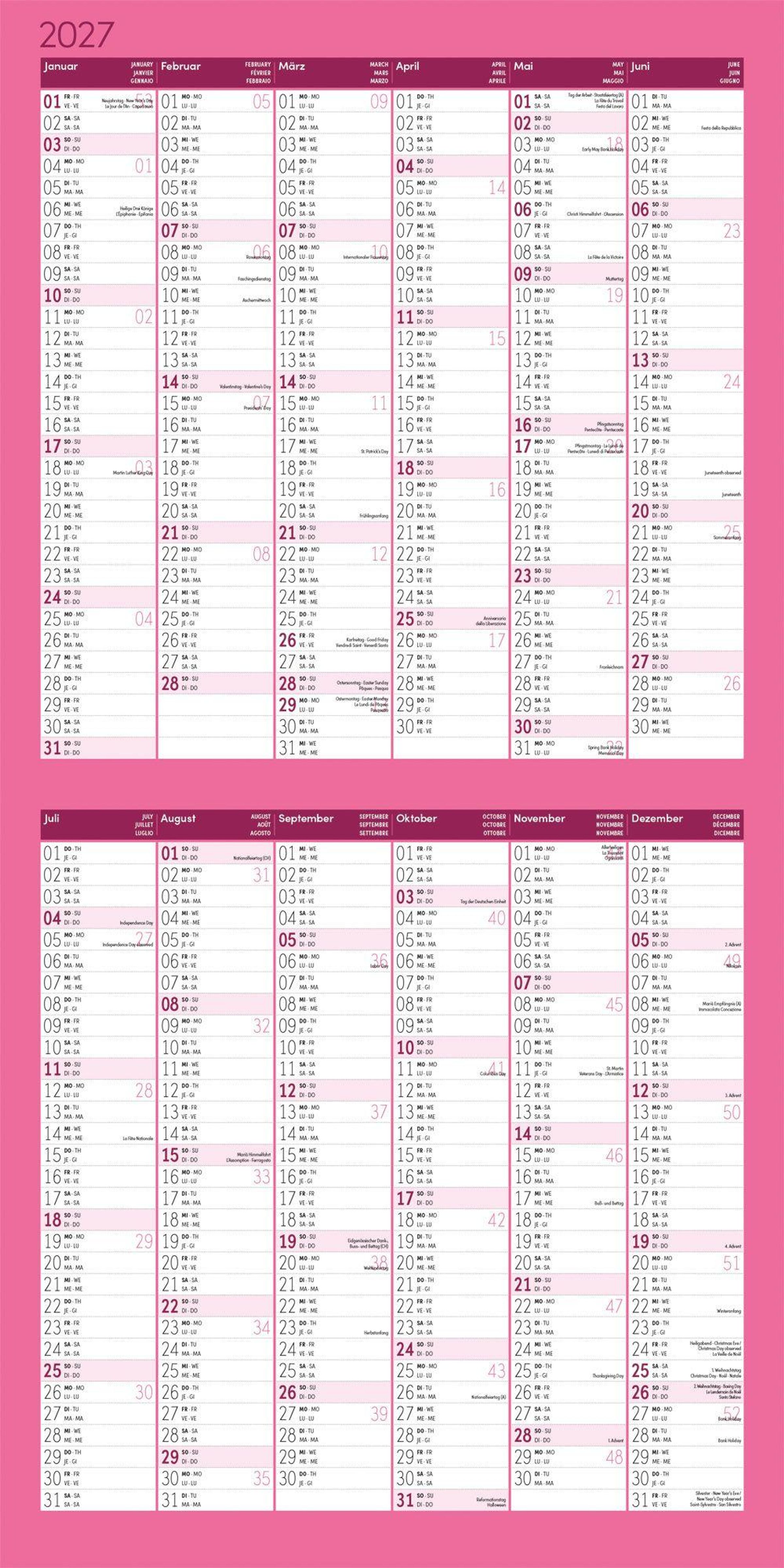 4-sprachiges Kalendarium: Deutsch, Englisch, Französisch, Italienisch