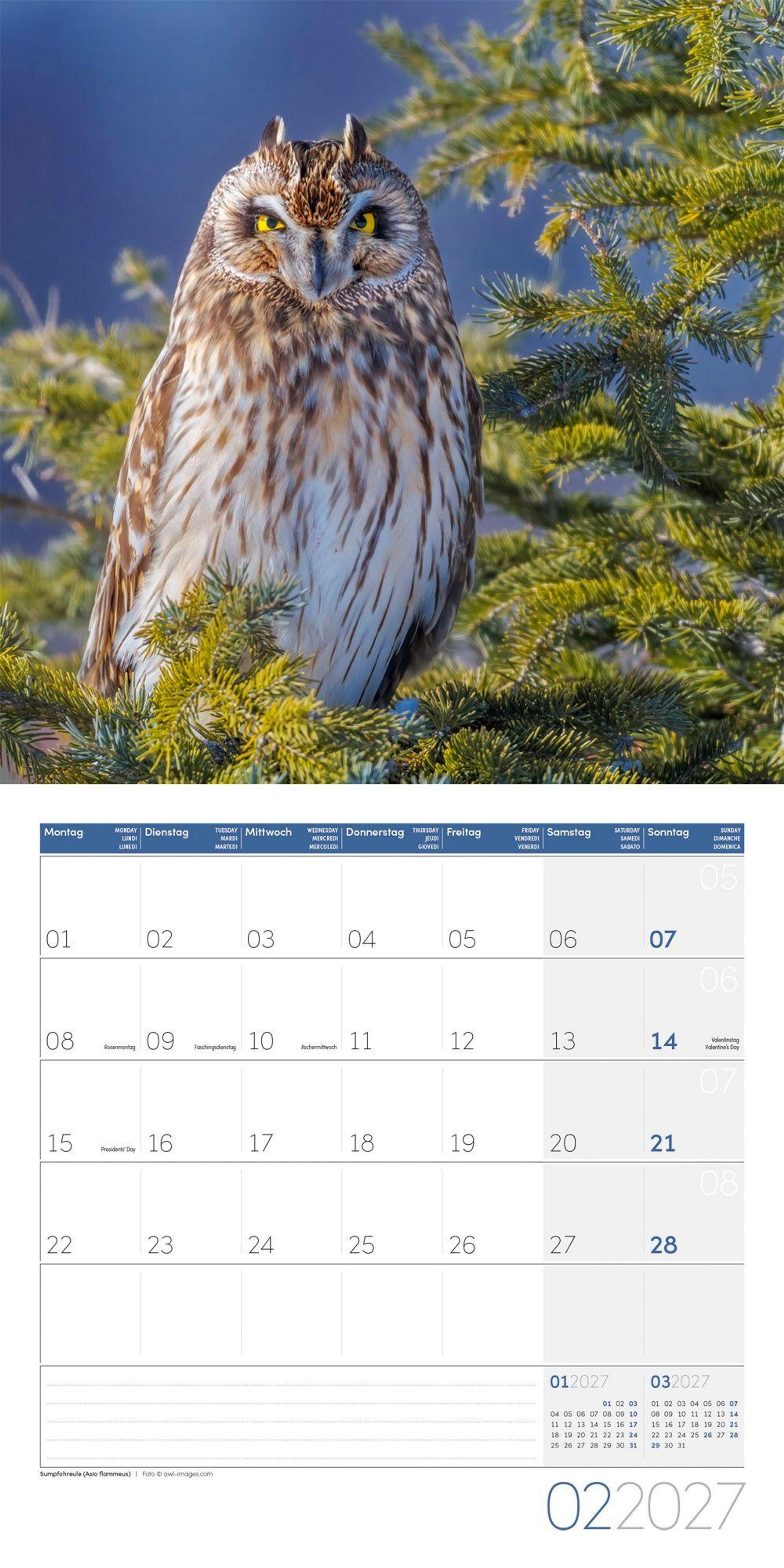 Im Landeanflug, mit wachsamen Augen oder als flauschige Federknäuel auf einem Ast sitzend - Eulen sind geheimnisvolle Waldtiere, die eine genauere Betrachtung verdient haben. Genießen Sie detailreiche Fotos der Vögel, festgehalten von namhaften Wildlife-Fotograf: innen. Alle Art12-Kalender sind mit einem Jahresplaner ausgestattet.