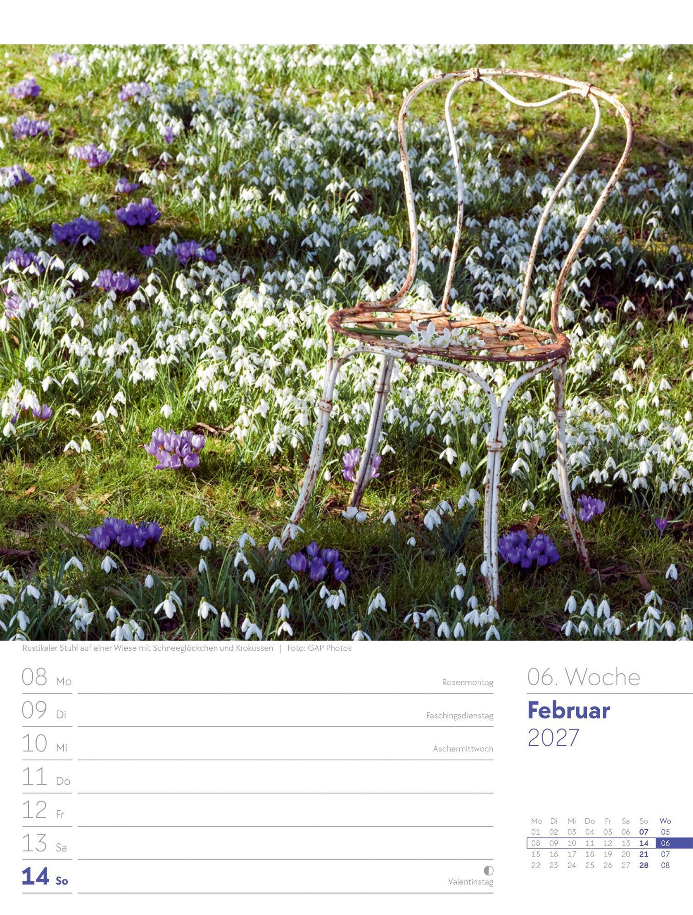 Wochenkalender mit 53 opulenten Gartenbildern, abgestimmt auf die Jahreszeiten