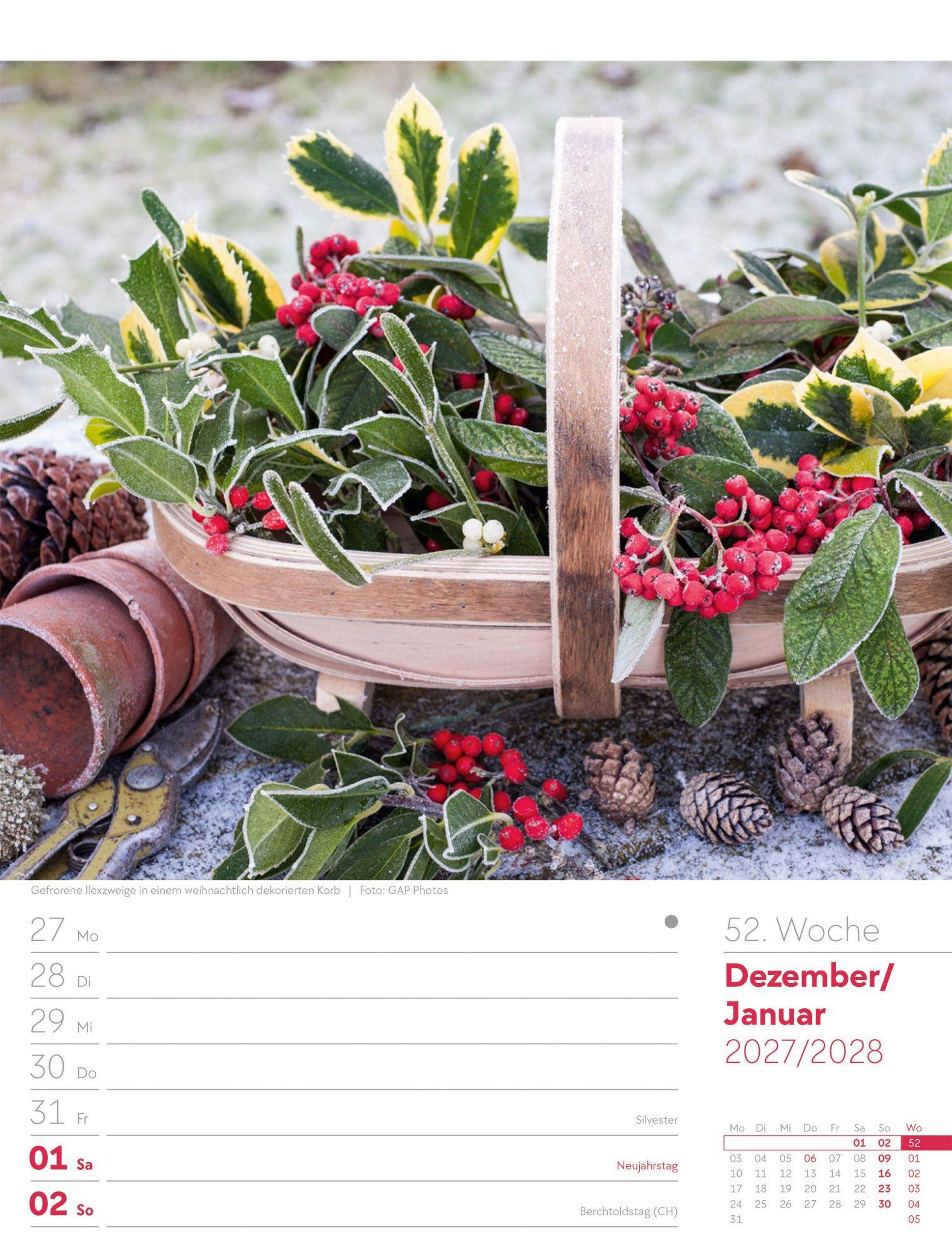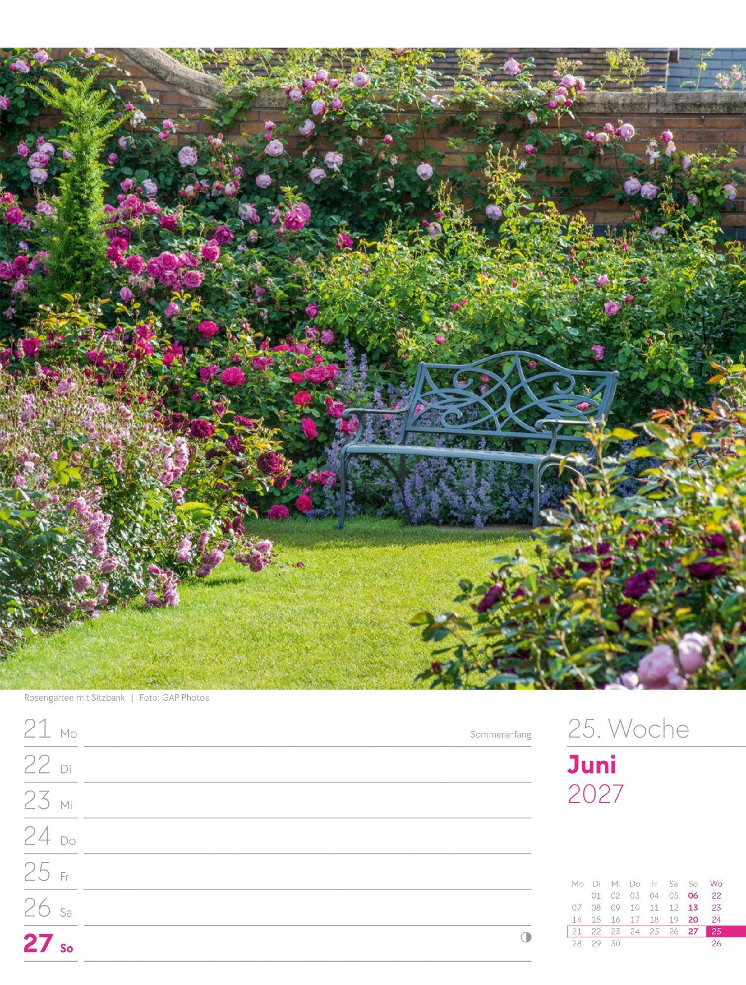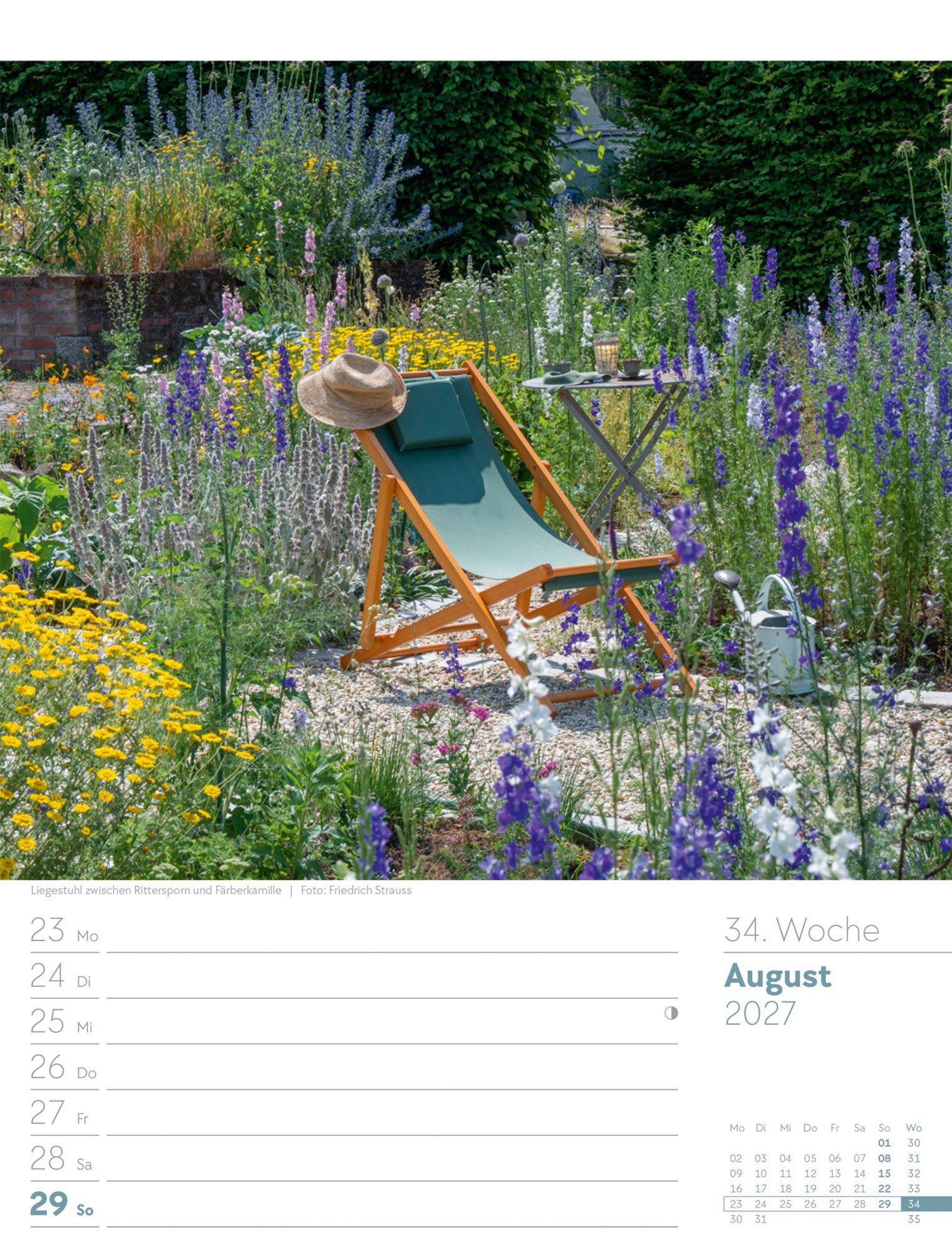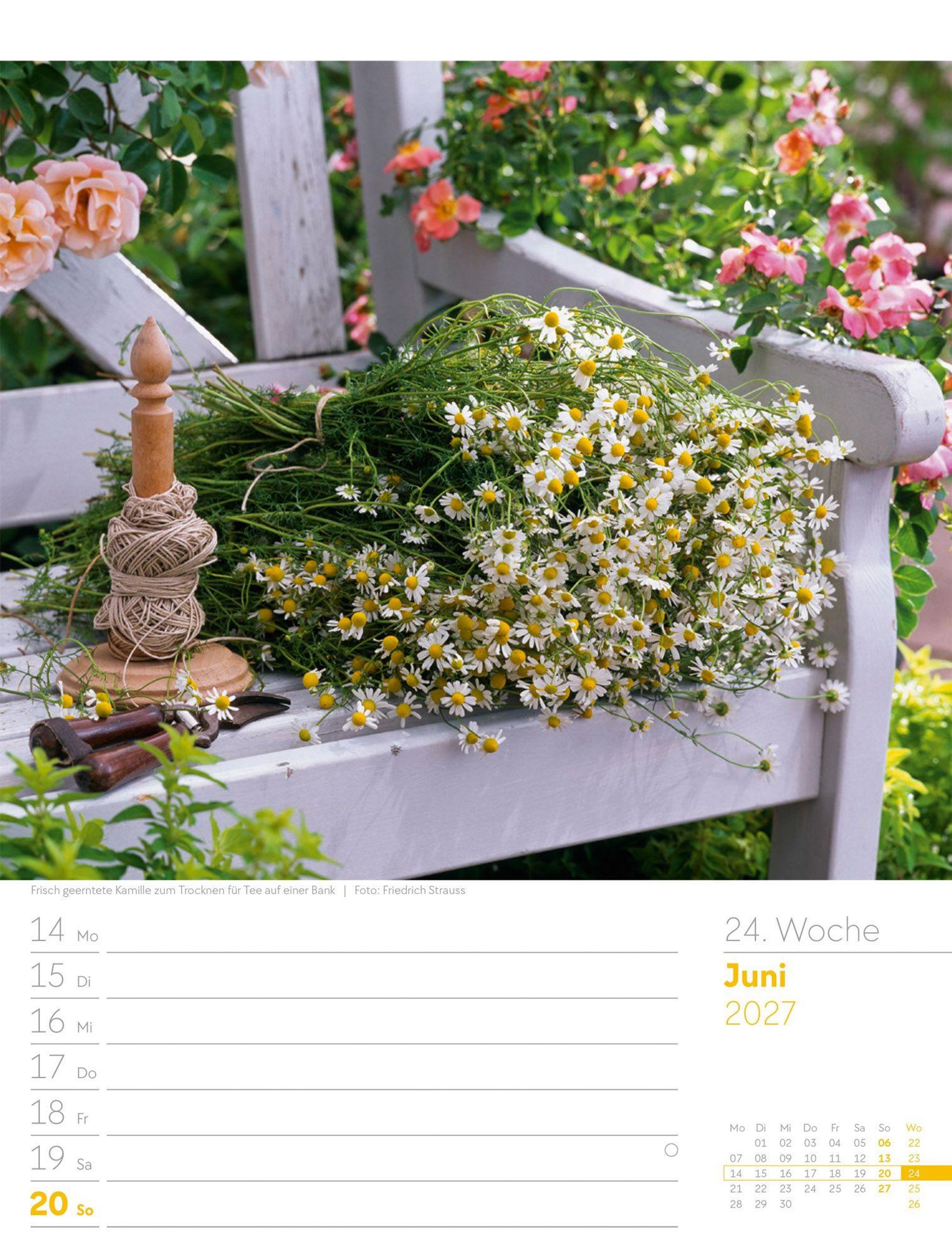 "Einer der schönsten Wege zu uns selbst führt durch einen Garten." Wenn Sie dieser Aussage zustimmen und selbst Ruhe und Ausgeglichenheit beim Blick auf Grünes und Blühendes finden, wird Ihnen dieser Wochenkalender tagtäglich Freude bereiten. Blumen- und Gartenspezialist: innen wie Friedrich Strauß, Marianne Majerus oder Flora Press halten die herrlichsten Gartenparadiese im Bild fest und haben dabei auch die Details im Blick. Übersichtliches Kalendarium mit Platz für Ihre Einträge und dazu jede Woche neuer Rätselspaß: Kreuzworträtsel und Sudokus auf allen Rückseiten.