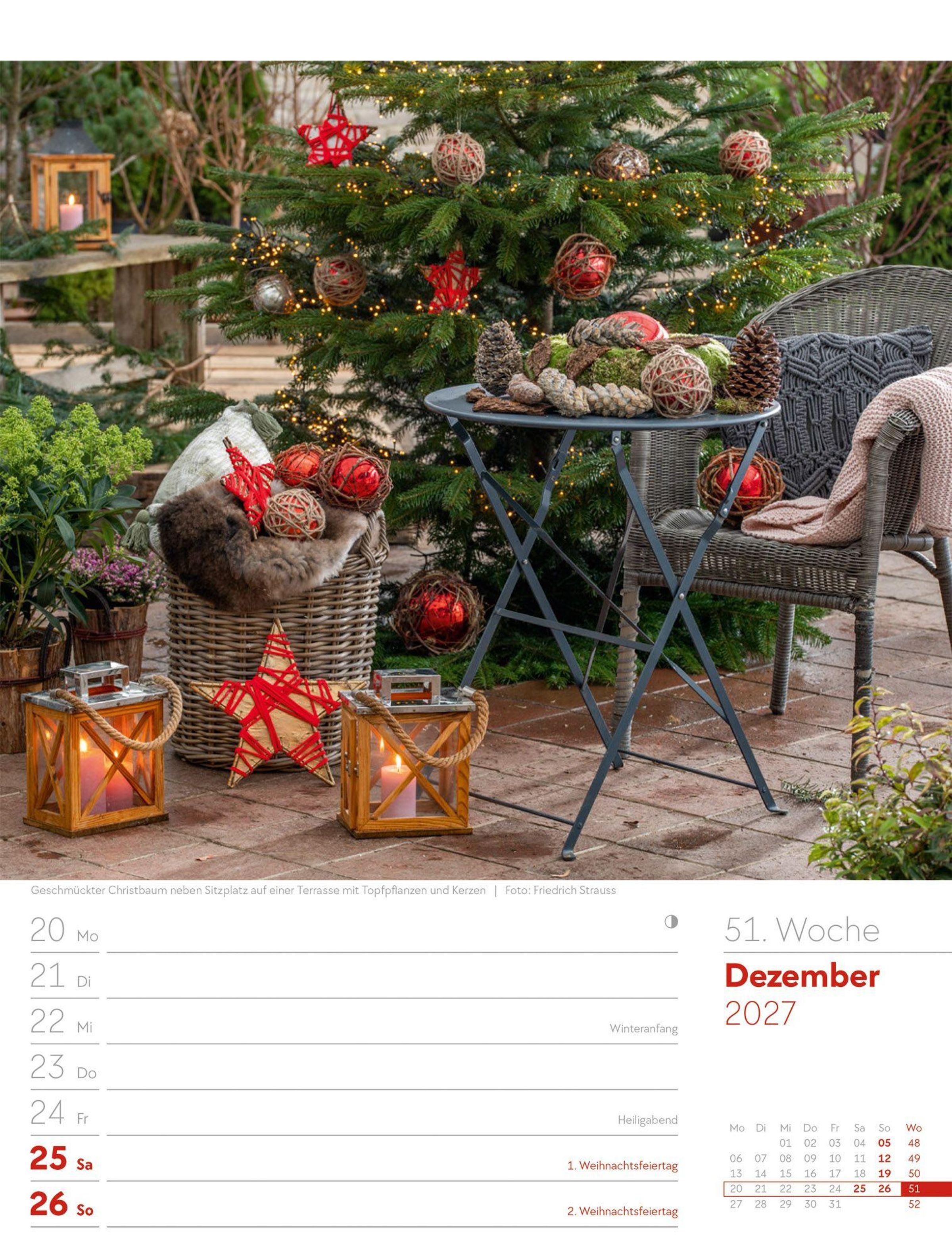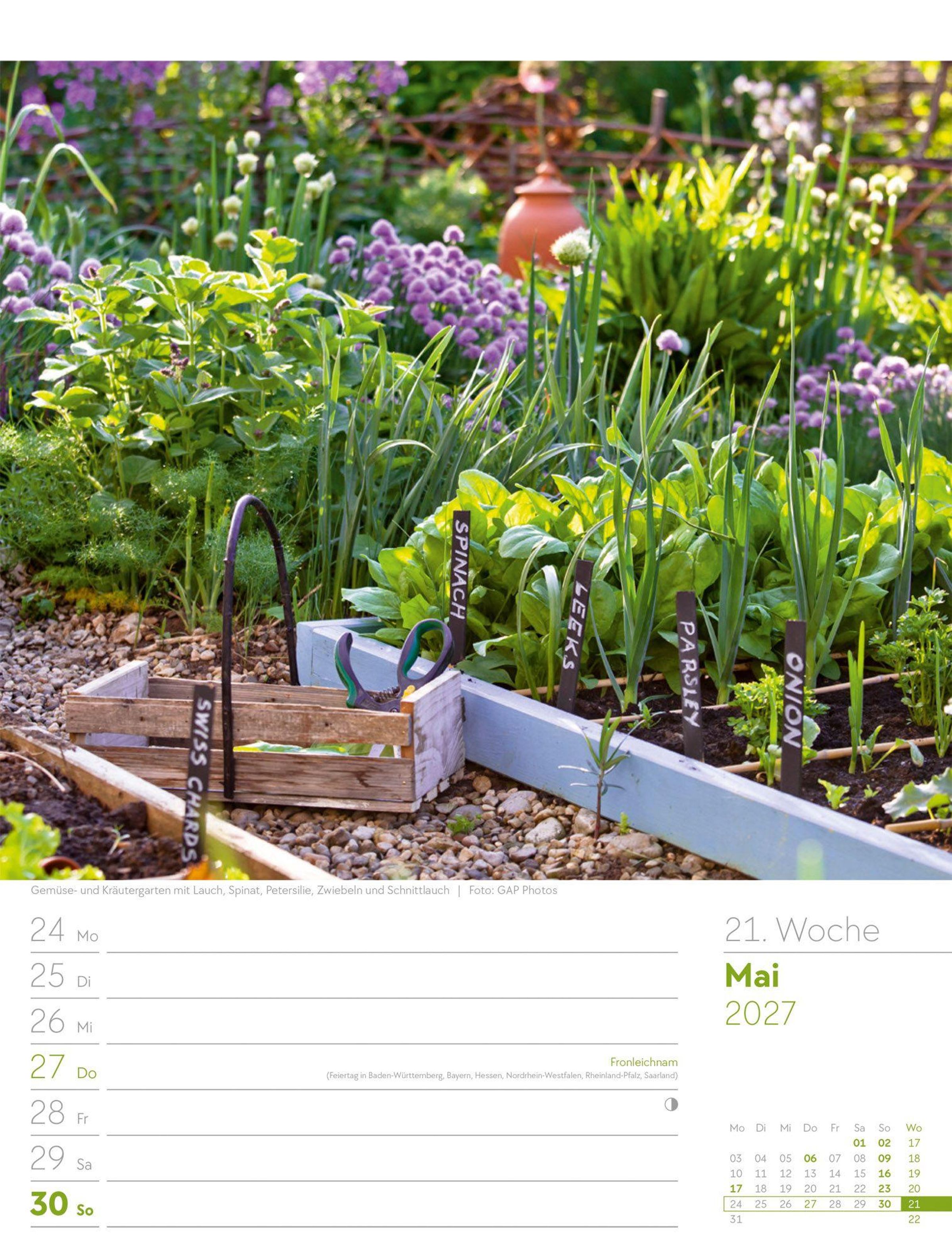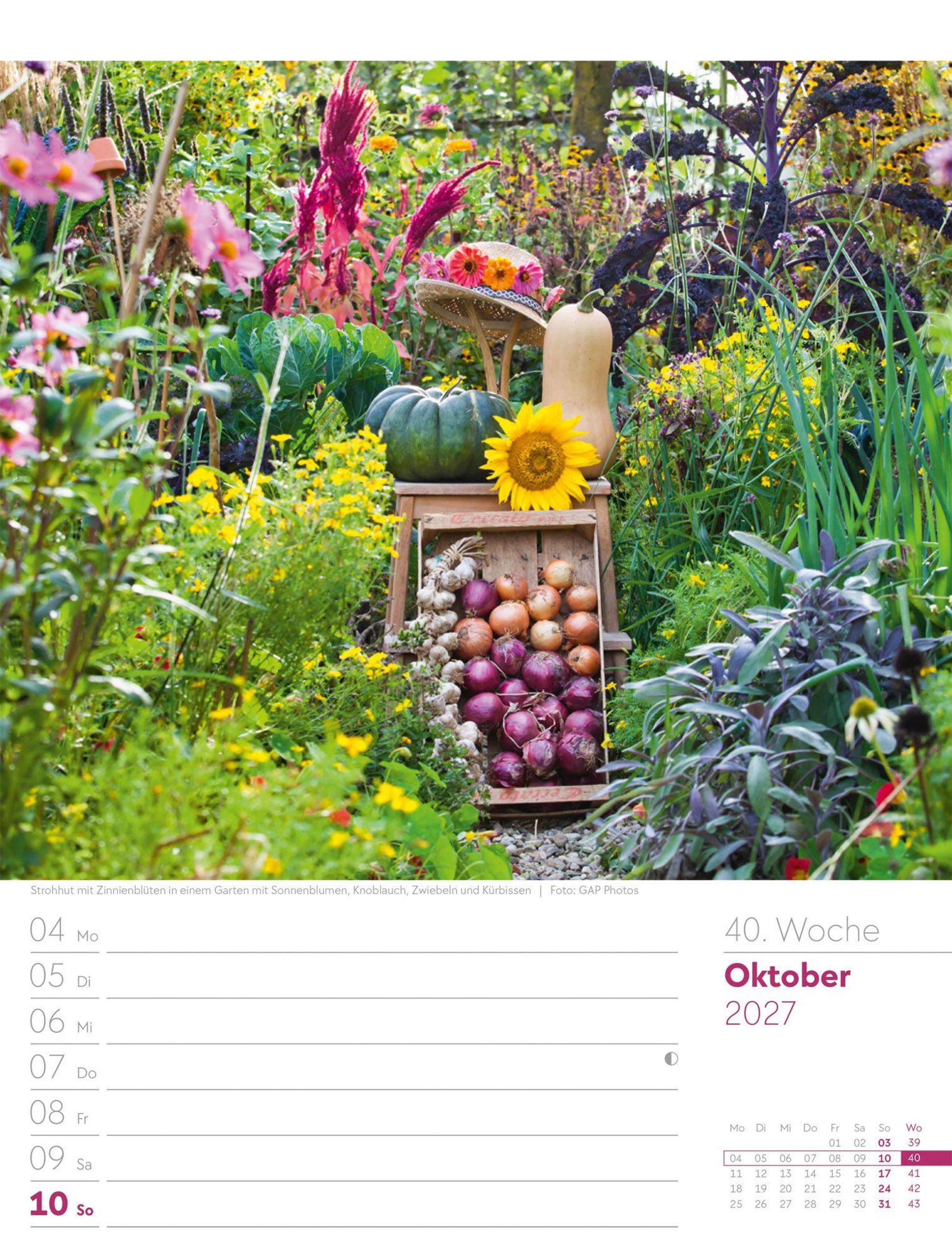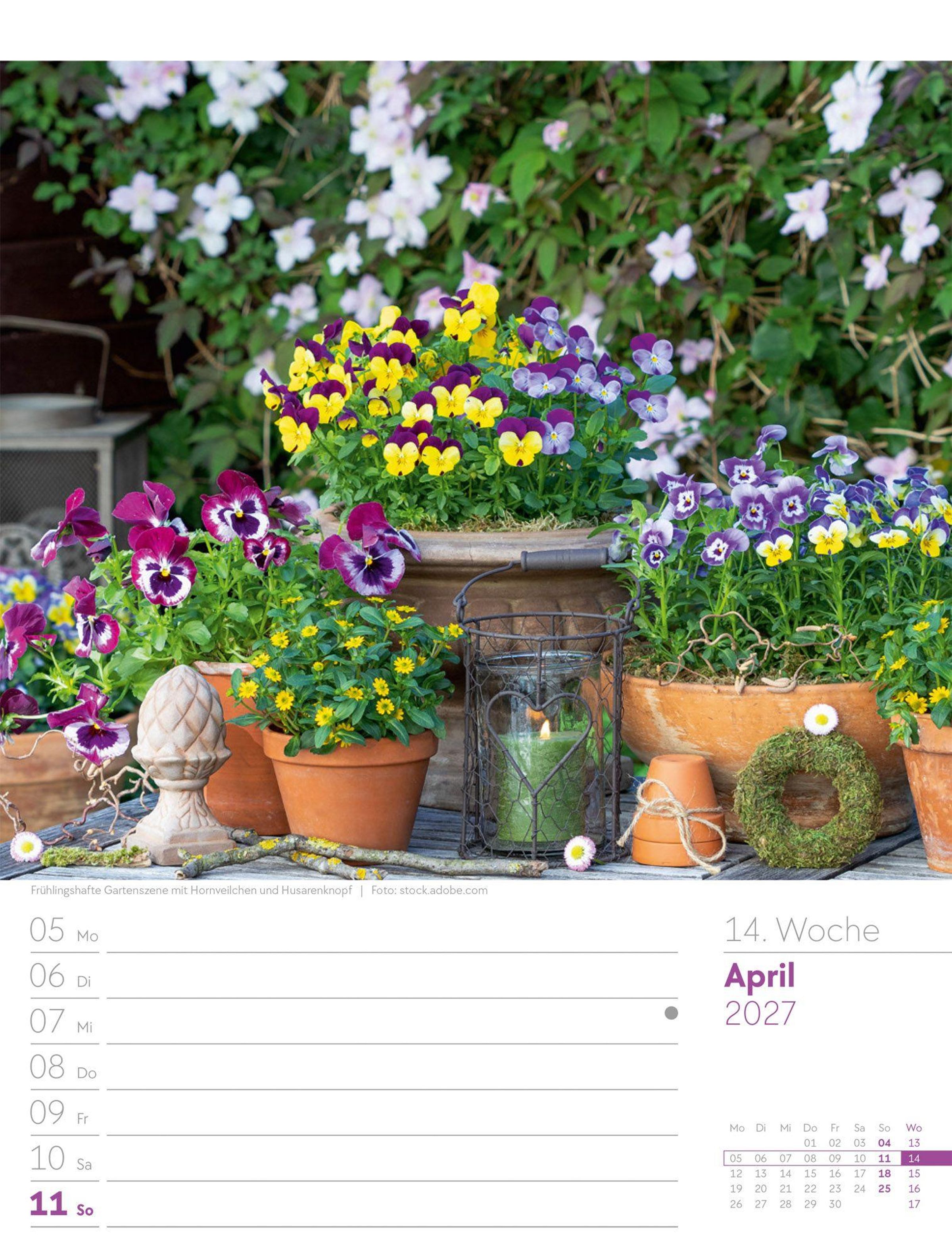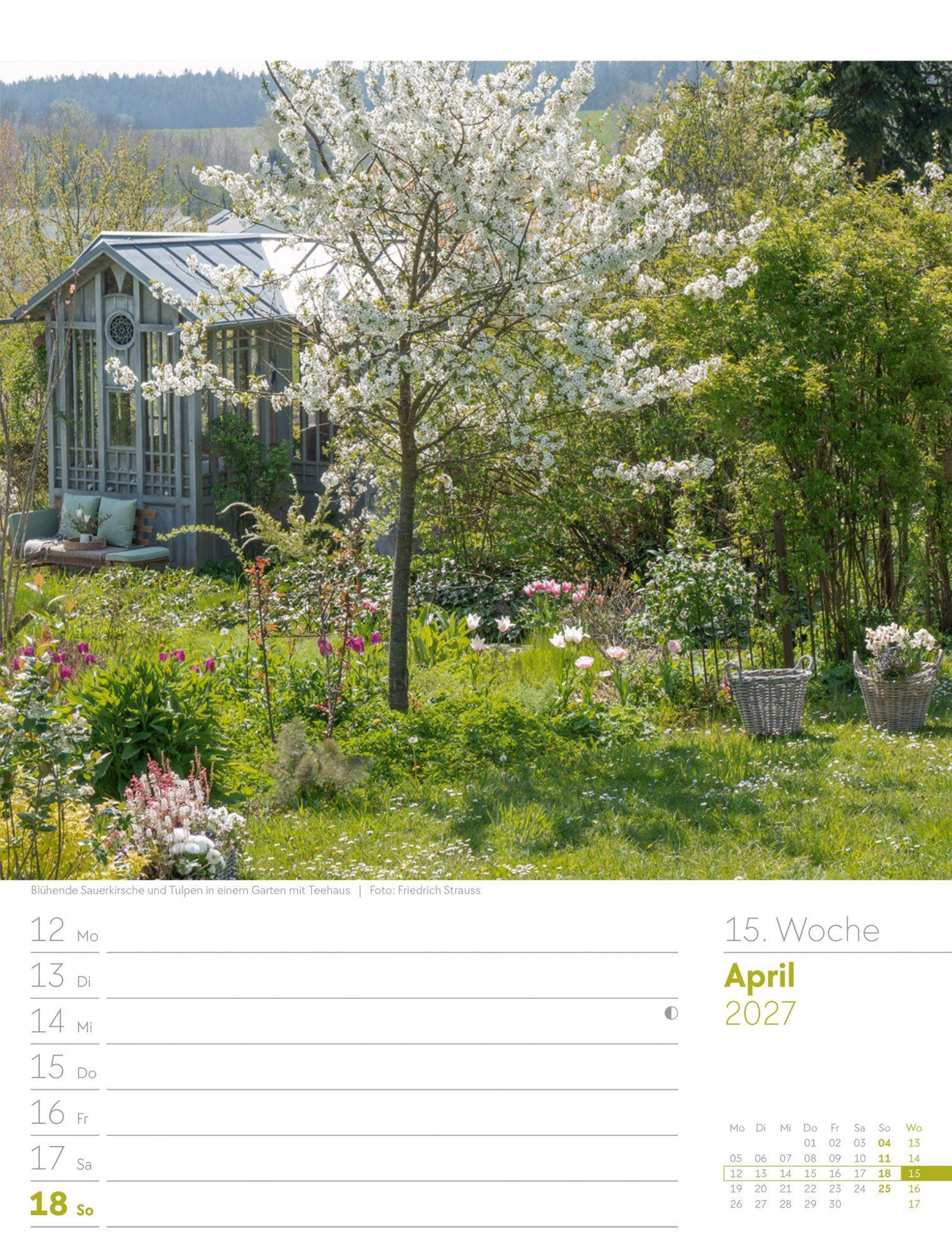 "Einer der schönsten Wege zu uns selbst führt durch einen Garten." Wenn Sie dieser Aussage zustimmen und selbst Ruhe und Ausgeglichenheit beim Blick auf Grünes und Blühendes finden, wird Ihnen dieser Wochenkalender tagtäglich Freude bereiten. Blumen- und Gartenspezialist: innen wie Friedrich Strauß, Marianne Majerus oder Flora Press halten die herrlichsten Gartenparadiese im Bild fest und haben dabei auch die Details im Blick. Übersichtliches Kalendarium mit Platz für Ihre Einträge und dazu jede Woche neuer Rätselspaß: Kreuzworträtsel und Sudokus auf allen Rückseiten.