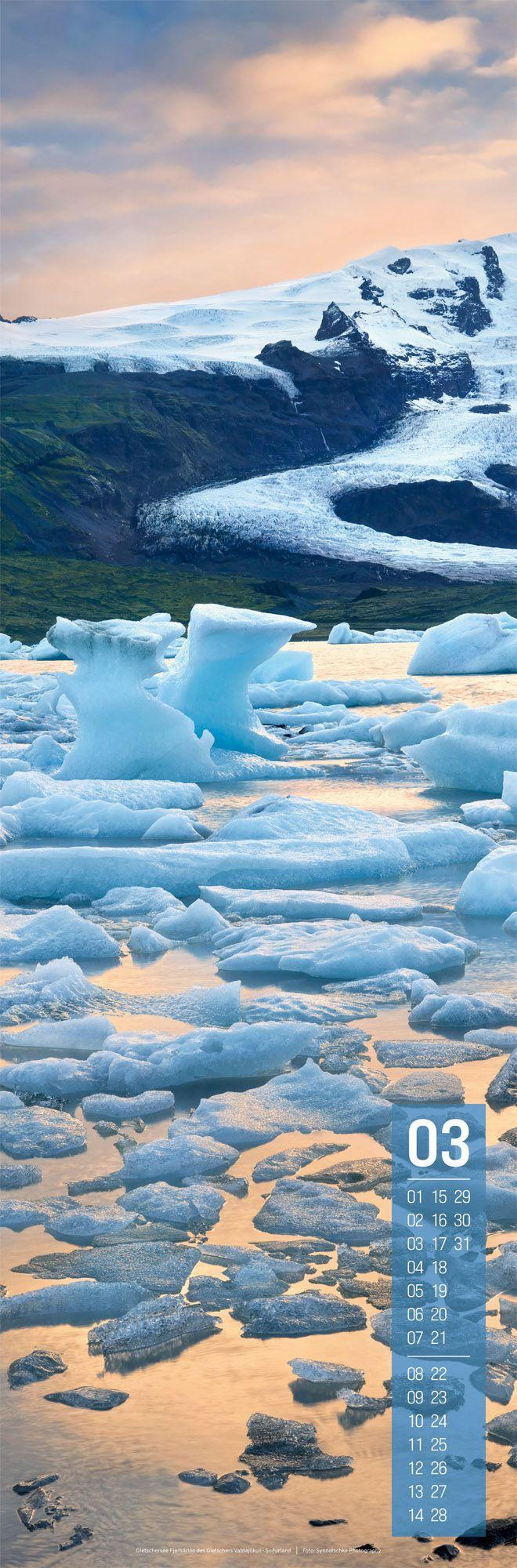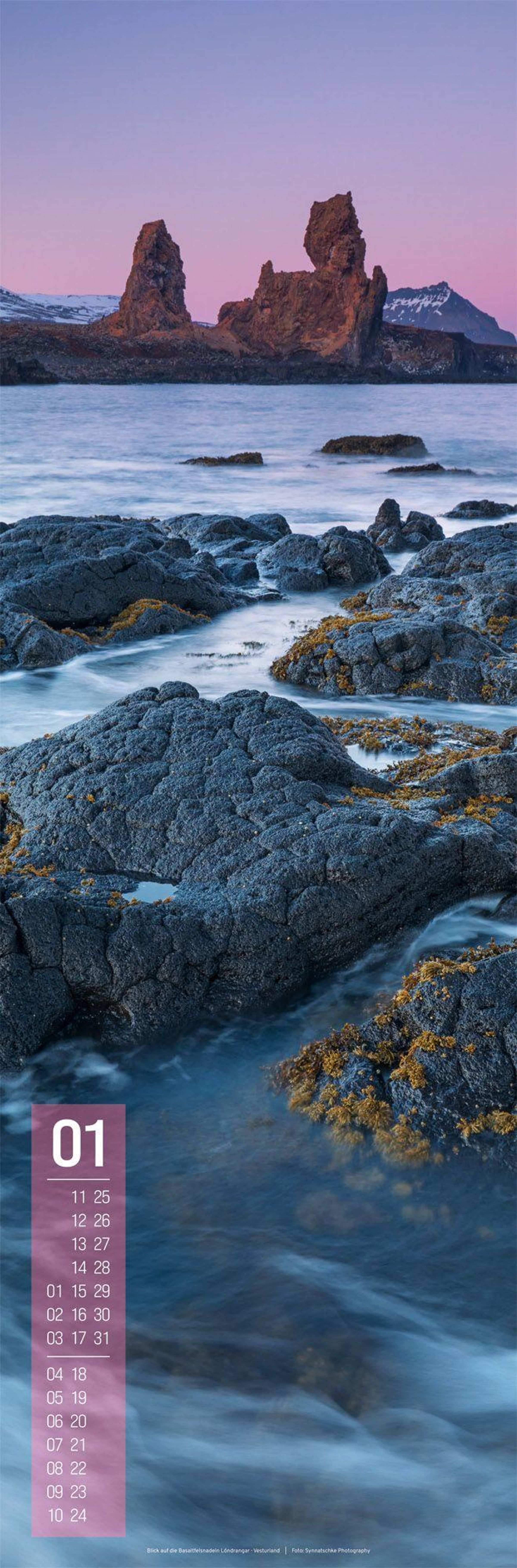 Island-Kalender im schlanken Hochformat: 33x100 cm