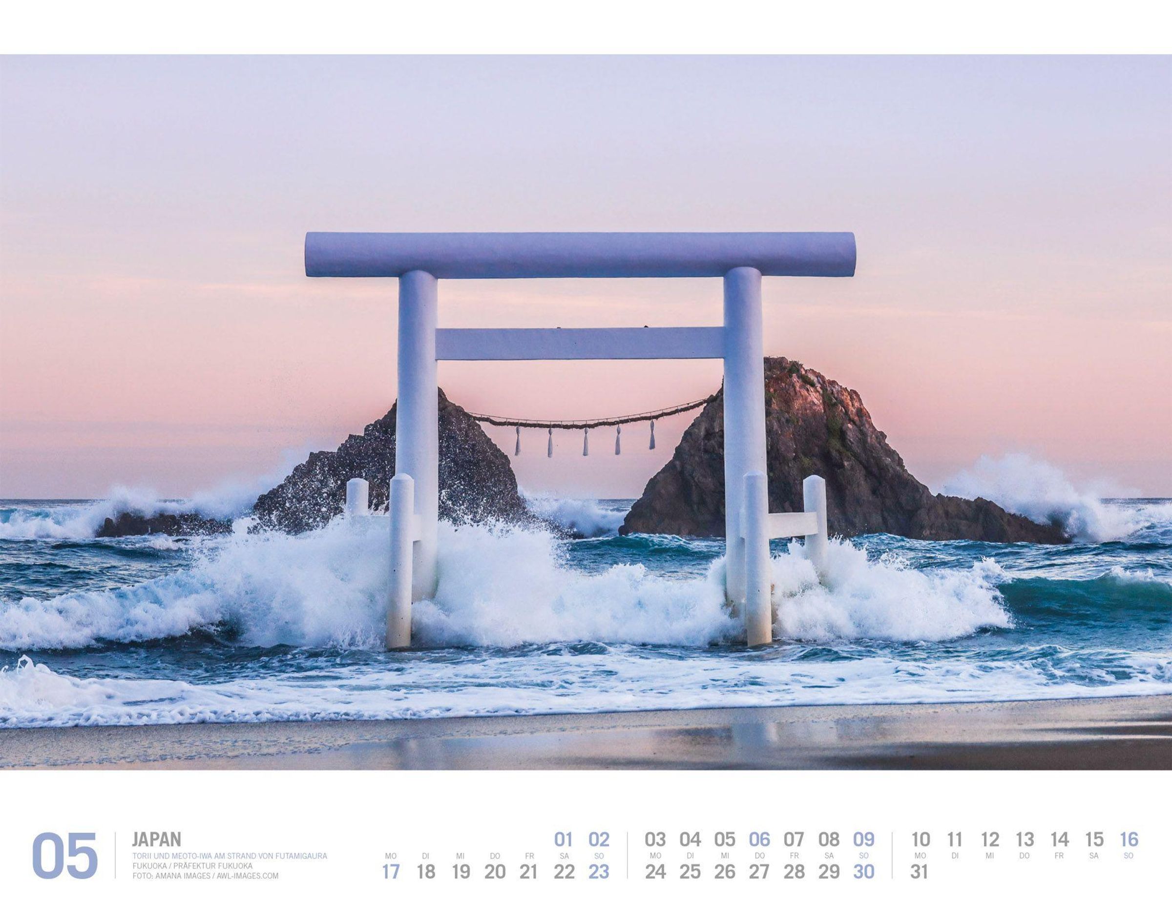 Zwischen Zen und dem Zauber der aufgehenden Sonne: Japan fasziniert mit einer spirituellen Kultur, alten Traditionen, stimmungsvollen Landschaften und einer außergewöhnlichen Architektur. Heilige Orte, Tempel und Schreine zeugen von der Wichtigkeit von Shintoismus und Buddhismus im Alltag und transportieren die Ruhe und besondere Energie der fernöstlichen Lebensart. Ein Kalender, der nicht nur an fremde Orte, sondern auch zu innerer Einkehr führt.