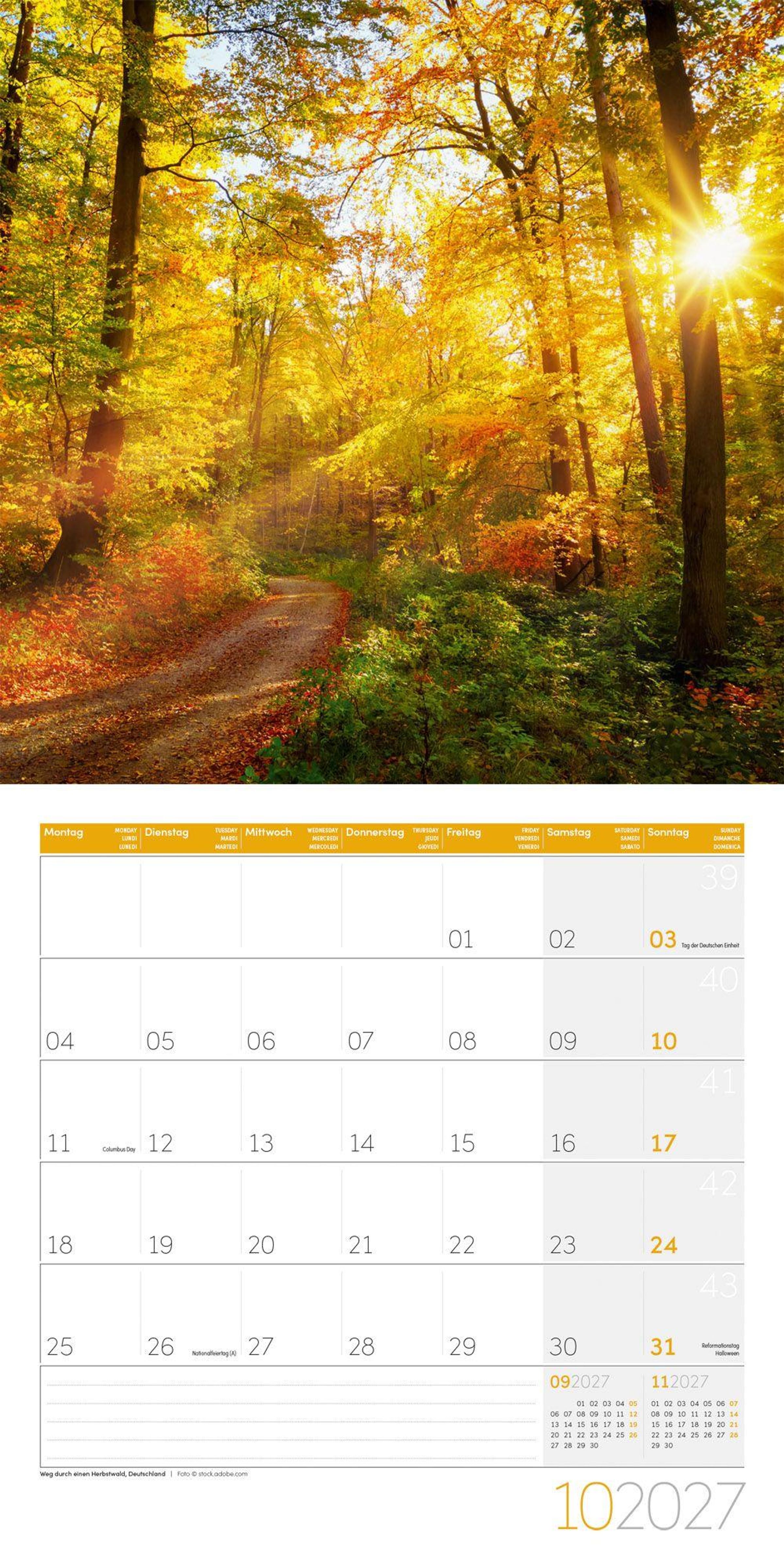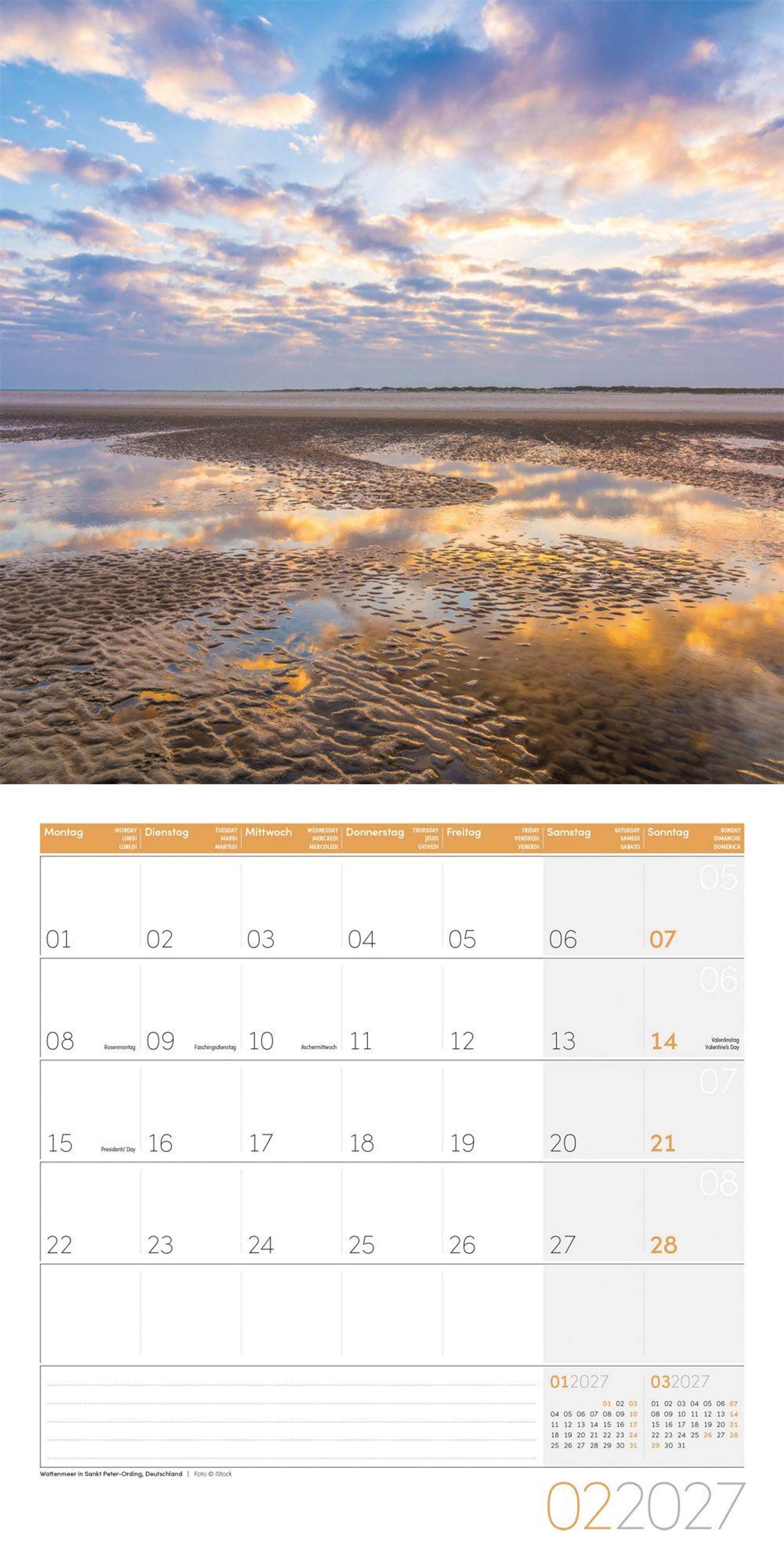 - Geschmackvoller Landschaftskalender im schlanken Hochformat (aufgeklappt 30x60 cm) | Notiz