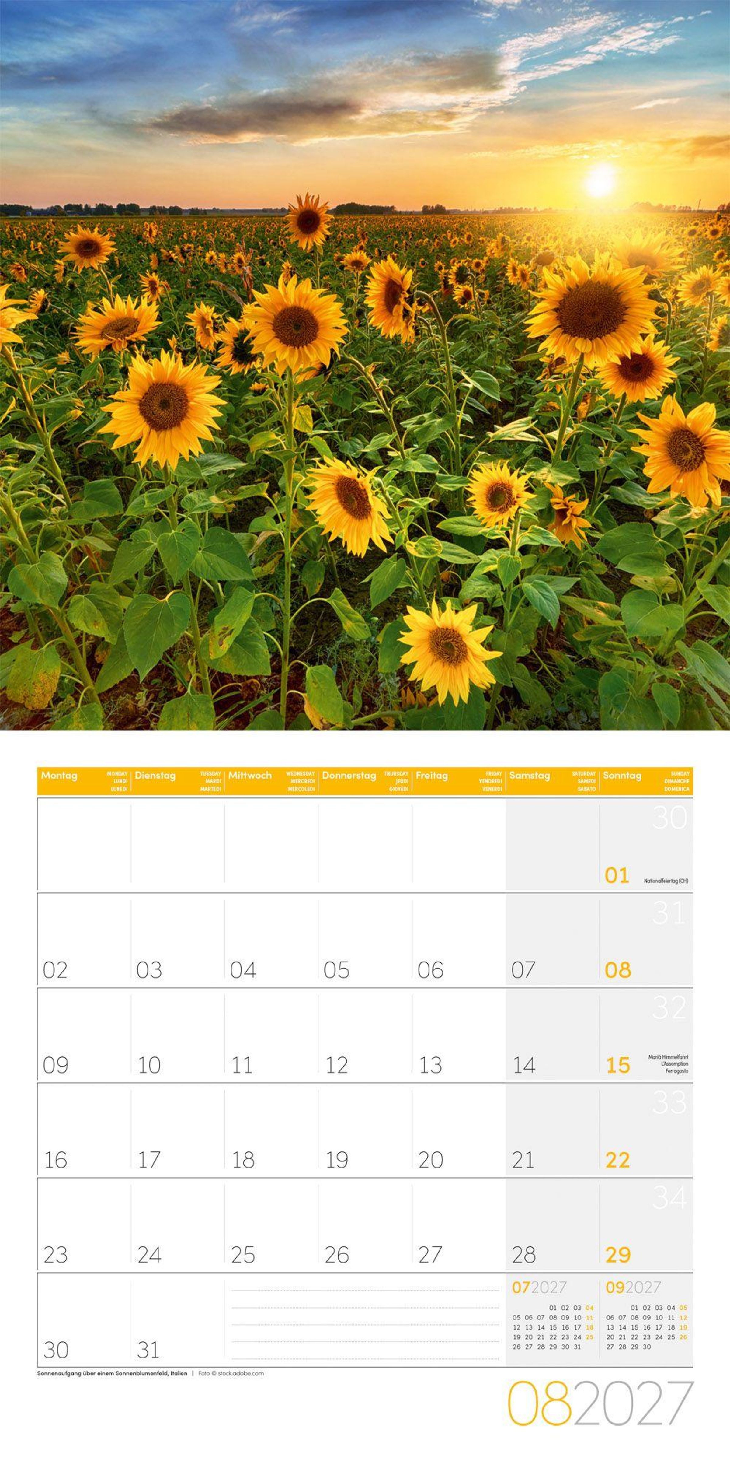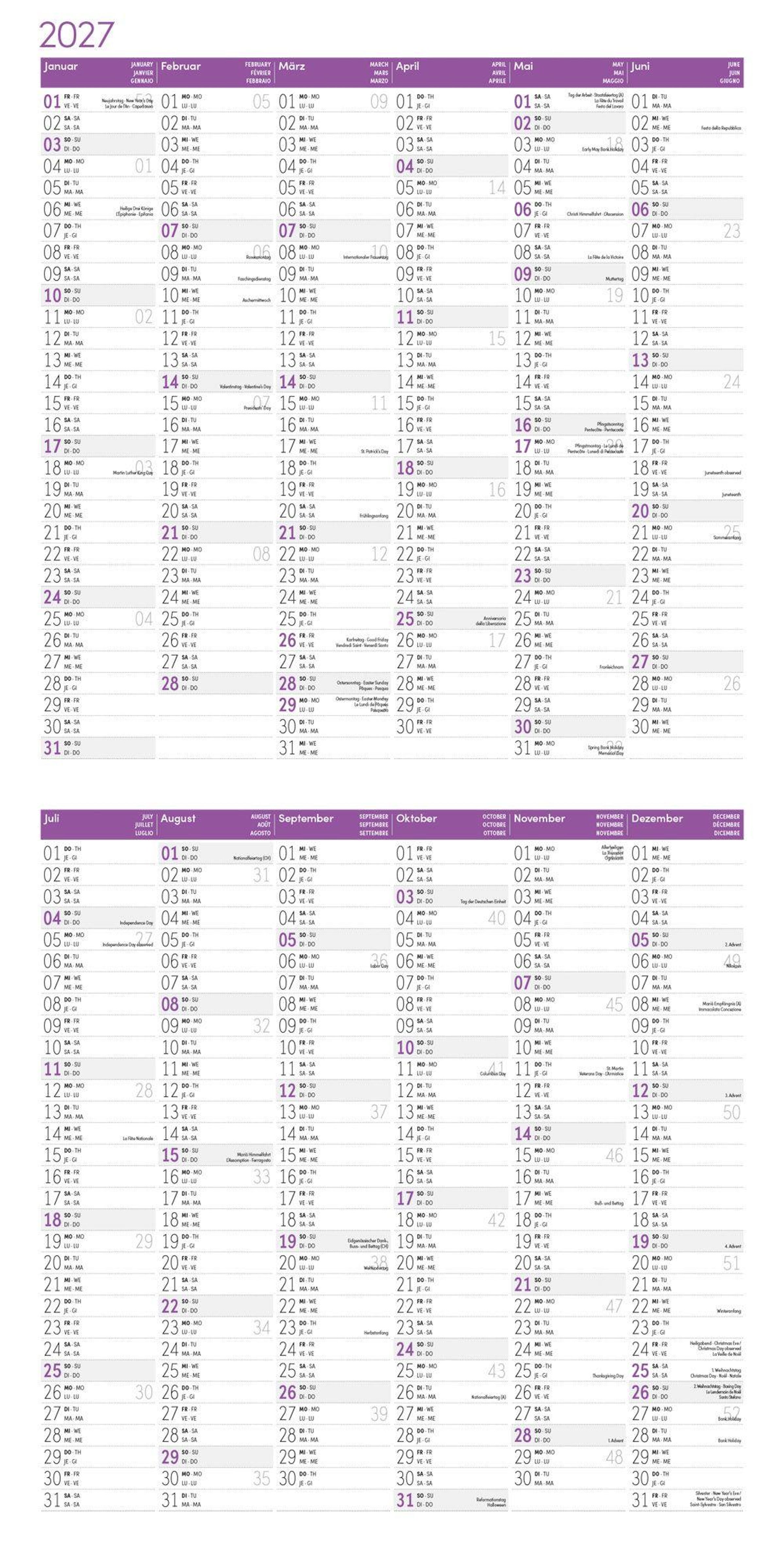 4-sprachiges Kalendarium: Deutsch, Englisch, Französisch, Italienisch