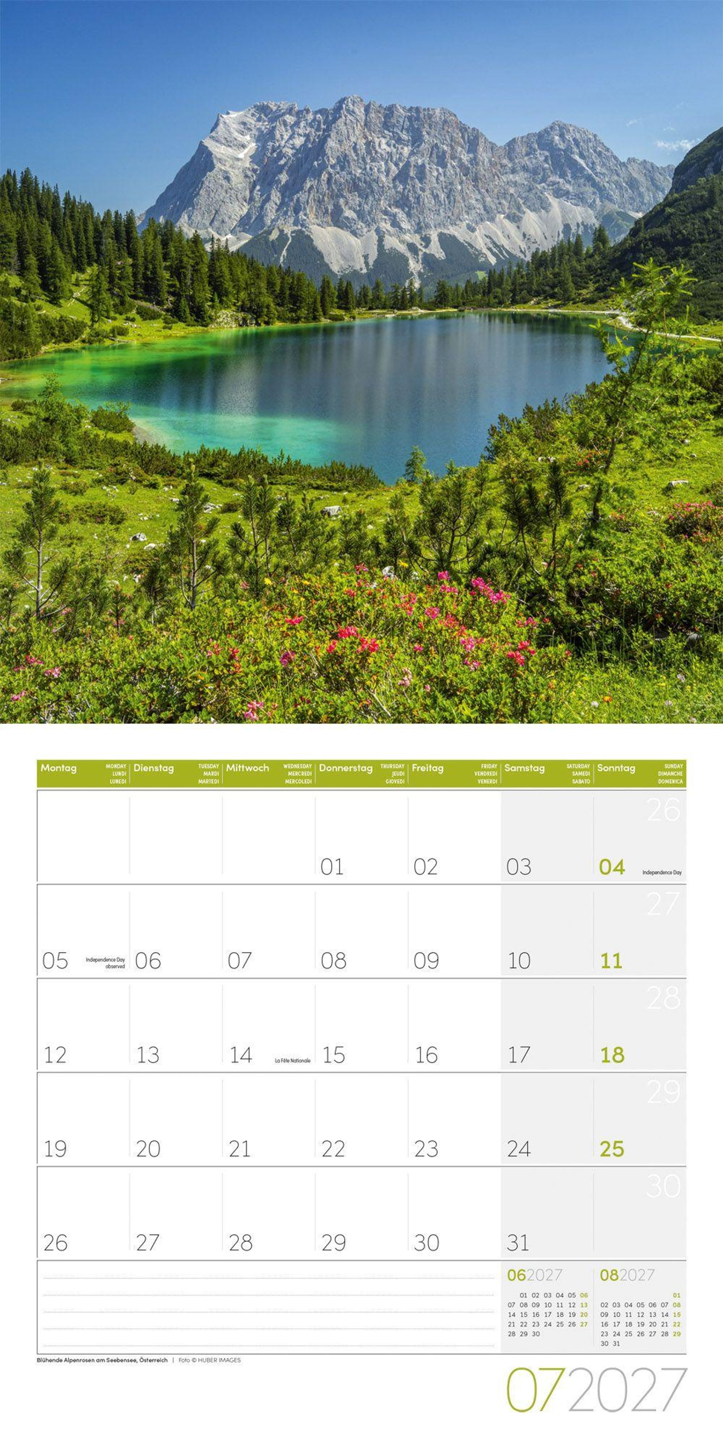 Landschaftskalender im schlanken Hochformat: 30x30 cm, (aufgeklappt 30x60 cm)