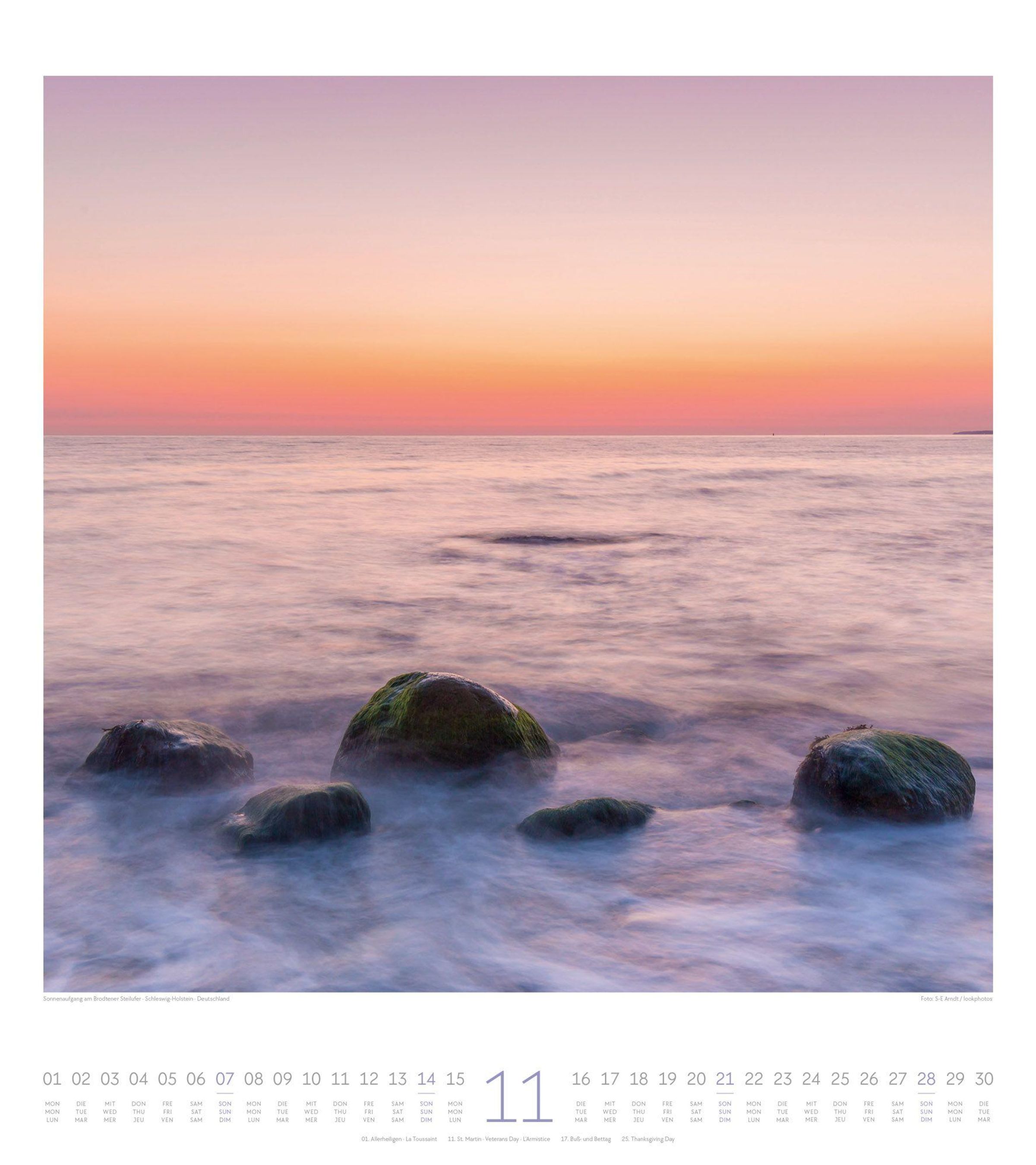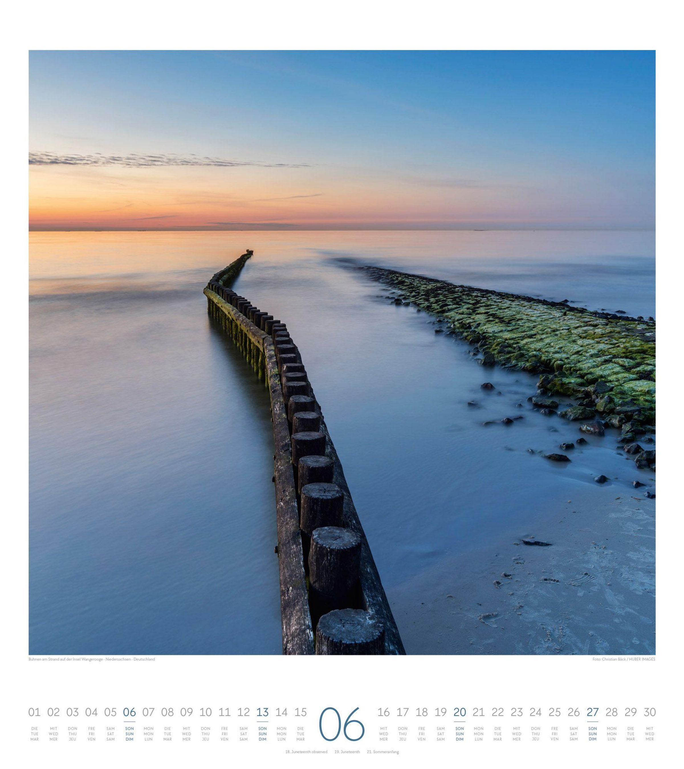 Tauchen Sie ein in die beruhigende Schönheit der Küstenlandschaften mit unserem Kalender "Meeresstille". Genießen Sie den zarten Minimalismus der Motive und die malerische Vielfalt der maritimen Natur aus Sicht deutscher Inseln und Küsten. Halten Sie inne und lassen Sie sich von der friedlichen Atmosphäre des Wassers inspirieren. Entdecken Sie Nordsee und Ostsee in ungewohnt reduzierten Kompositionen und spüren Sie diese ganz besondere Ruhe, die sich während eines ungestörten Tages am Meer einstellt.