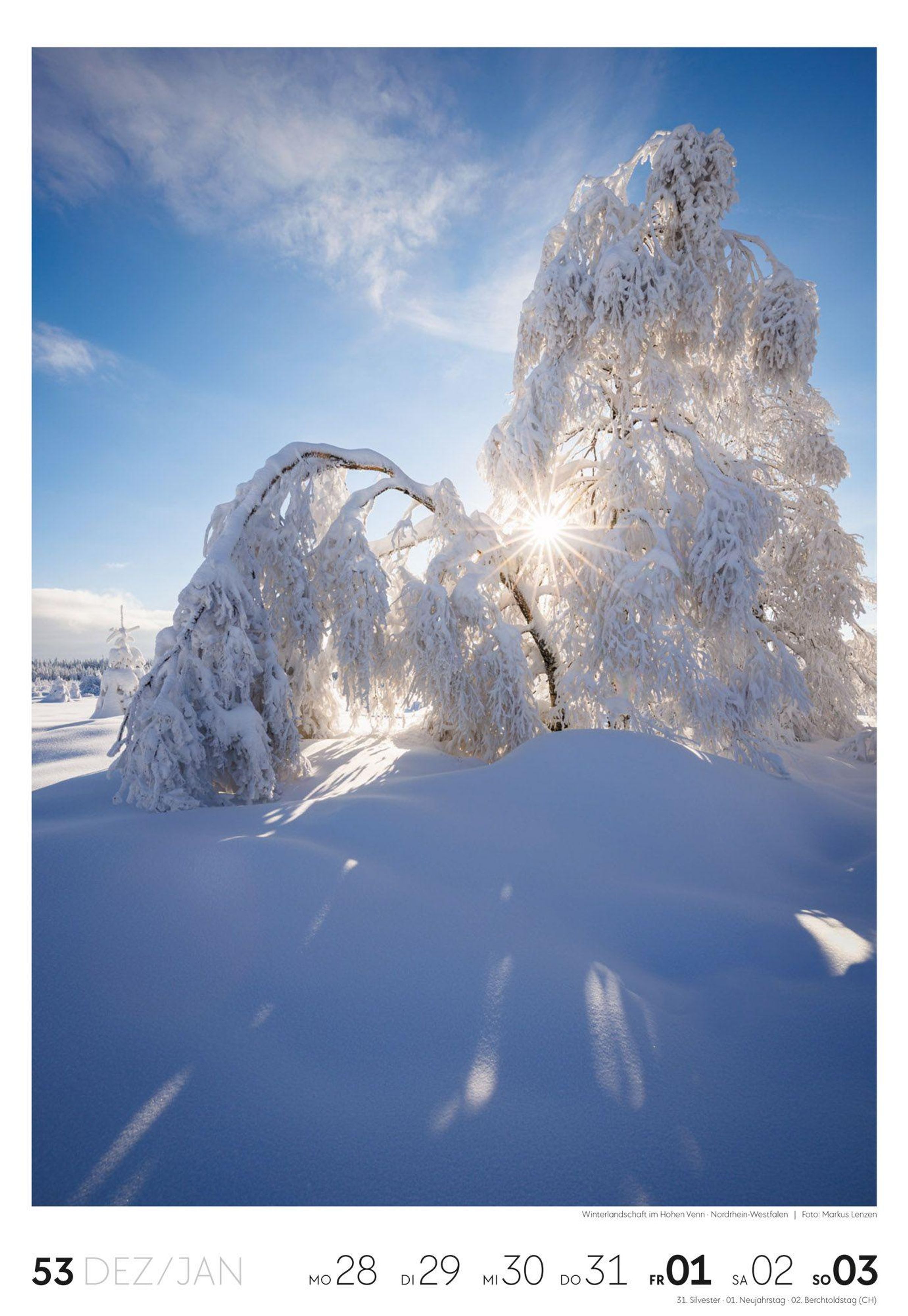 Vom kalten Weiß des Winters über das satte Grün des Frühlings bis zu den warmen Farbtönen des Herbstes und zurück: Entdecken Sie die Vielfalt der Natur in einem einzigartigen Wochenkalender, der jede Woche eine neue Facette lebendig werden lässt. Vom besonderen Detail bis zur Weite der Landschaft, mit modernen Bildkompositionen und abwechslungsreichen Bilderwelten entsteht eine umfangreiche Hommage an die heimische Flora und Fauna. Der perfekte Wochenkalender für Naturverbundene und alle "Draußen-Menschen".