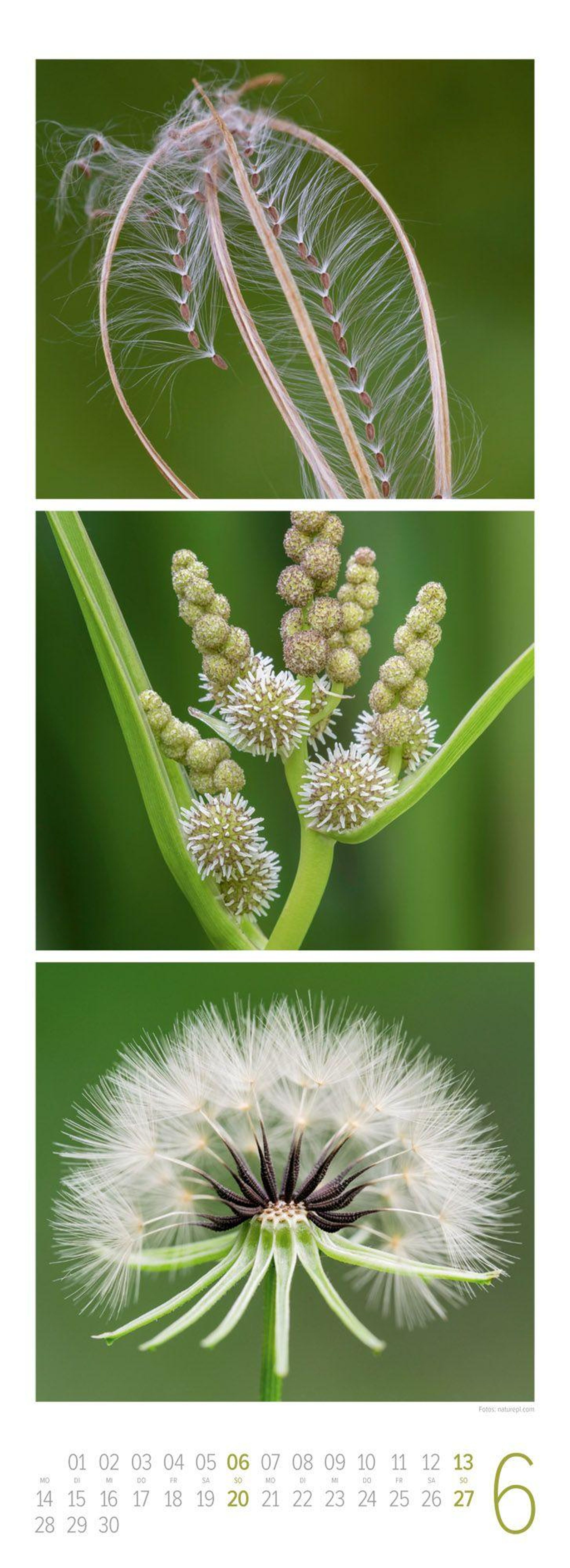Es sind die unzähligen kleinen Details und winzigen Bestandteile der Natur, die uns in ihrer Besonderheit beeindrucken und ein wunderschönes Gesamtbild ergeben. Jedes Blatt besteht aus einer Collage von drei Motiven, die das wiederkehrende Wachstum, die Jahreszeiten, aber auch die Schönheit und Raffinesse von Feld, Wald, Wasser und Wiese würdigen. Die sorgfältig abgestimmten Farbwelten präsentieren die Natur von ihrer dekorativsten Seite. Ein beruhigender Triplet-Naturkalender voller Ausdruckskraft und Harmonie.