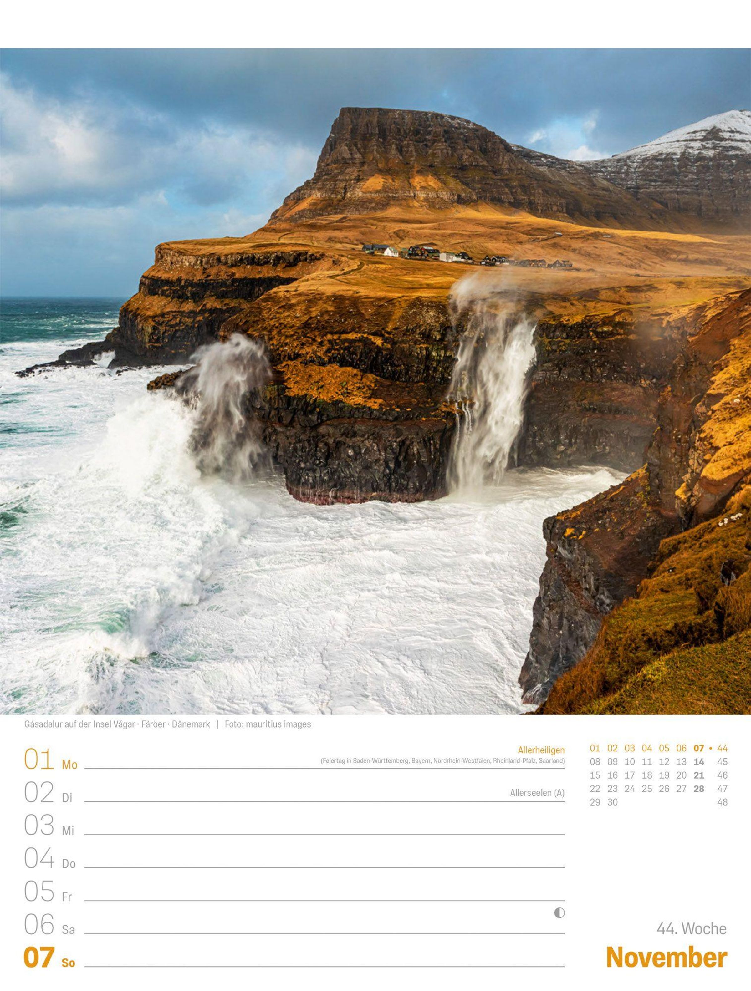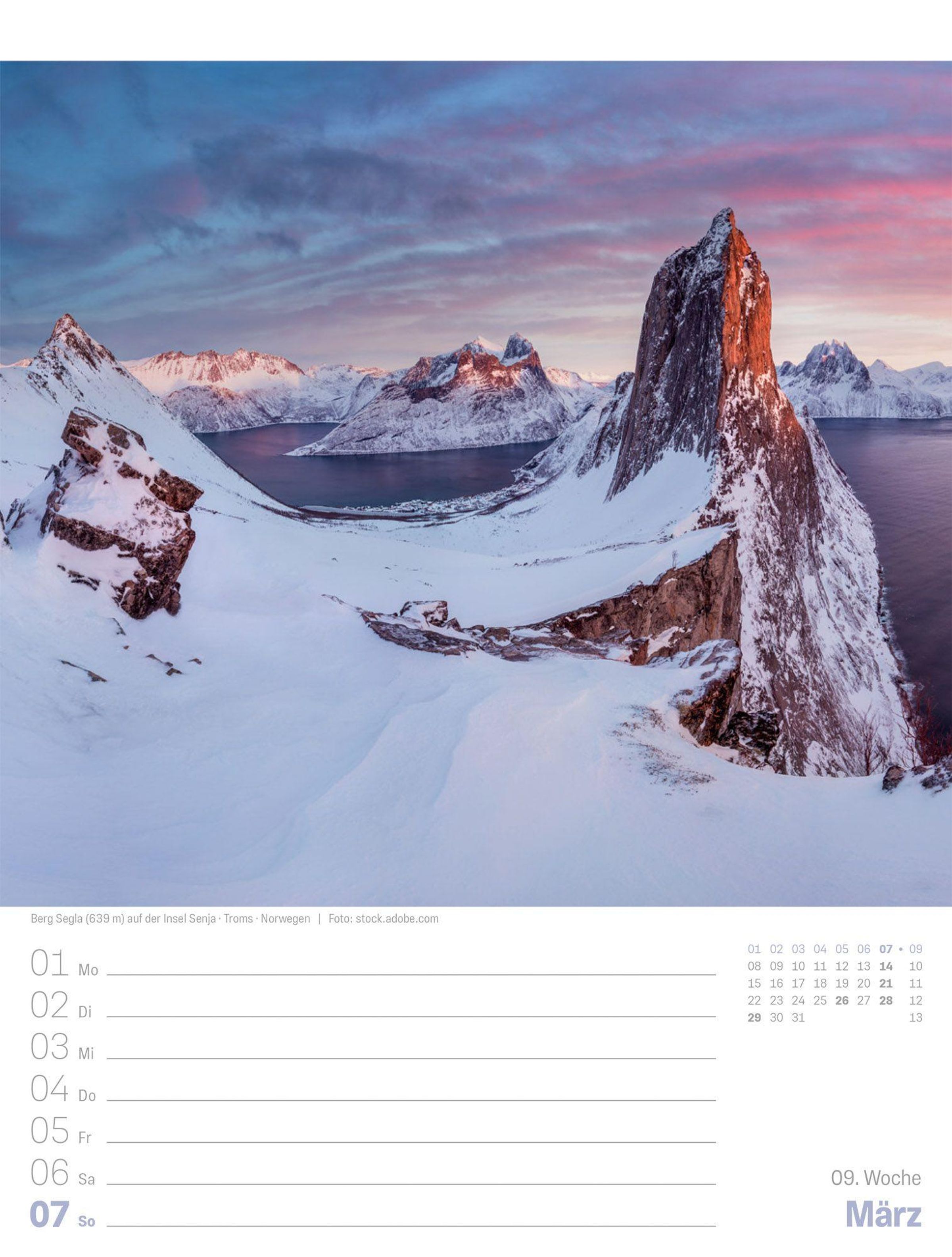 - Bildgewaltiger Landschafts-Wochenkalender im Hochformat (25x33 cm) | Mit Rätseln