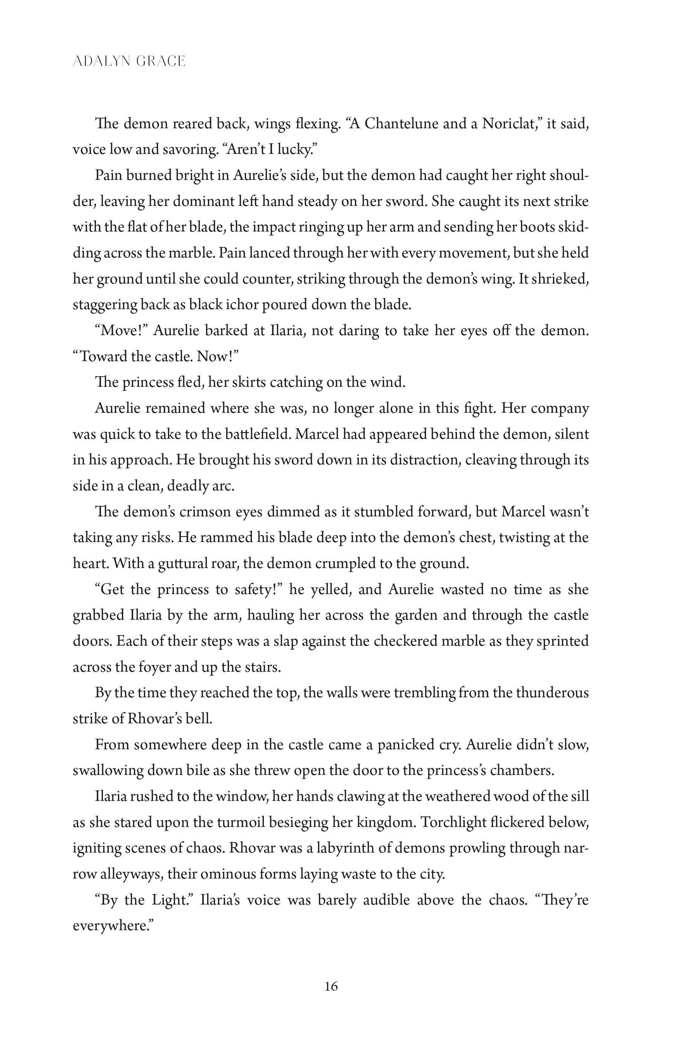 Aurelie Chantelune was born to serve. Raised as a knight in a kingdom ravaged by demons, she's spent her life honing her blade, driven by the memory of the monsters who tore her family apart and by the knowledge that she's one of the few who can stop them.