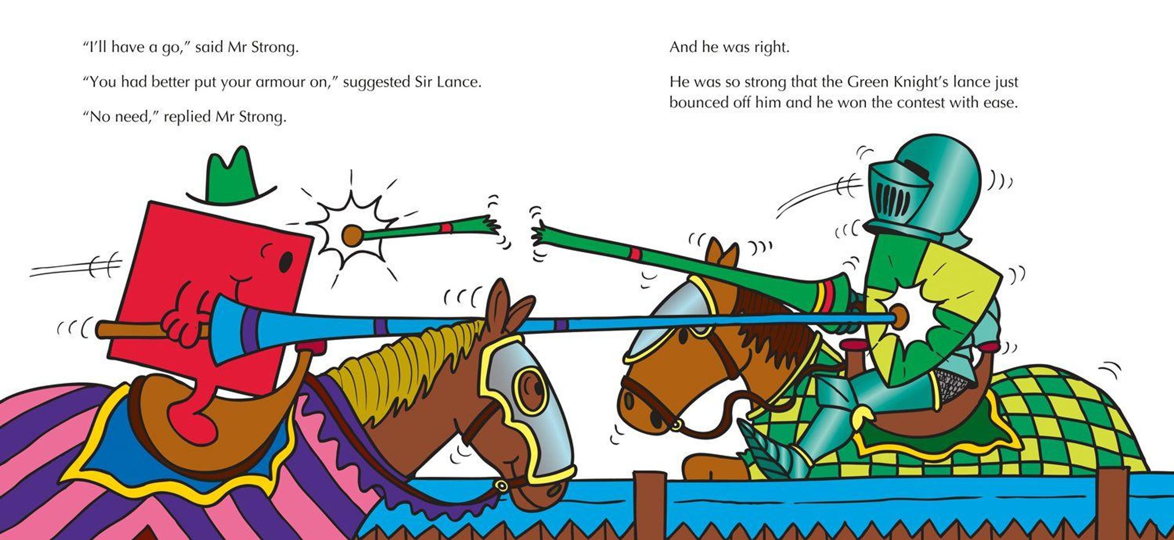 Sir Lance has invited some of the Mr Men and Little Miss to visit him at his castle! Everyone is very excited about the medieval tournament against his knights. But how will they fare with the heavy armour, jousting and archery? And will anyone rise to the challenge when a fire-breathing dragon arrives?!