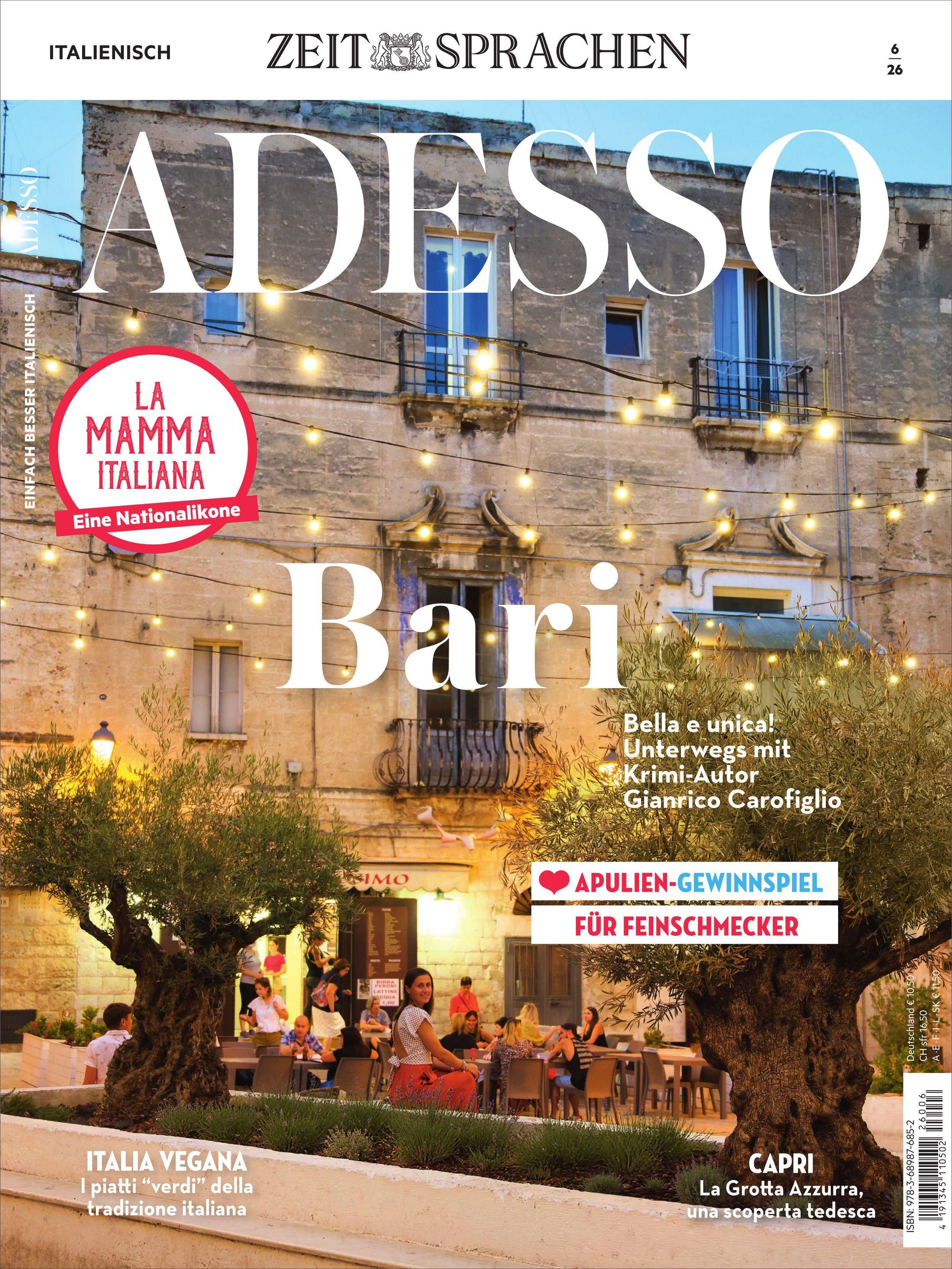 * Titelthema: Bari. Bella e unica! Unterwegs mit Krimi-Autor Gianrico Carofiglio * Le Guide di Adesso: Capri. La grotta azzurra Vom Zauber der weltberühmten Blauen Grotte * L'Italia a Tavola: Vegani? Benvenuti! Tipps für veganen Genuss in Italien * Stile Libero: Viva la mamma! Der Mythos der italienischen mamma: Klischee oder Realität?