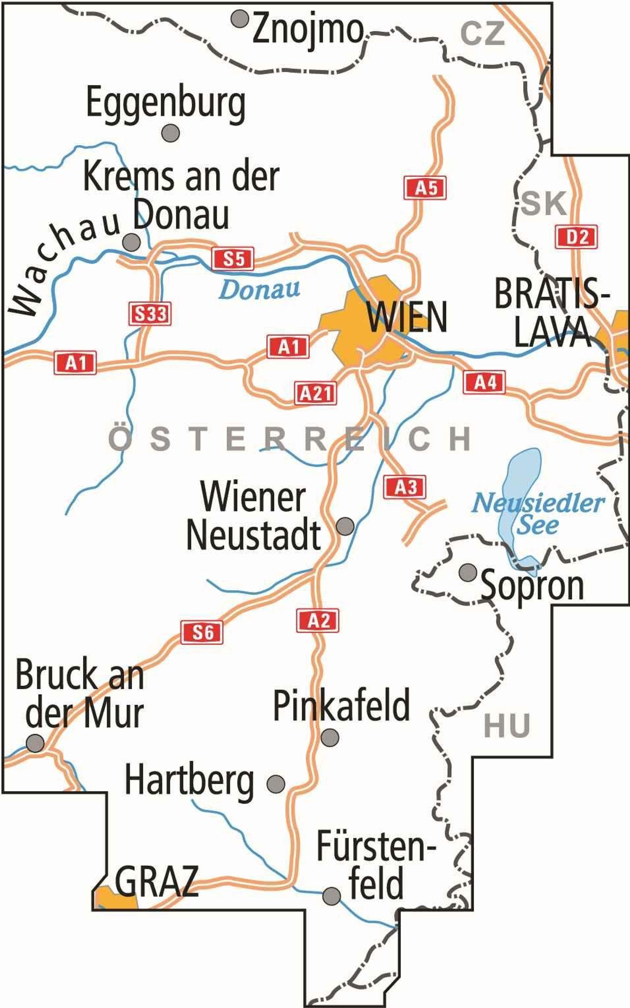 - reiß- und wetterfest, E-Bike geeignet, GPS-Tracks Download, mit Bett+Bike Symbolen, mit Kilometer-Angaben, Mit Donauradweg von der Wachau bis Bratislava