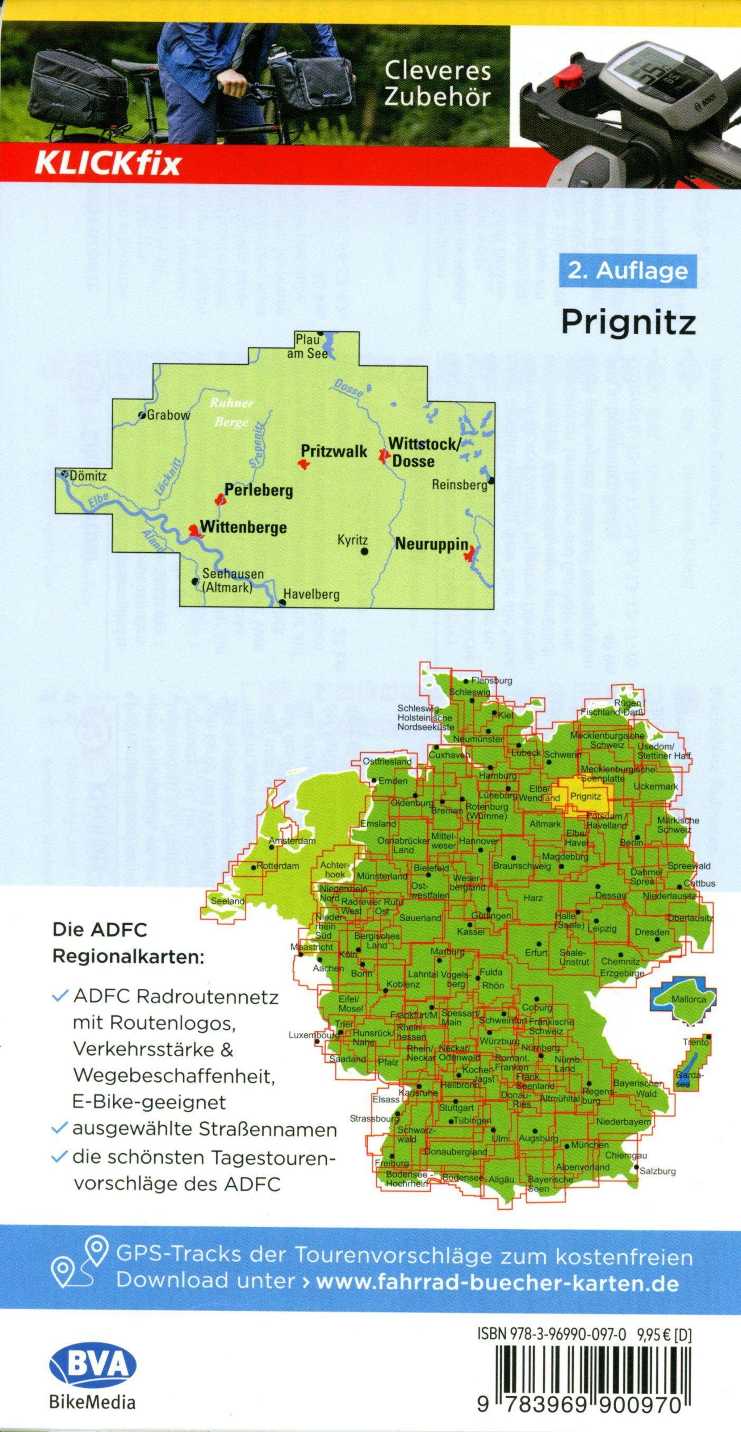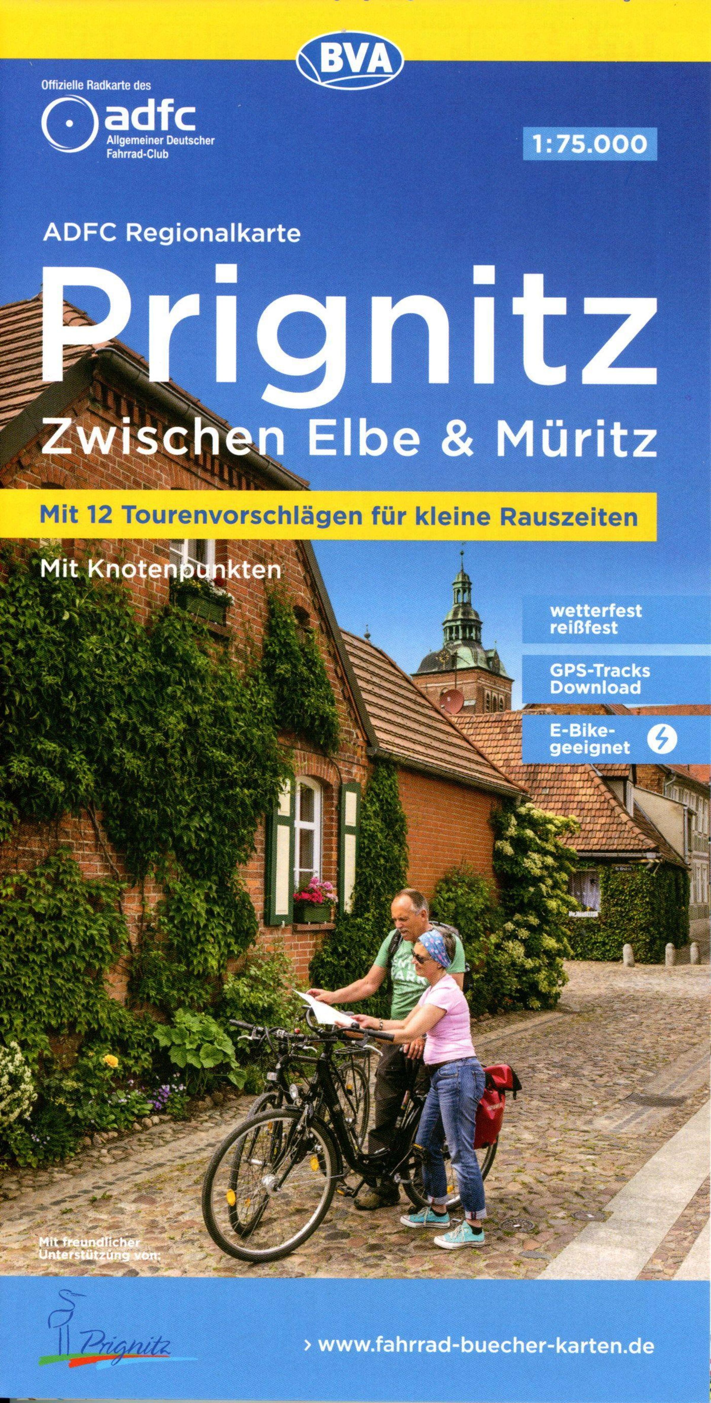 ADFC-Regionalkarte Prignitz, 1:75.000, mit Tagestourenvorschlägen, reiß- und wetterfest, E-Bike-geeignet, mit Knotenpunkten, GPS-Tracks Download,